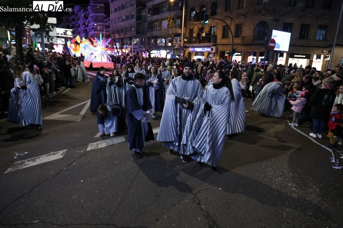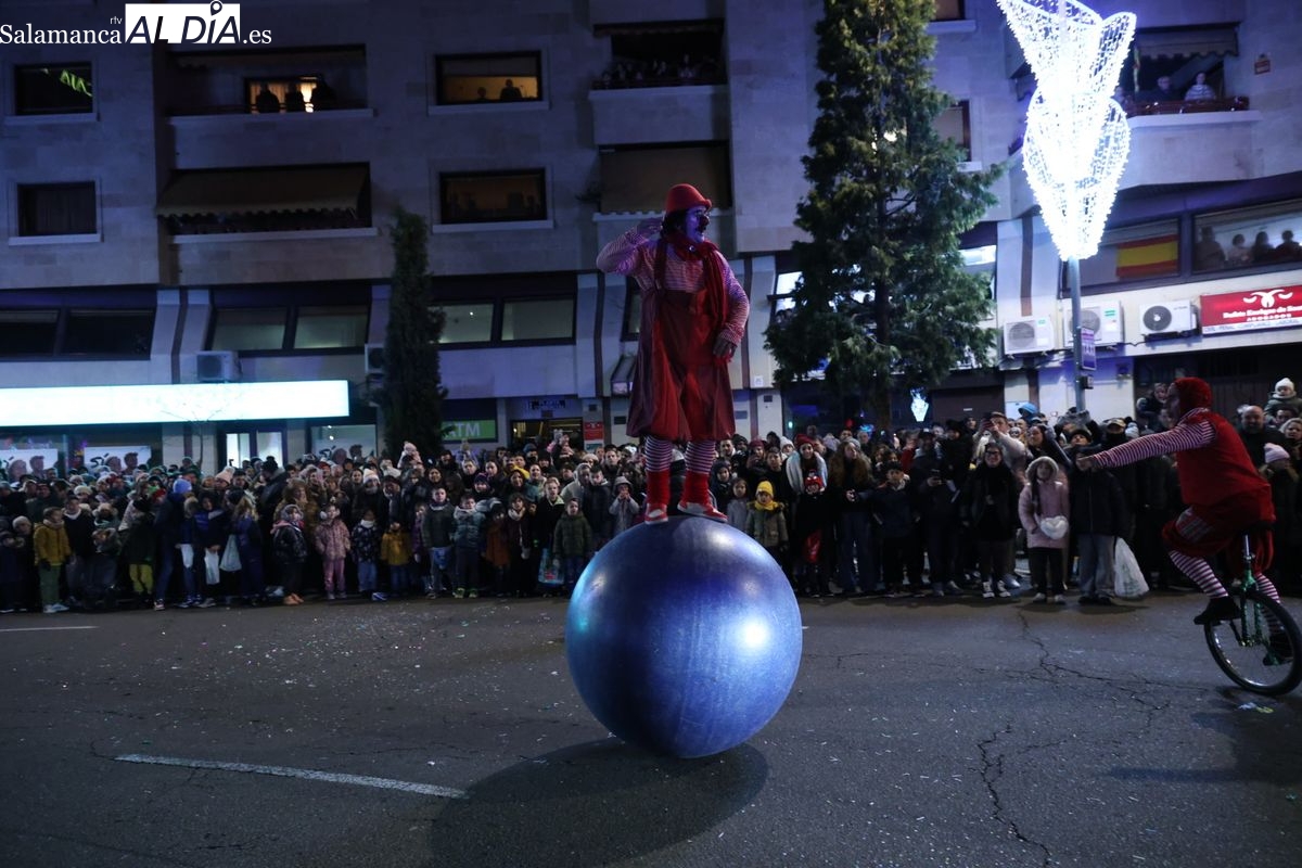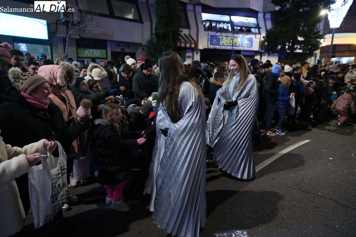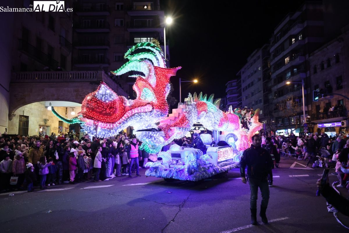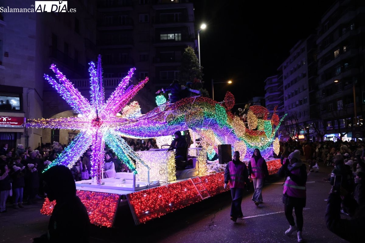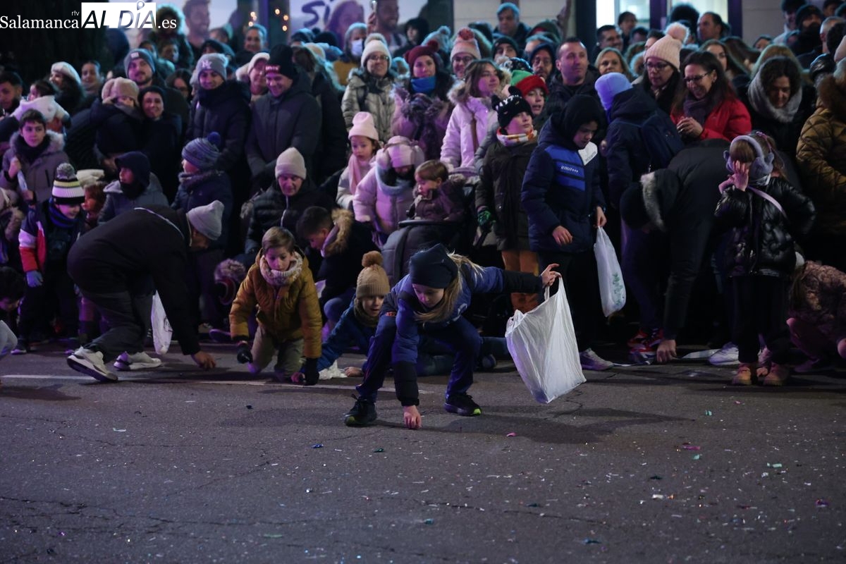 Miles de personas han desafiado a las bajas temperaturas, que han marcado valores bajo cero durante la tarde de este lunes, para recibir a Melchor, Gaspar y Baltasar en Salamanca. La ciudad se ha volcado un año más con la tradicional Cabalgata de Reyes, un evento que ha llenado de color el centro urbano gracias a un despliegue formado por más de 600 personas y 12 carrozas.