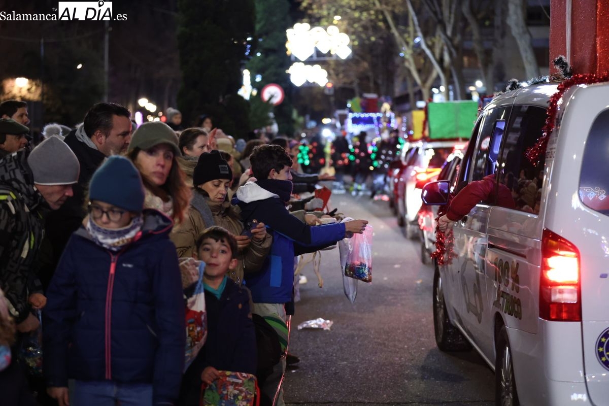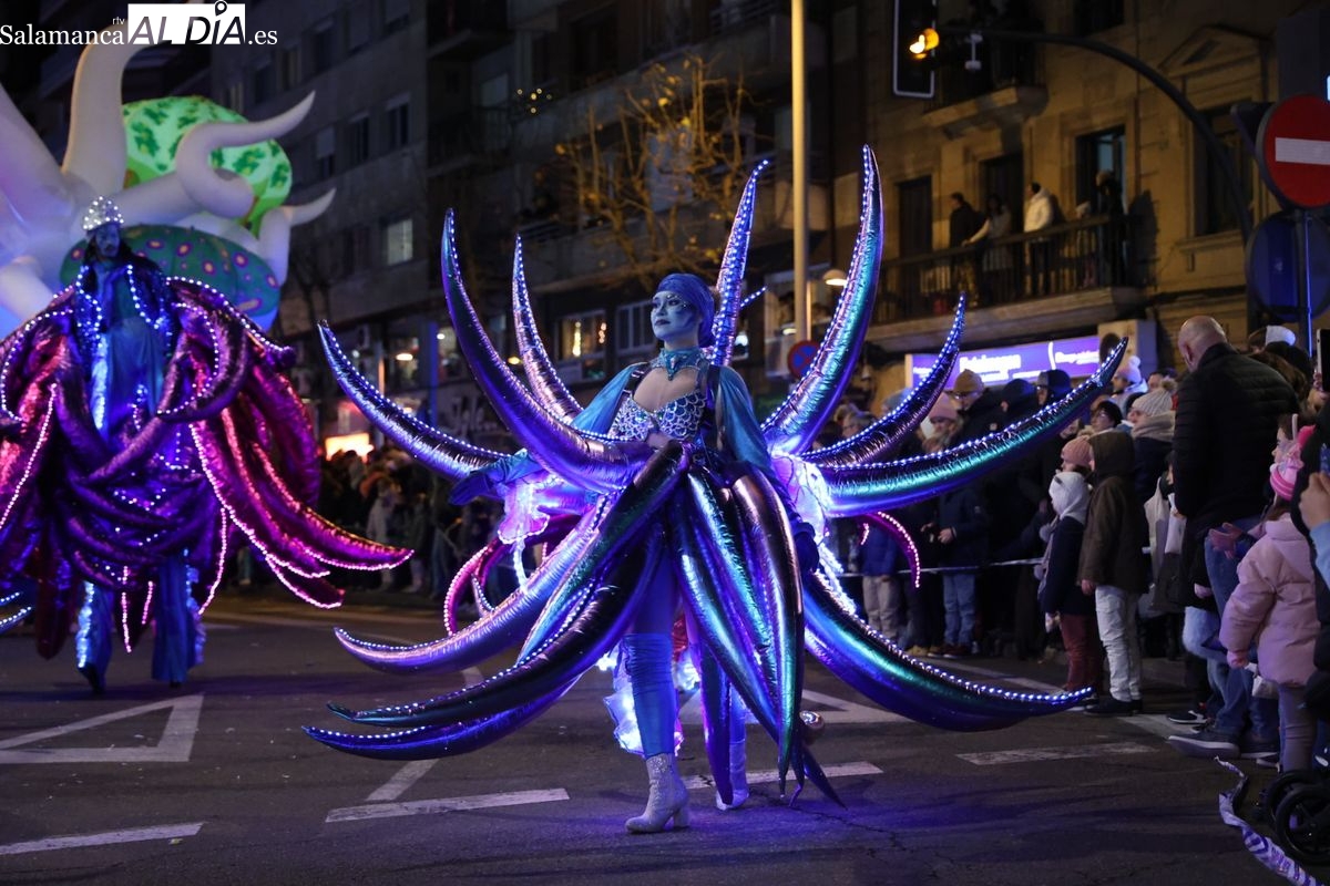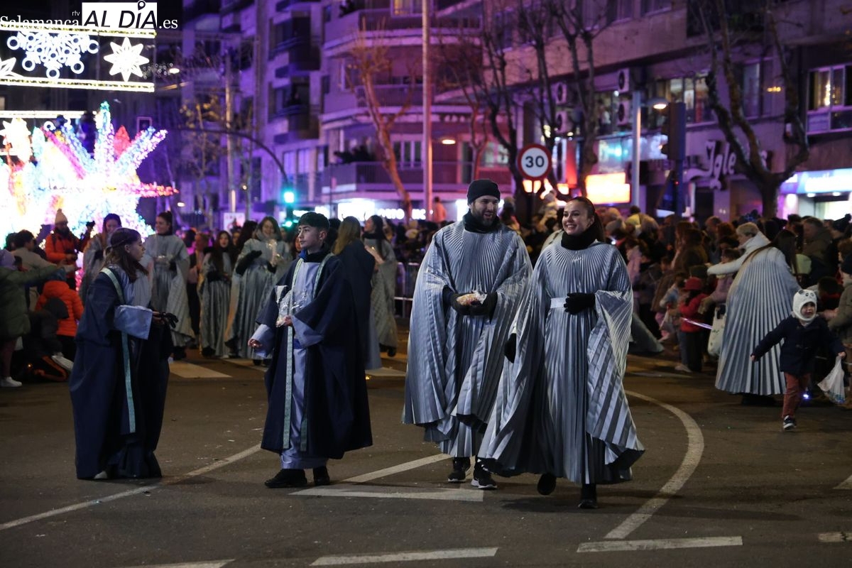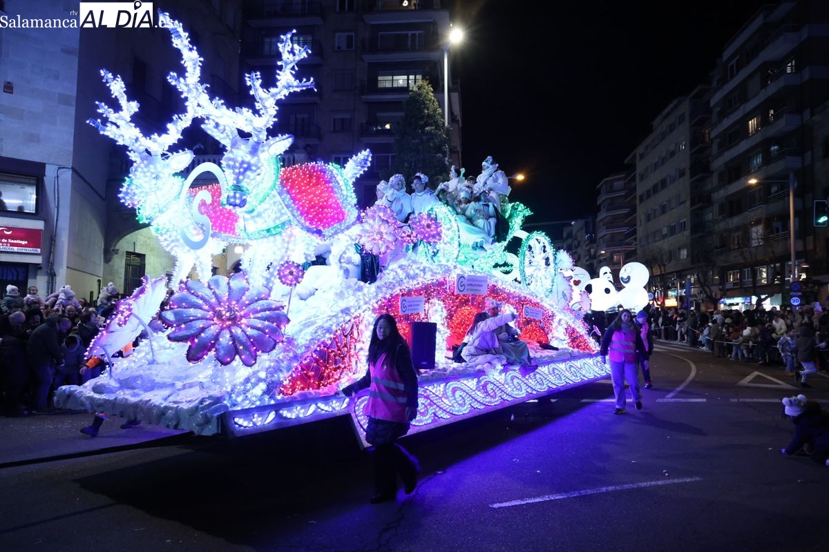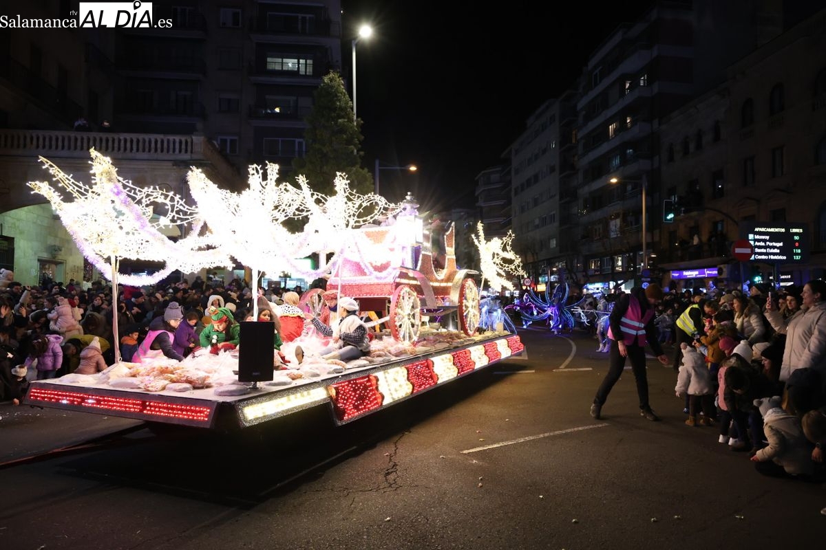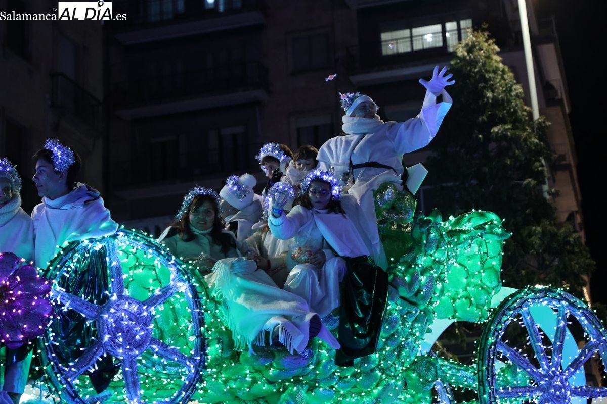 Miles de personas han desafiado a las bajas temperaturas, que han marcado valores bajo cero durante la tarde de este lunes, para recibir a Melchor, Gaspar y Baltasar en Salamanca. La ciudad se ha volcado un año más con la tradicional Cabalgata de Reyes, un evento que ha llenado de color el centro urbano gracias a un despliegue formado por más de 600 personas y 12 carrozas.
