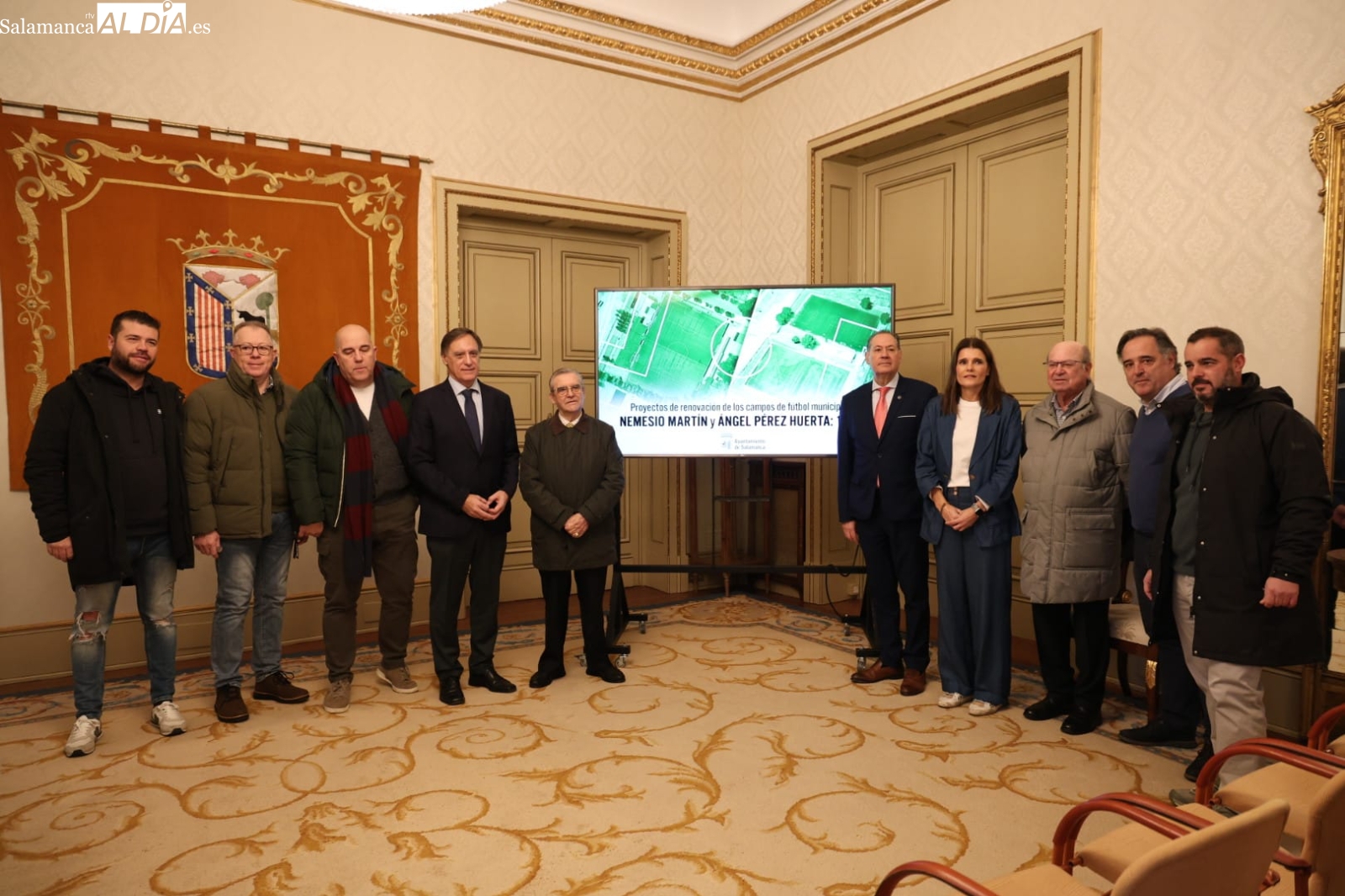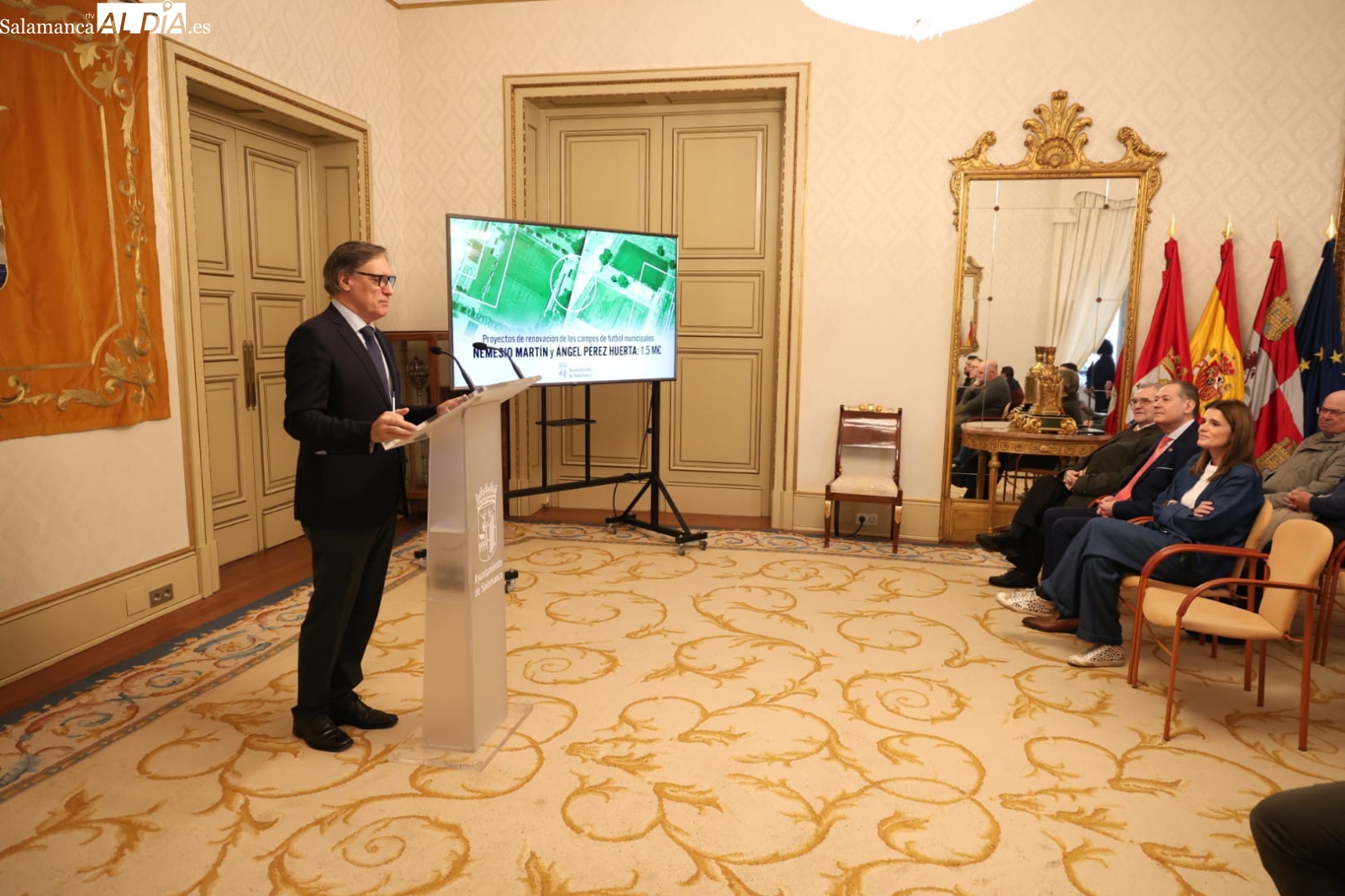 Así lo ha destacado el alcalde de Salamanca, Carlos García Carbayo, durante la presentación de ambos proyectos de mejora que comenzarán a ejecutarse una vez finalice la temporada de competición como ha sido consensuado con las entidades deportivas habituales en ambos campos de fútbol. Al acto también han asistido el presidente de la Delegación Salmantina de Fútbol, Miguel Hernández; el presidente del Club Deportivo Hergar, Fernando Díaz; el director general de Unionistas de Salamanca Club de Fútbol, David Alonso; el presidente del Club Deportivo Helmántico, Marcial García; el presidente del Atlético Femenino Ciudad de Salamanca, Jesús Díez; y Ángel Hernández, representante de la directiva del Club Deportivo Cristo Rey.