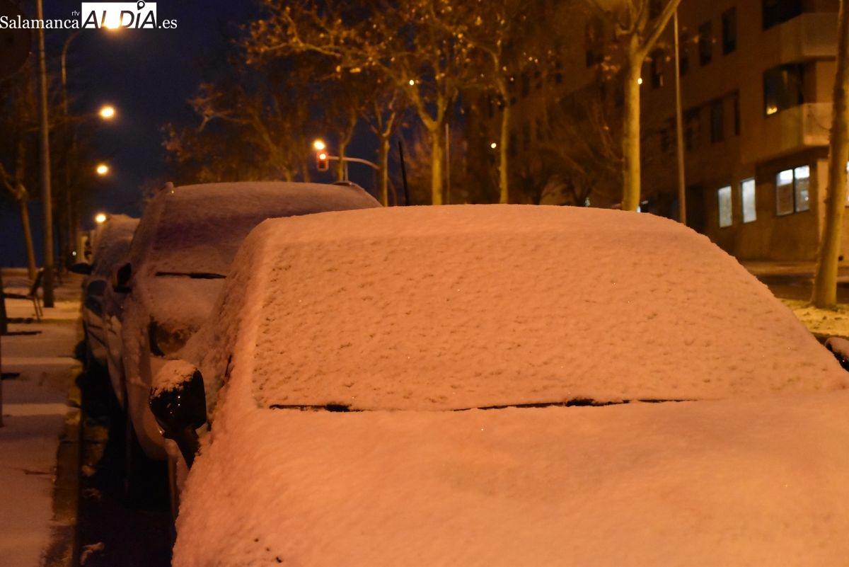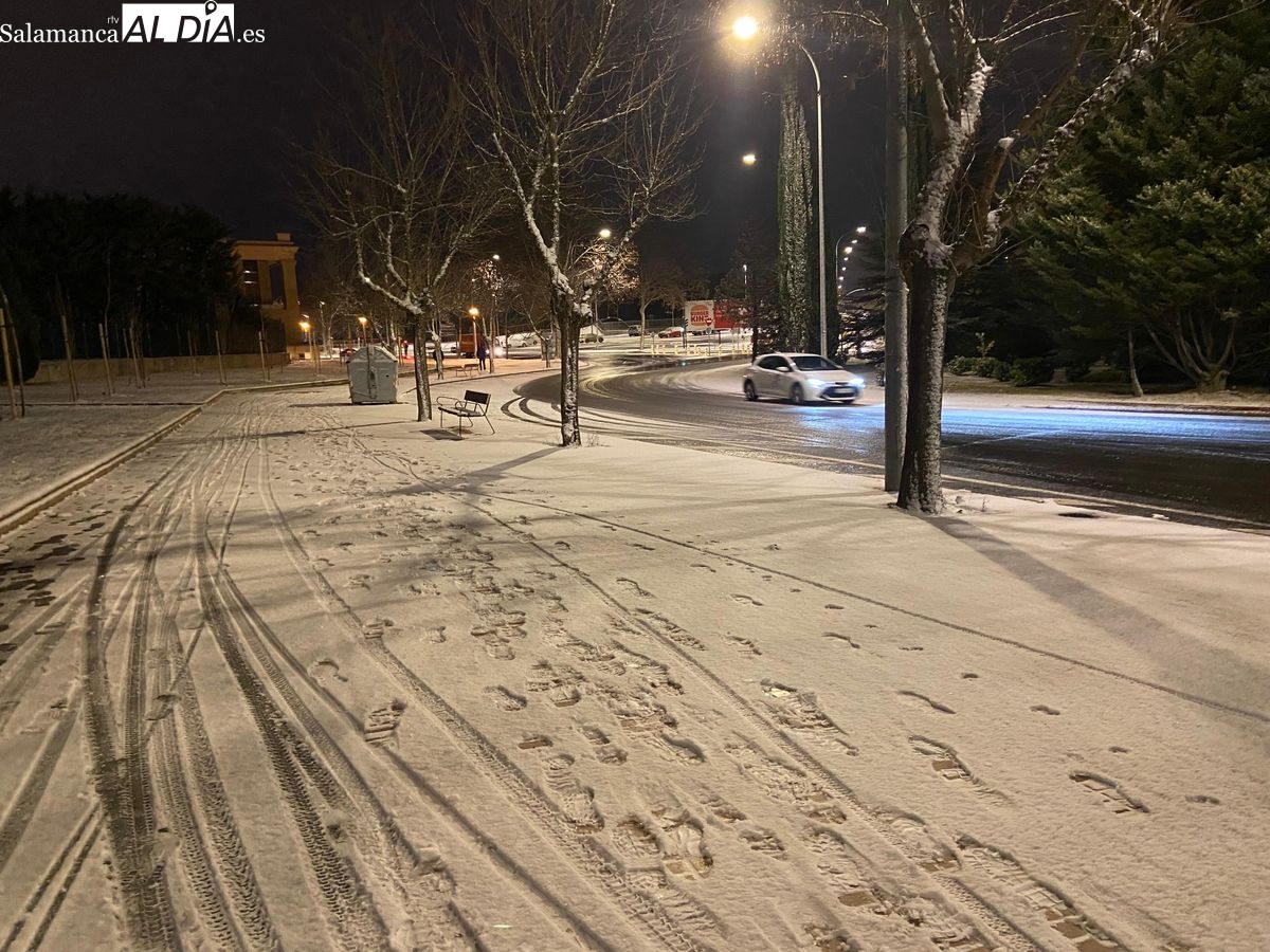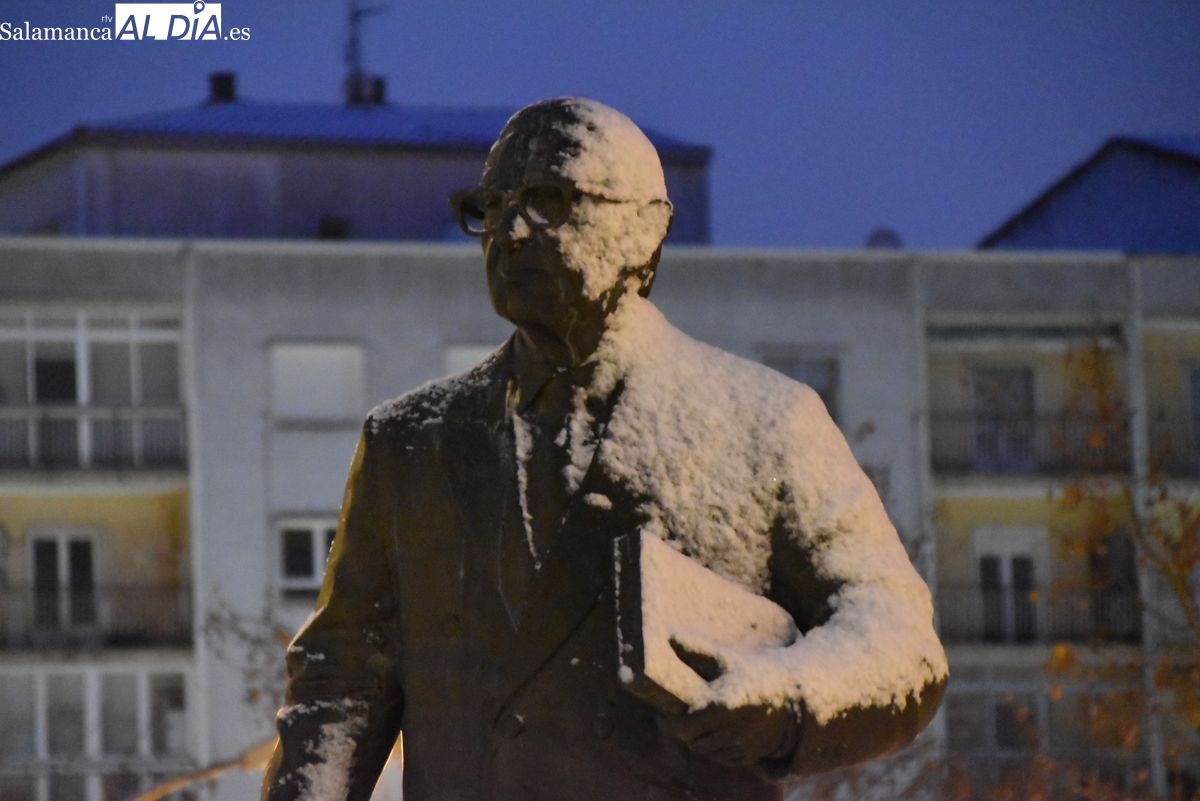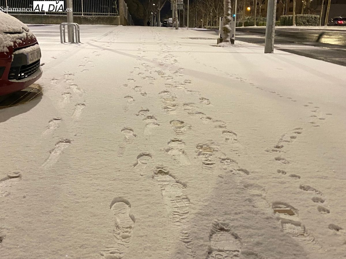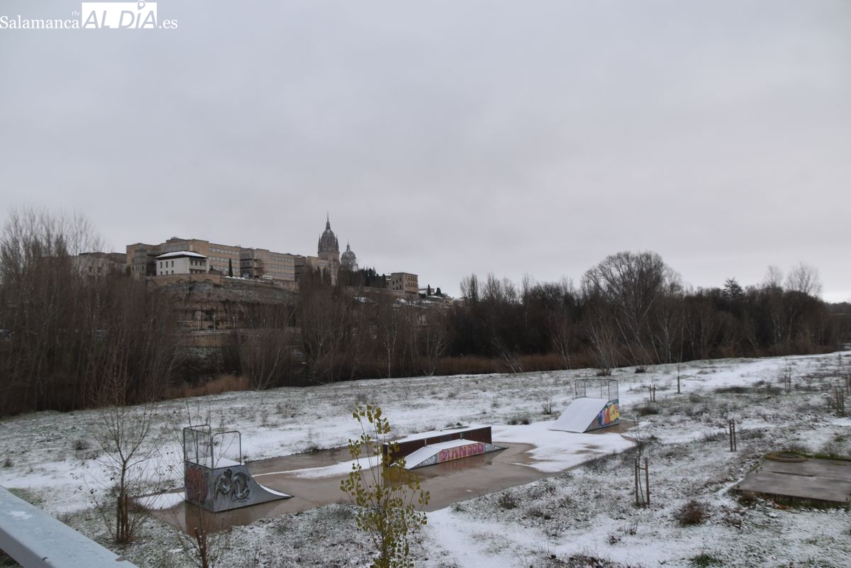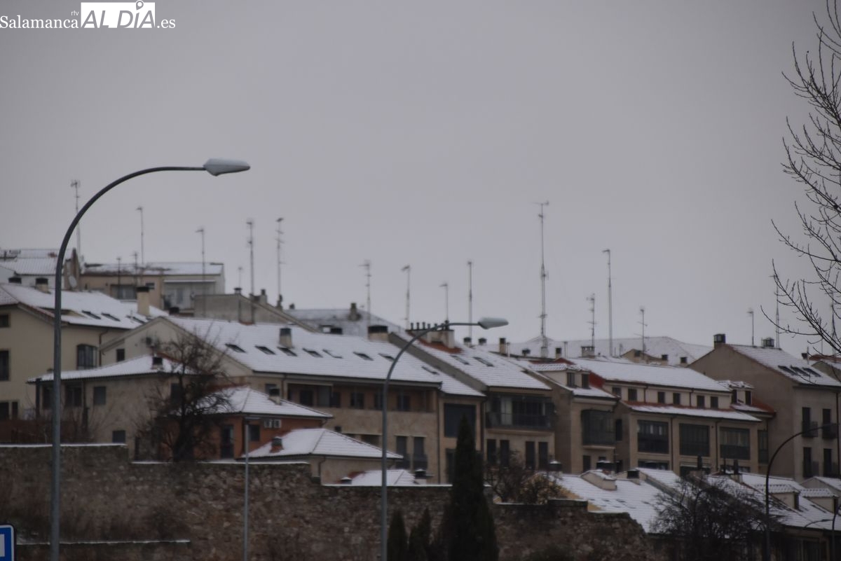 Los salmantinos se han encontrado esta mañana con bellas estampas en las calles y monumentos de la ciudad, que han quedado cubiertos por la nieve caída durante la madrugada de este miércoles, 7 de enero. El fenómeno meteorológico ha estado acompañado de un descenso notable de los termómetros, marcando una jornada rigurosamente invernal en la capital charra.