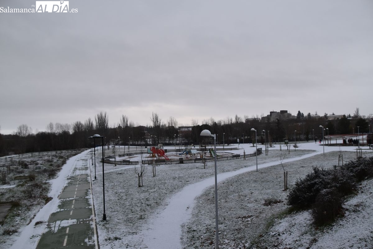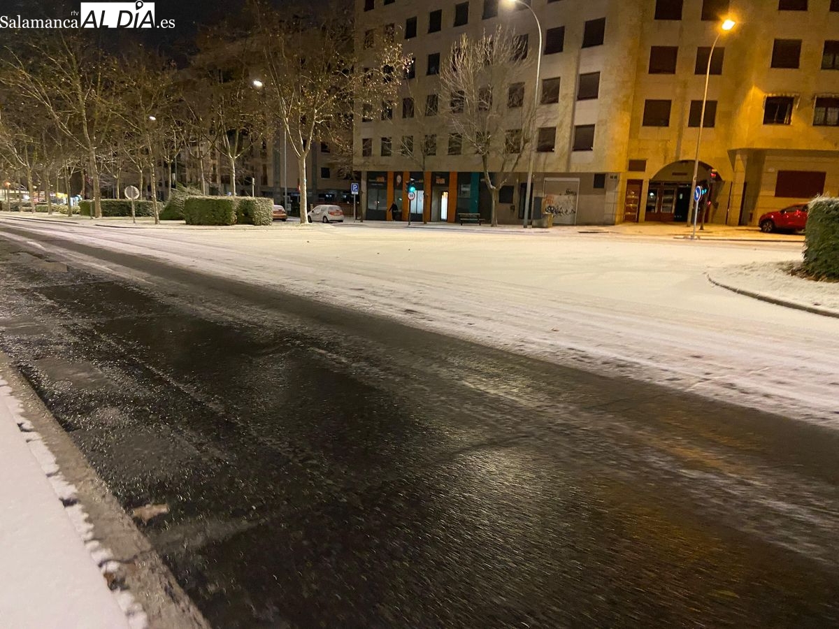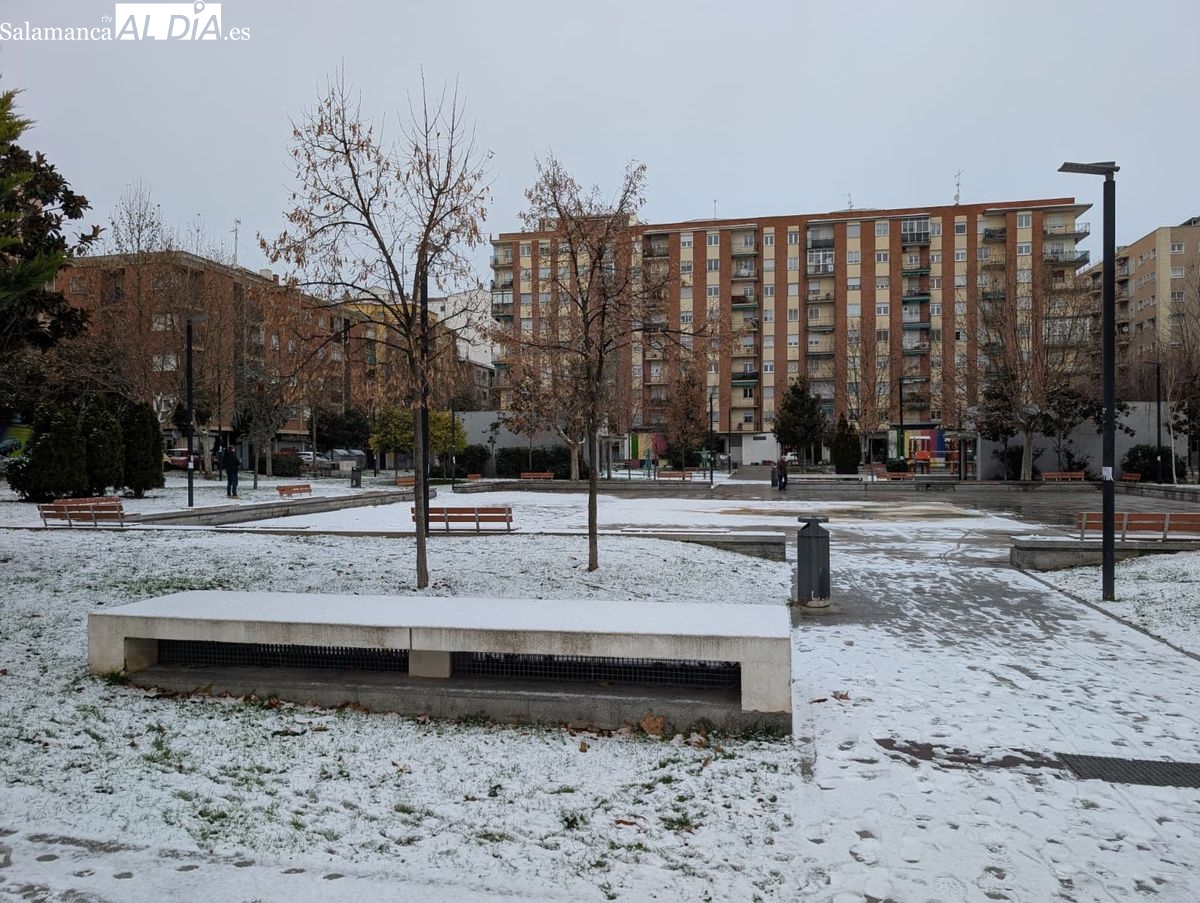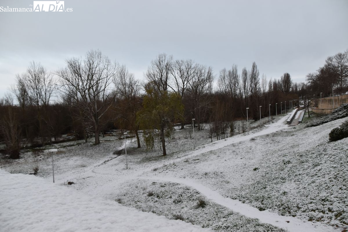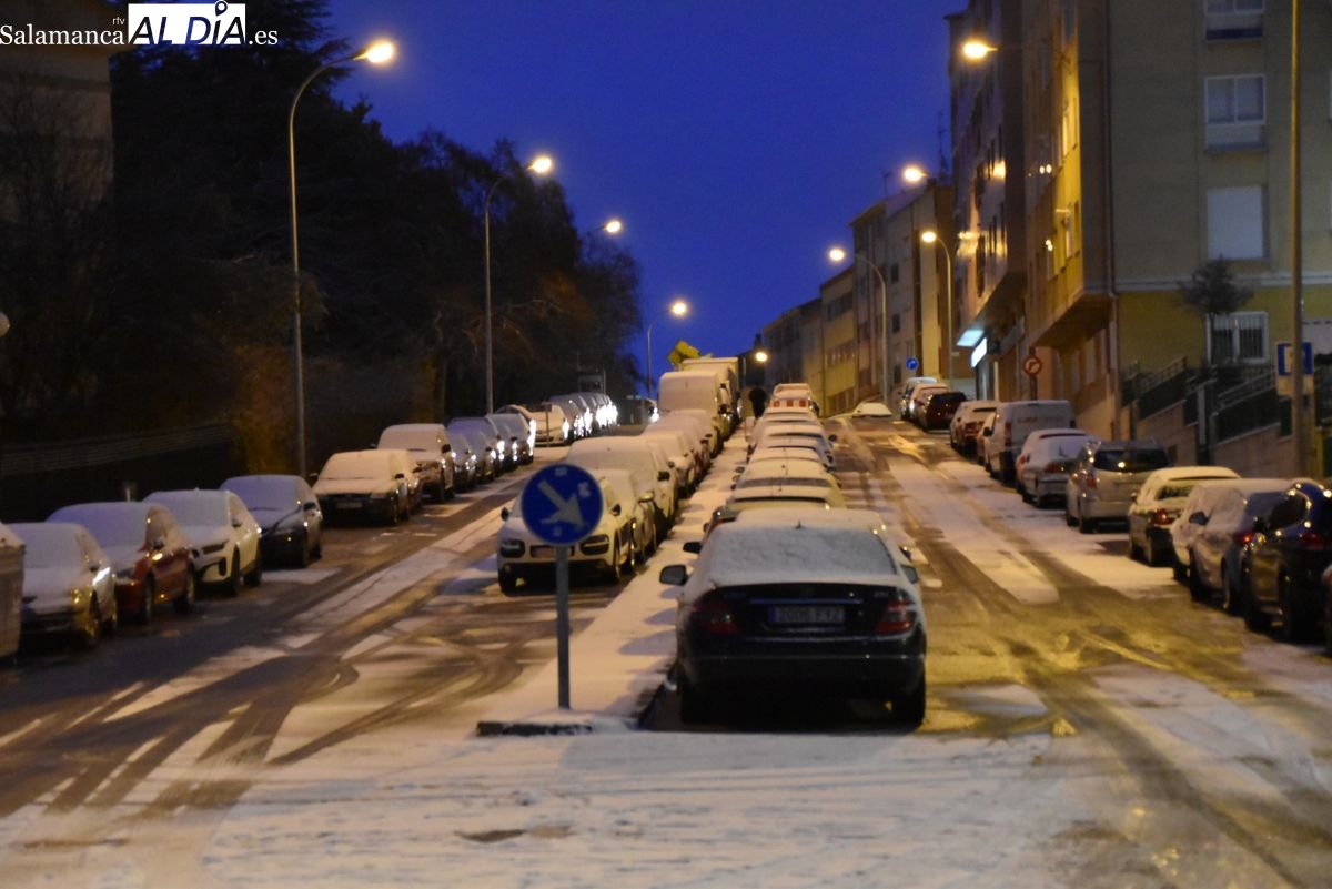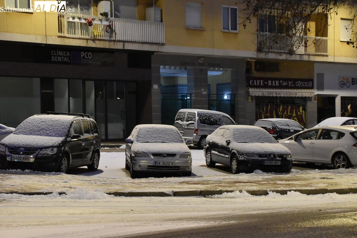 Los salmantinos se han encontrado esta mañana con bellas estampas en las calles y monumentos de la ciudad, que han quedado cubiertos por la nieve caída durante la madrugada de este miércoles, 7 de enero. El fenómeno meteorológico ha estado acompañado de un descenso notable de los termómetros, marcando una jornada rigurosamente invernal en la capital charra.