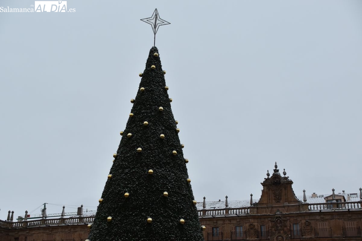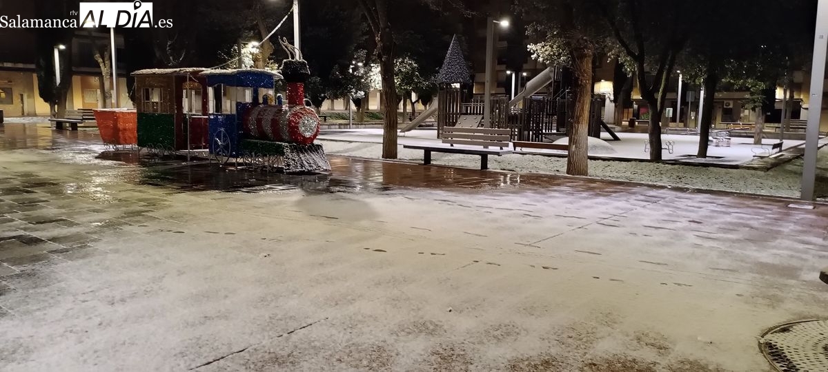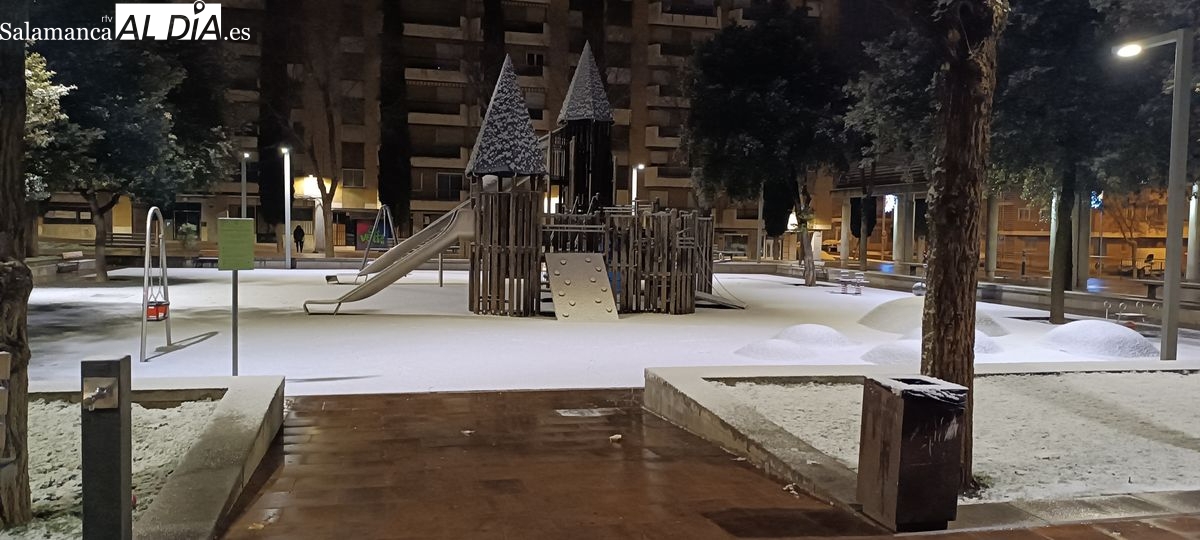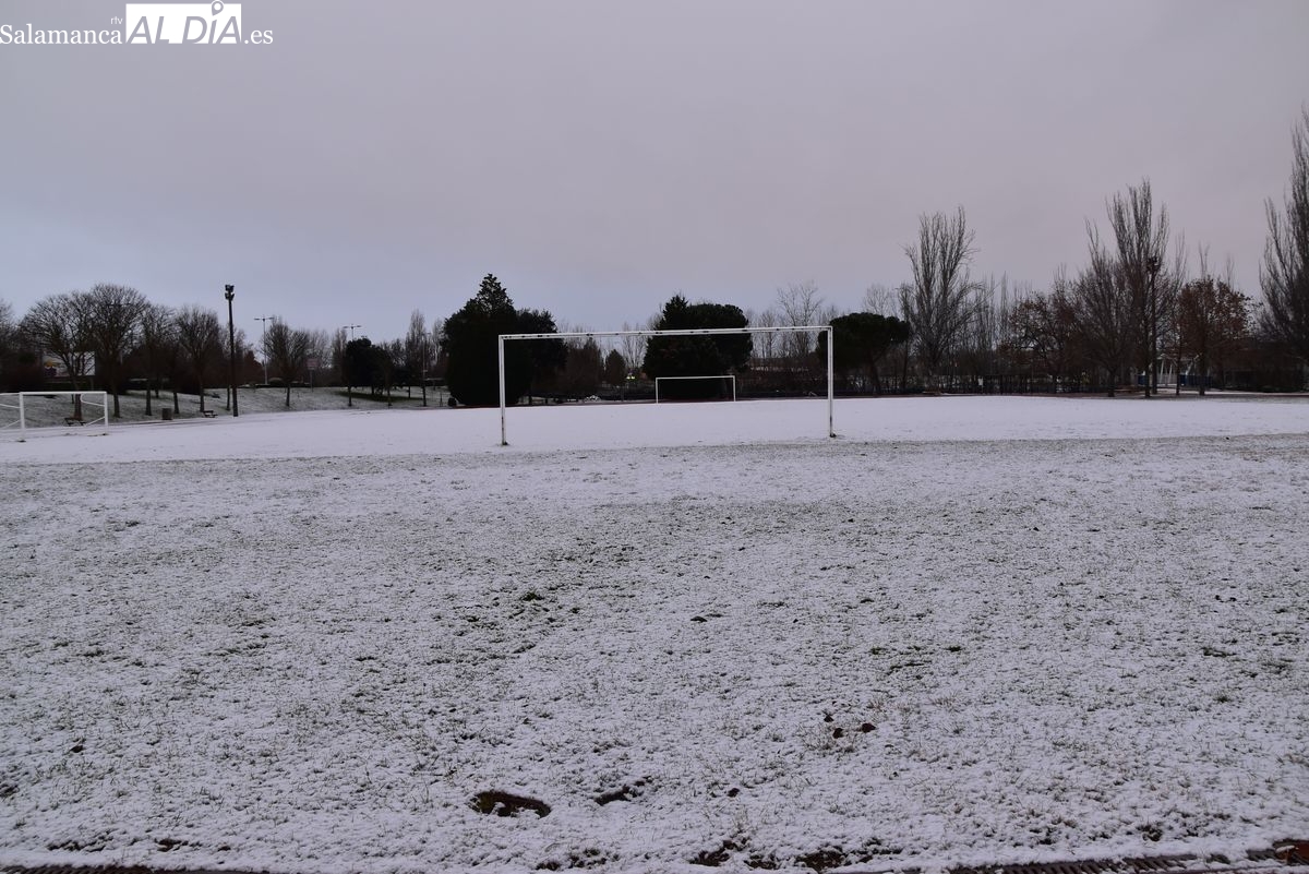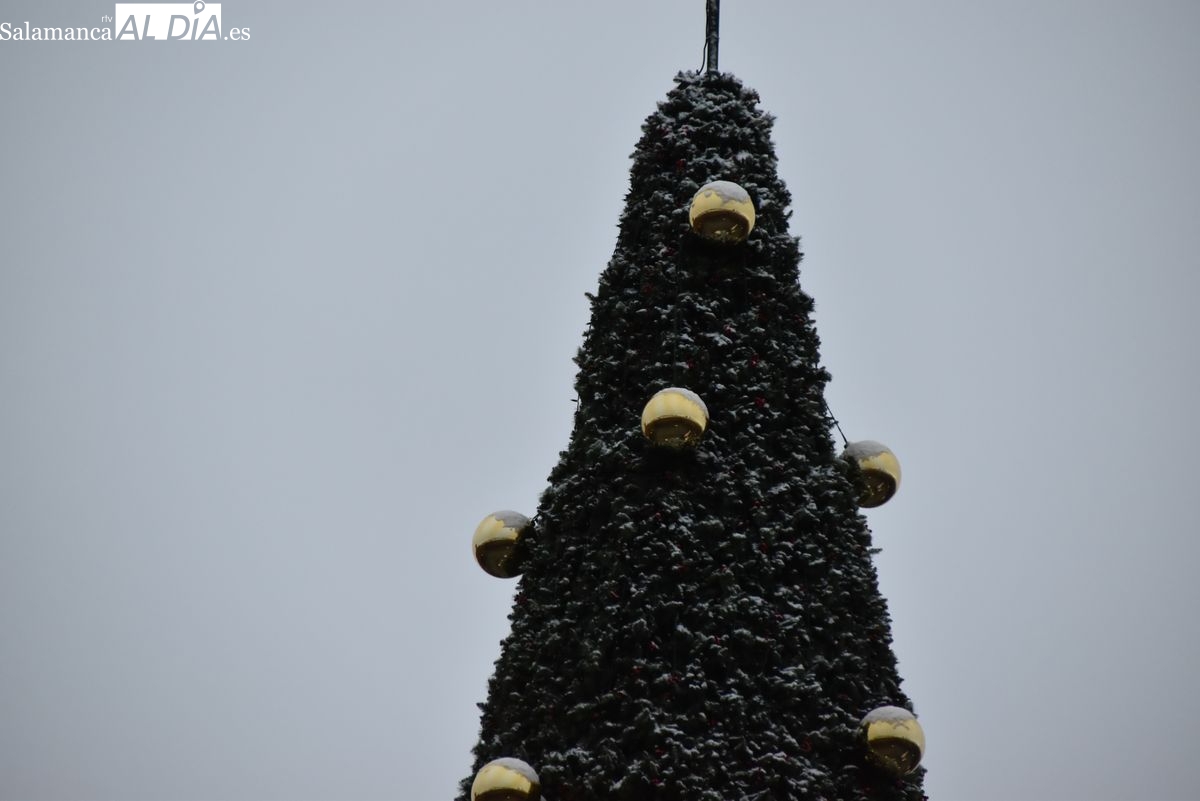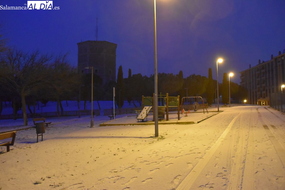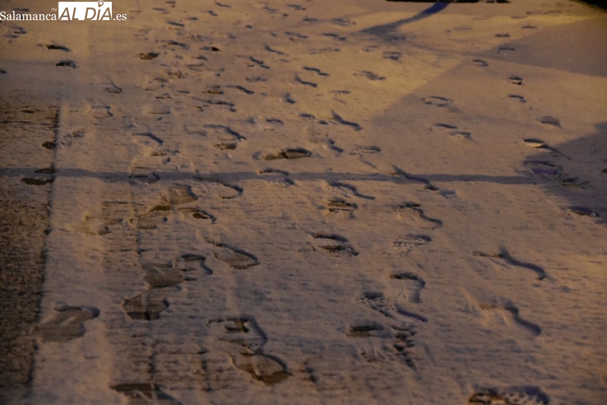 Los salmantinos se han encontrado esta mañana con bellas estampas en las calles y monumentos de la ciudad, que han quedado cubiertos por la nieve caída durante la madrugada de este miércoles, 7 de enero. El fenómeno meteorológico ha estado acompañado de un descenso notable de los termómetros, marcando una jornada rigurosamente invernal en la capital charra.
