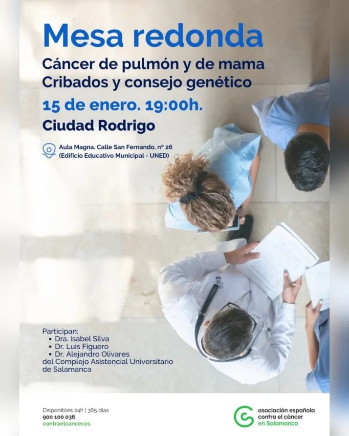 Tres especialistas del Complejo Asistencial Universitario de Salamanca participarán en una mesa redonda sobre el cáncer de pulmón y de mama, los cribados y consejo genético. La jornada, de acceso libre, se celebrará el 15 de enero en la UNED..