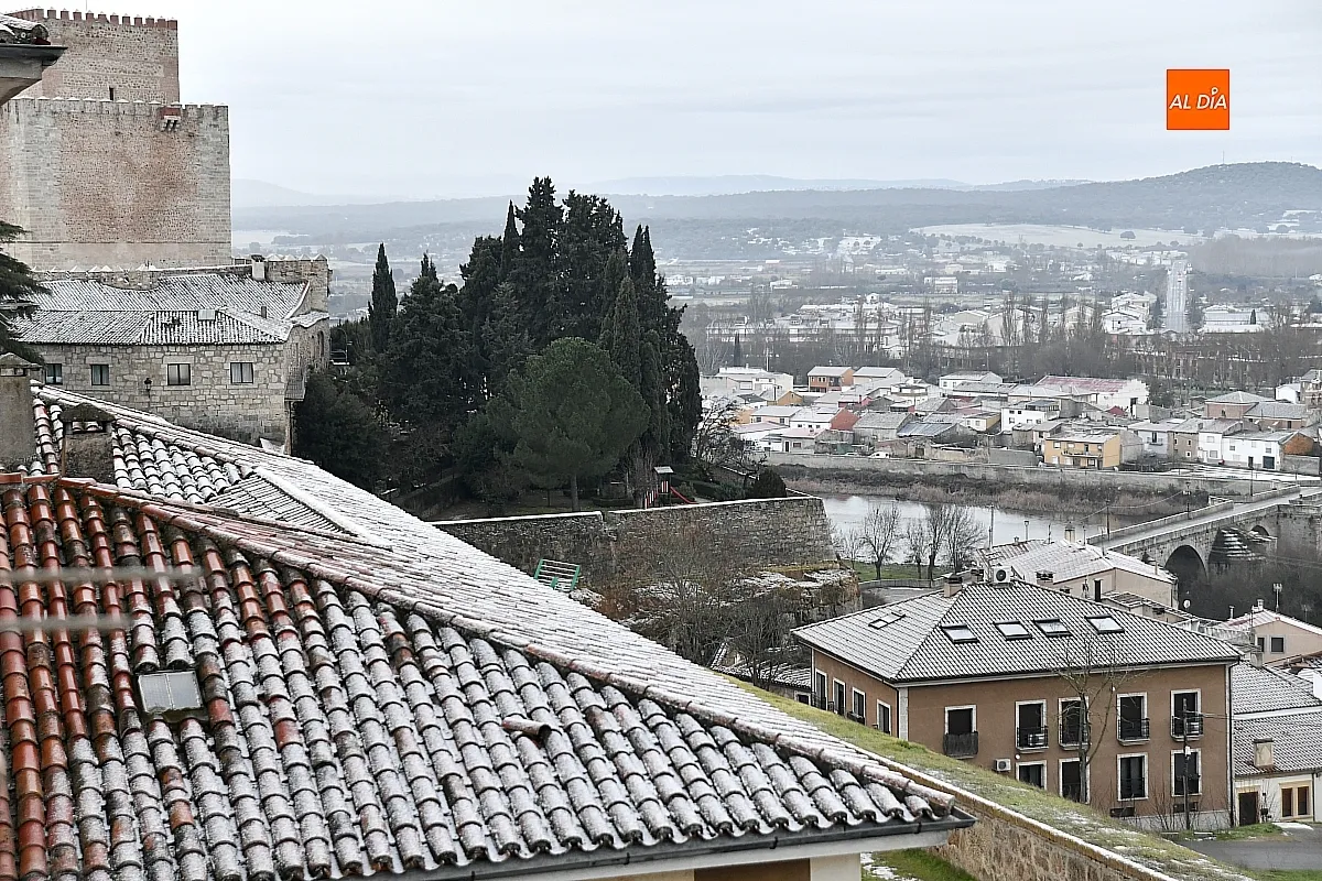 La vuelta a la rutina tras la festividad de los Reyes Magos ha llegado a Ciudad Rodrigo acompañada de una estampa invernal. Con los primeros claros del día, los mirobrigenses han podido observar la primera nevada de este invierno, que ha dejado una leve capa blanca sobre la ciudad antigua y sus alrededores.