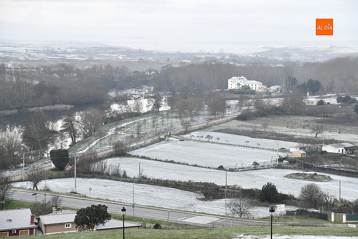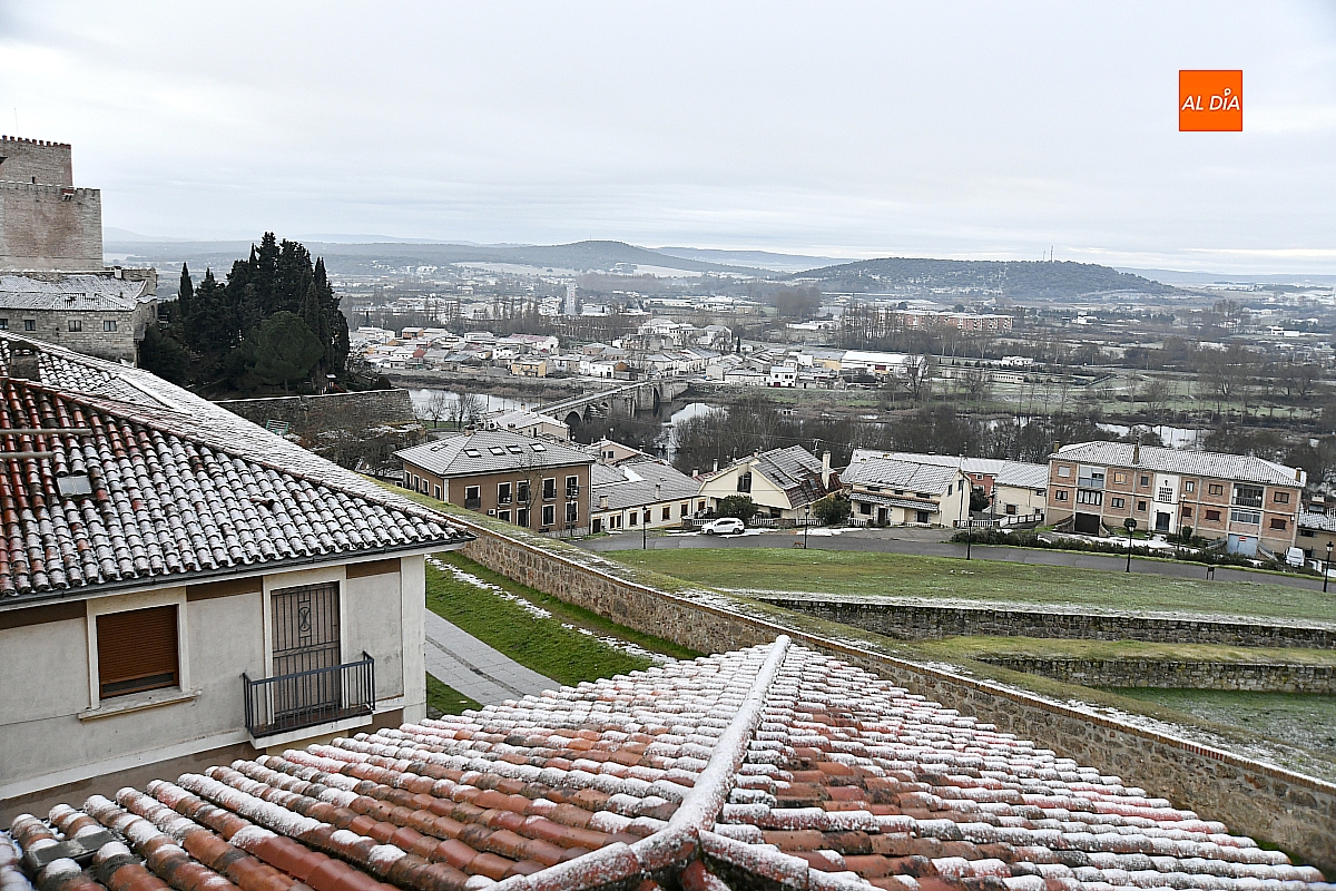 La vuelta a la rutina tras la festividad de los Reyes Magos ha llegado a Ciudad Rodrigo acompañada de una estampa invernal. Con los primeros claros del día, los mirobrigenses han podido observar la primera nevada de este invierno, que ha dejado una leve capa blanca sobre la ciudad antigua y sus alrededores.