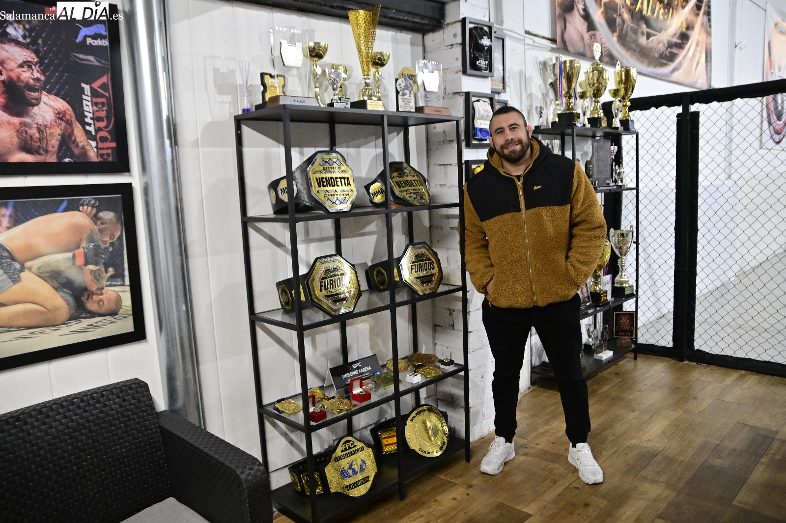 El luchador ha repasado su carrera y la situación actual del deporte en SALAMANCArtv AL DÍA -nos ha enseñado su centro, que está repleto de medallas, cinturones y trofeos, tal y como se puede ver en nuestra galería de imágenes-, donde ha destacado la evolución de las MMA desde su llegada. Según ha explicado, en sus inicios "todavía no era muy conocido el MMA en Salamanca y tampoco mucho en España, estaba empezando a arrancar ese deporte". Sin embargo, su perseverancia y experiencia previa compitiendo en jiu-jitsu brasileño y MMA en el extranjero le han permitido consolidar su proyecto deportivo en la ciudad. Lleva ya años en ella y es un auténtico aventuro que ha viajado por medio mundo.