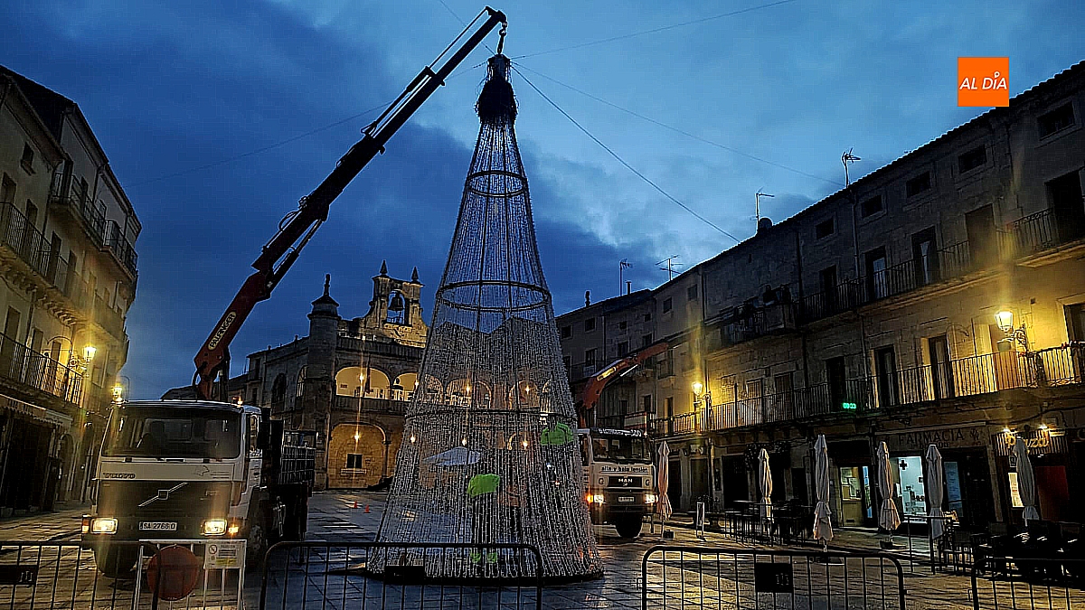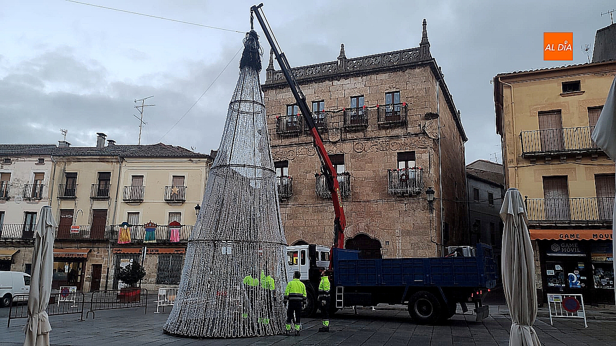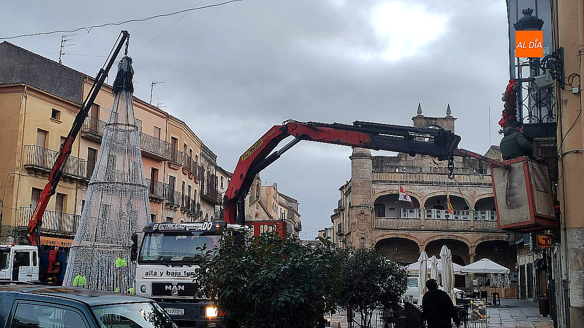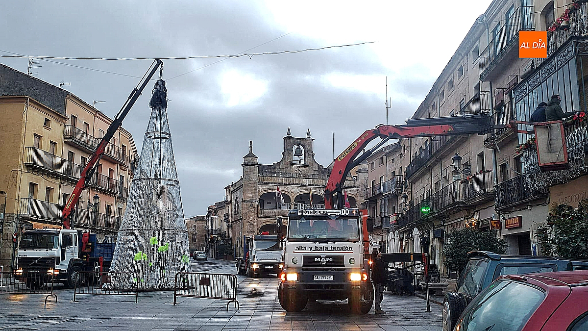 Concluidas las celebraciones navideñas, Ciudad Rodrigo inicia esta semana la retirada del alumbrado, las figuras decorativas y el emblemático pino de la Plaza Mayor, cerrando así un ciclo festivo que ha transformado durante semanas el pulso urbano de la ciudad y de sus barrios y pedanías. La operación, que marca simbólicamente el final de las Pascuas, supone una inversión global de 46.490,62 euros entre los trabajos de instalación y desmontaje.