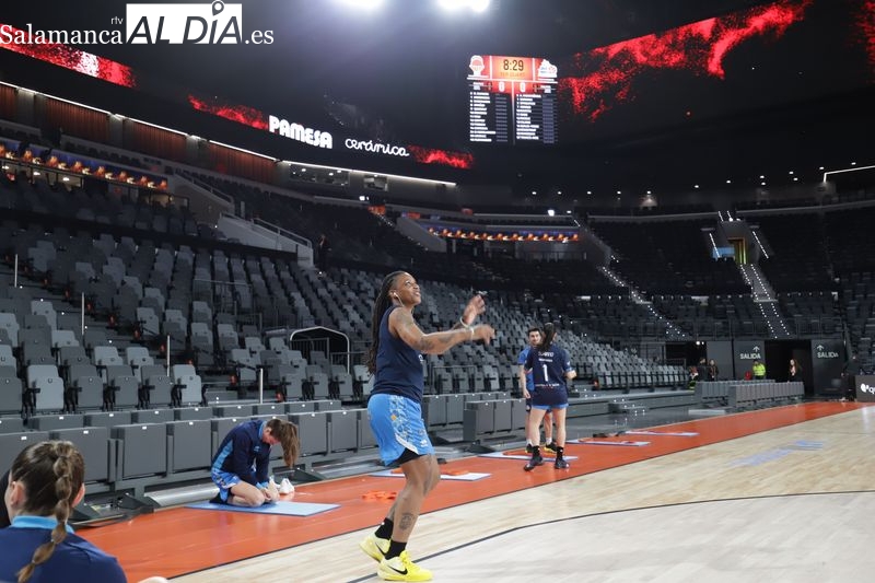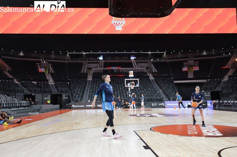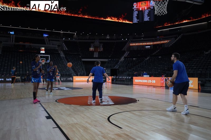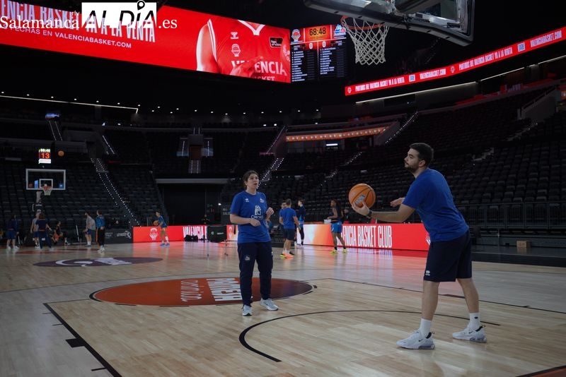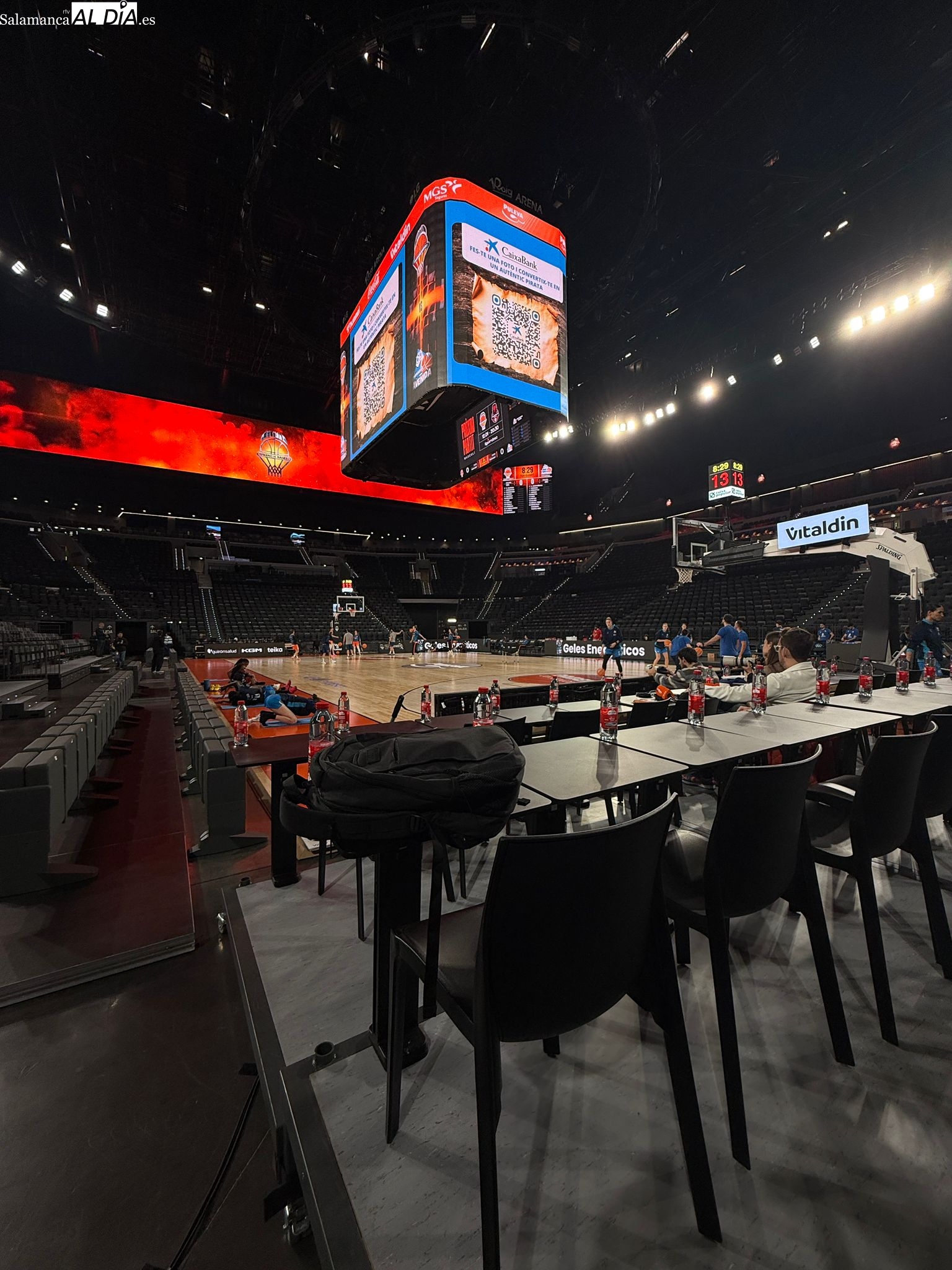 Los miembros de la expedición del equipo salmantino se han maravillado de ver el aspecto del Roig Arena tanto en la pista como en el interior, destacando las entrañas con los increíbles vestuarios o una zona de vídeo propia de salas de cines.