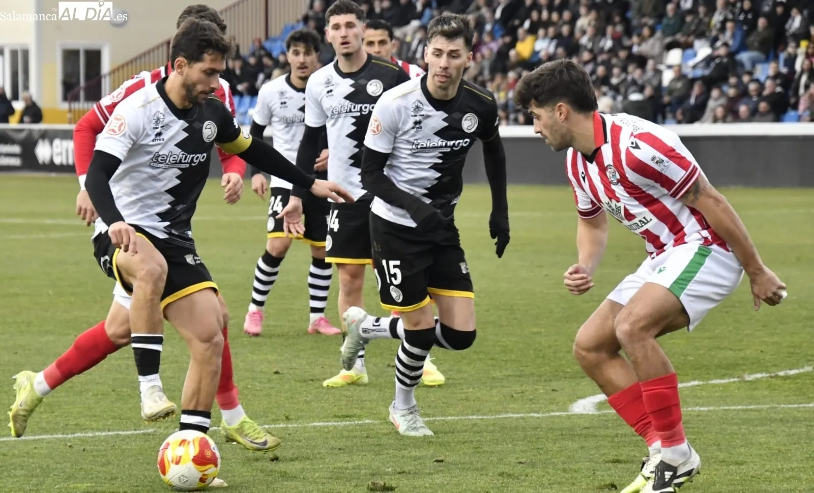 Con el balón en juego, poco ha tardado el Zamora en generar una ocasión de peligro con un remate de cabeza de Carbonell que ha lamido el poste charro a la salida de un córner. Asimismo, los viriatos han encontrado un absoluto filón que explotar en la banda de Henri, que no ha tenido un estreno positivo y ha visto la amarilla a la media hora de contienda.
