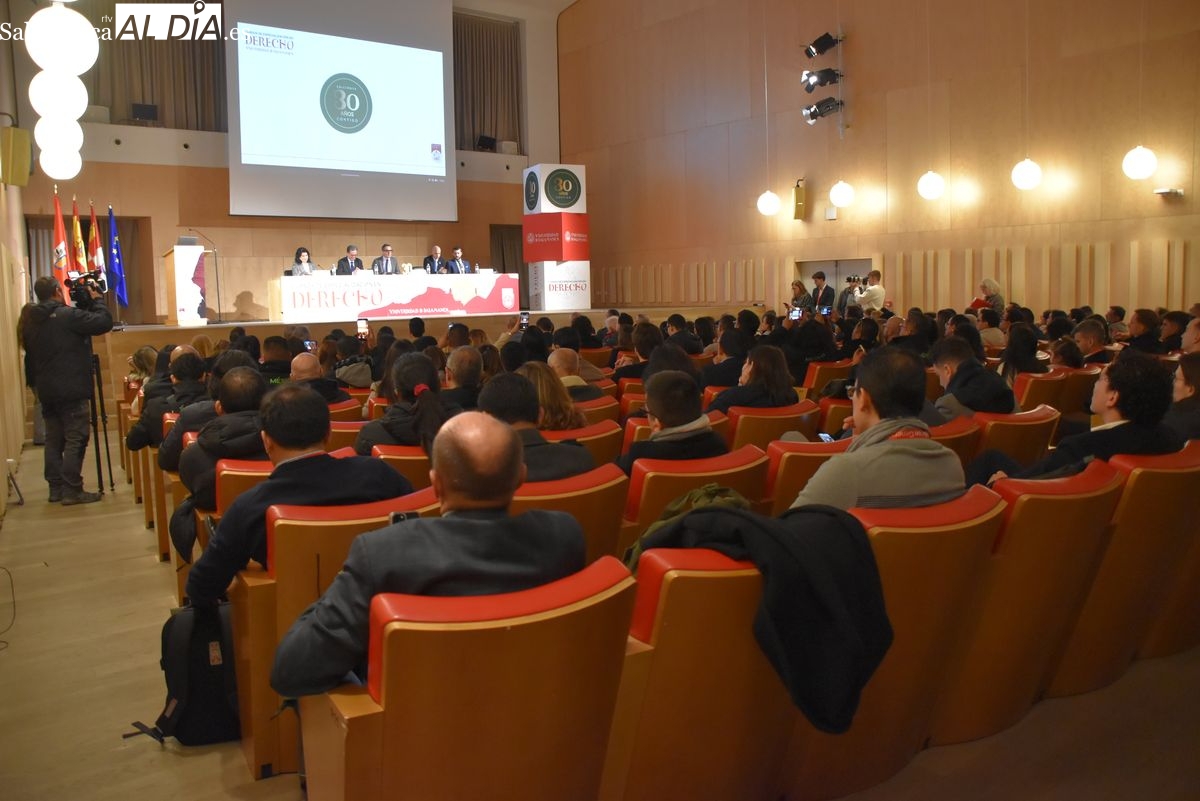 La Universidad de Salamanca ha inaugurado la 56.ª edición de sus Cursos de Especialización en Derecho con un récord de participación, un 41% más de alumnos. La lección inaugural, a cargo del fiscal Carlos Castresana, ha estado marcada por una dura advertencia sobre la erosión del estado de derecho y sus consecuencias, como la violencia, la corrupción y el riesgo de un conflicto global.