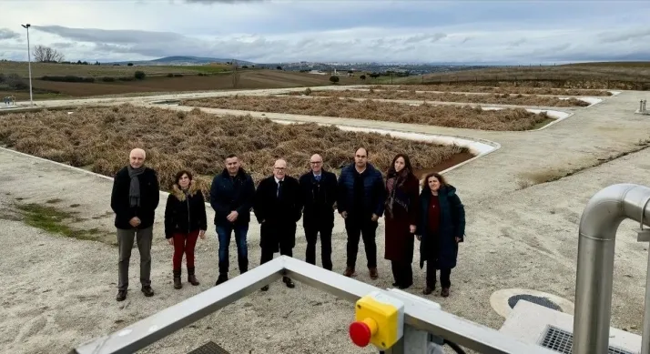 La infraestructura, ubicada al aire libre en un entorno rural, cuenta con un edificio de control, sistemas de tuberías industriales y extensos lechos de cañas, elementos técnicos diseñados para optimizar el proceso de depuración y devolver el agua al medio natural en las mejores condiciones posibles.