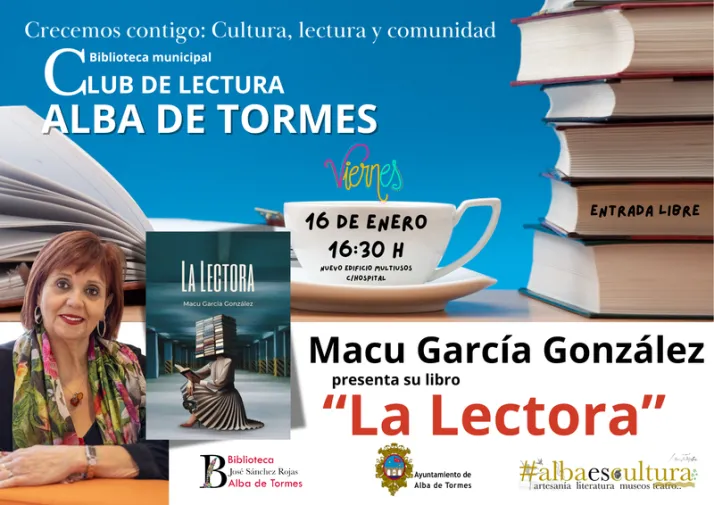 El Ayuntamiento de Alba de Tormes ha confirmado la celebración de un nuevo encuentro literario en la villa ducal. La biblioteca municipal será el escenario elegido para la presentación de la novela "La Lectora", escrita por Macu García González. Esta actividad se integra dentro de la programación habitual del club de lectura municipal, fomentando así el contacto directo entre autores y lectores.