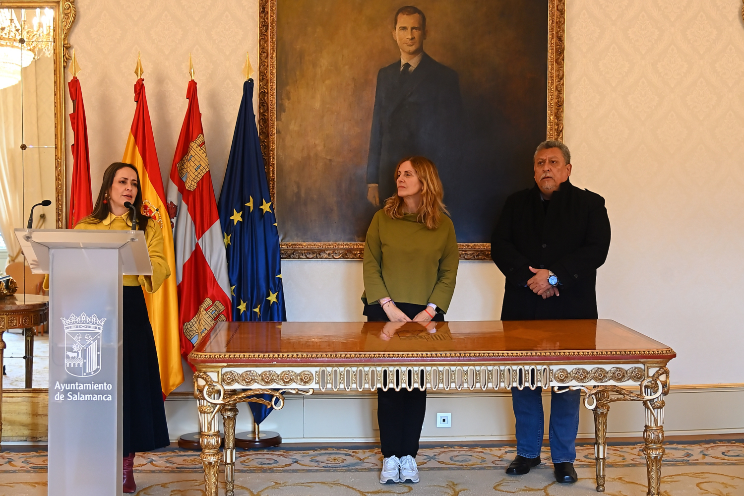 La concejala de Relaciones Institucionales, Carmen Seguín, ha recibido en el Ayuntamiento de Salamanca a los integrantes de la Red Iberoamericana de Política Criminal. La recepción institucional se ha celebrado en el marco de la visita de este grupo a la ciudad, donde la edil ha dado la bienvenida oficial a los asistentes en nombre de la corporación municipal.