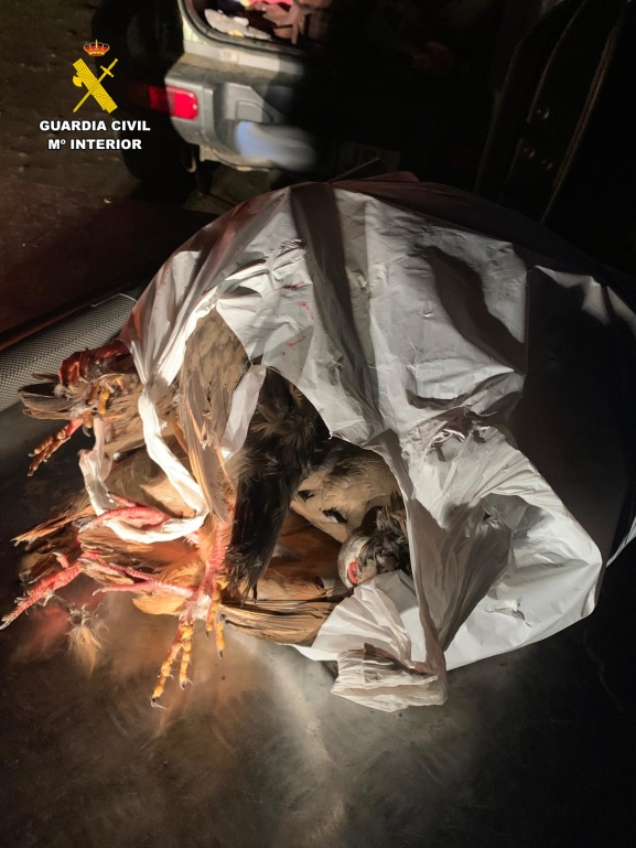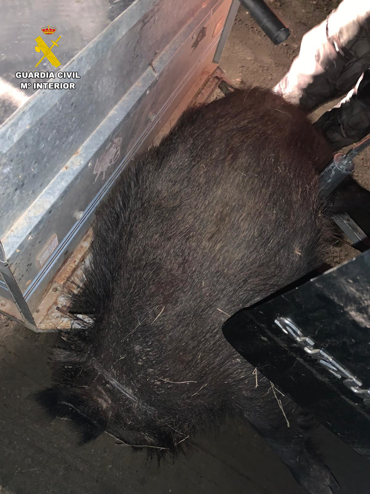 Los hechos se produjeron durante un servicio de prevención en horario nocturno, cuando ya había oscurecido. Los agentes dieron el alto a un vehículo que transitaba por un camino vecinal del municipio. Tras realizar una primera inspección ocular del transporte, los guardias civiles descubrieron en el remolque un ejemplar de jabalí, así como una bolsa de plástico que contenía 20 perdices y una paloma, todas ellas piezas recientemente abatidas.