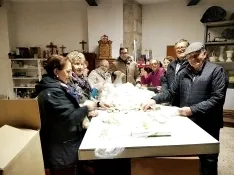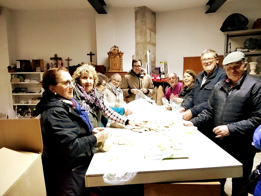 También prepararon los lotes que se expondrán a las puertas de la iglesia que serán sorteados tras la procesión que comenzará a las 12 del mediodía y posterior misa.