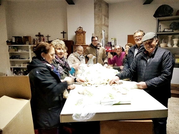 La cofradía de San Antón en la Parroquia de San Andrés ultima los preparativos para esta cita tan tradicional y arraigada en Ciudad Rodrigo reuniéndose los cofrades para embolsar los más de 6.000 panecillos que se pondrán a la venta a partir de las 9 de la mañana del 17 de enero.