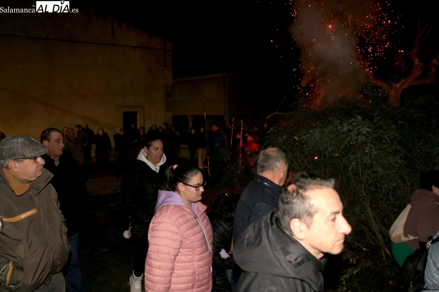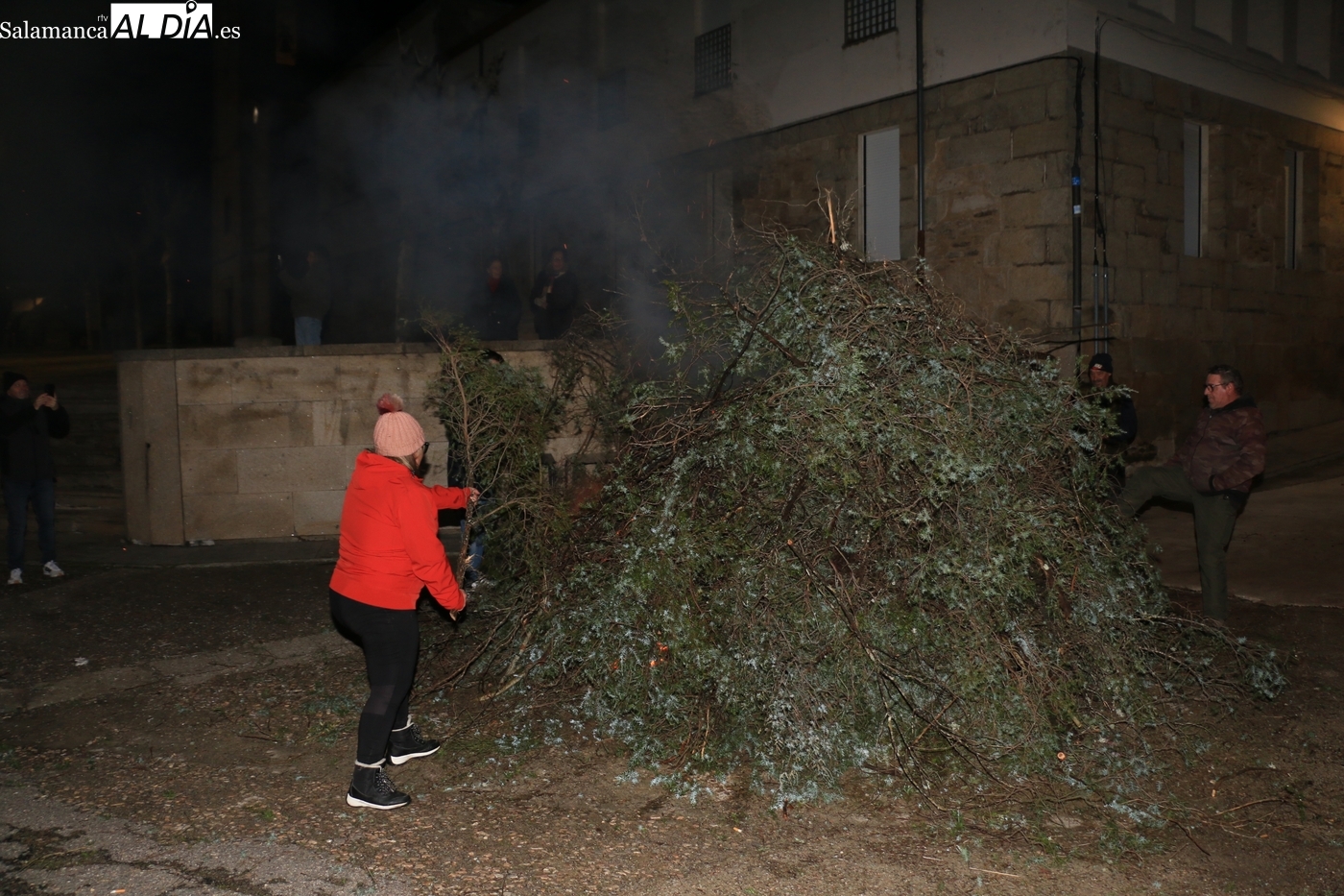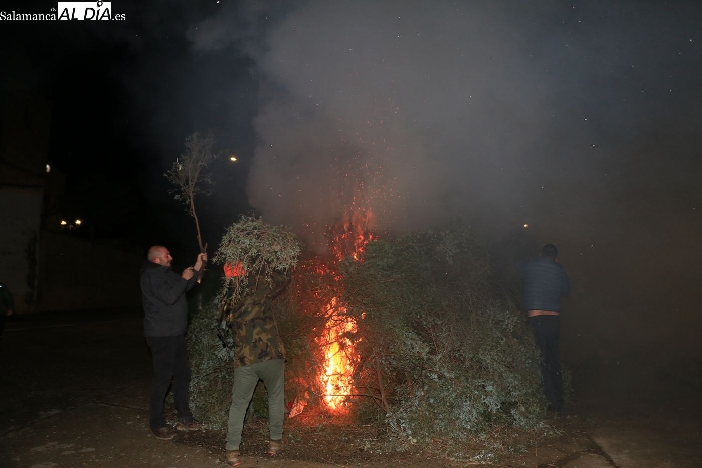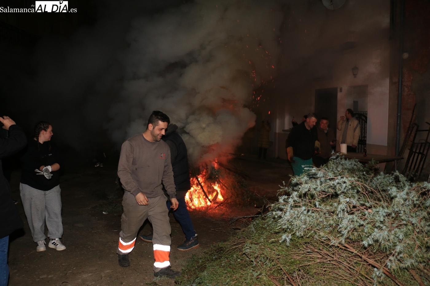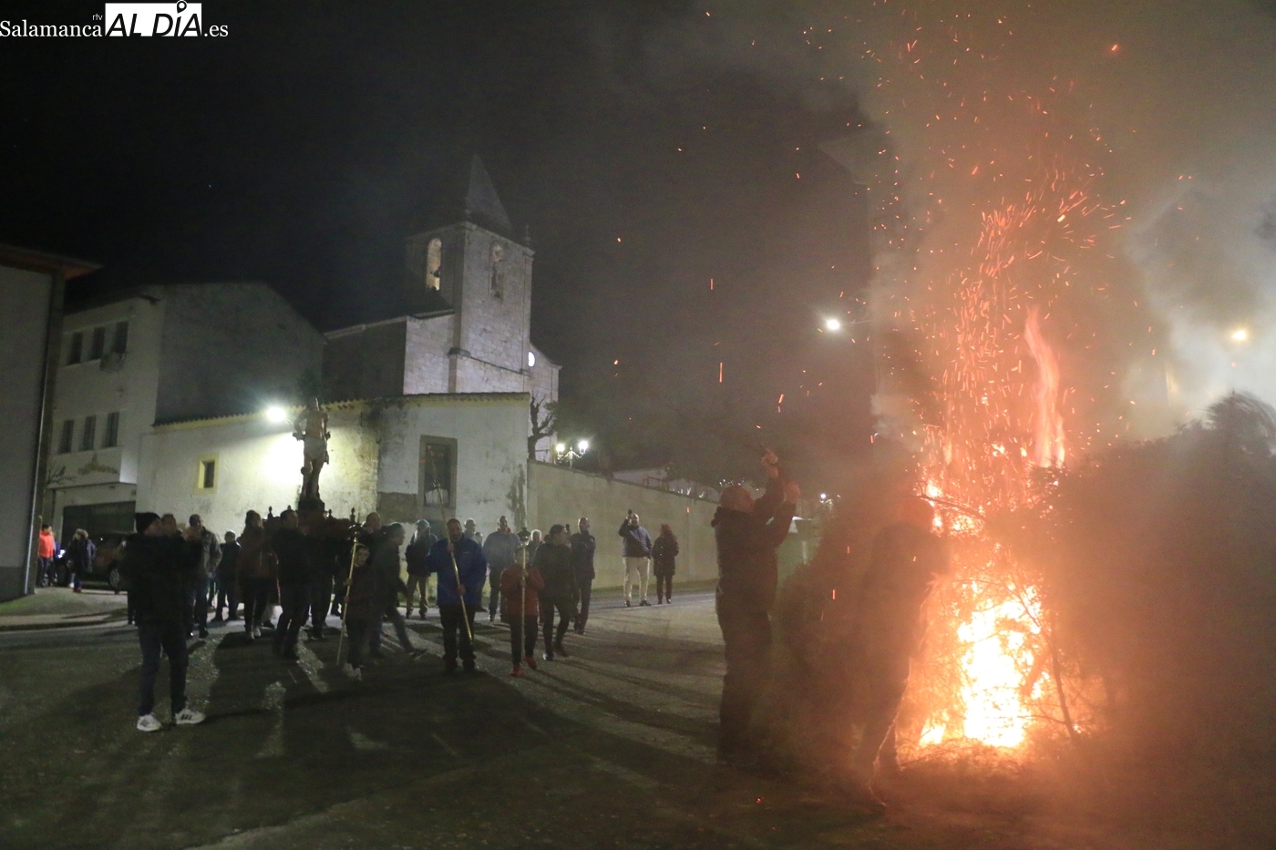El momento cumbre de la festividad se vivió durante el recorrido por las calles de la localidad, acto pficiado por el párroco José Sánchez Arroyo, ya de regreso de las hogueras de Sobradillo. Al paso de la comitiva se prendieron hasta cinco hogueras de júmbrio. Estas fogatas, convenientemente atizadas por los participantes, provocaron grandes humaredas cumpliendo con el rito ancestral, pues según la tradición, el humo purificará de todo mal a aquel que se 'ajuma' al cruzarlo o rodearlo.
