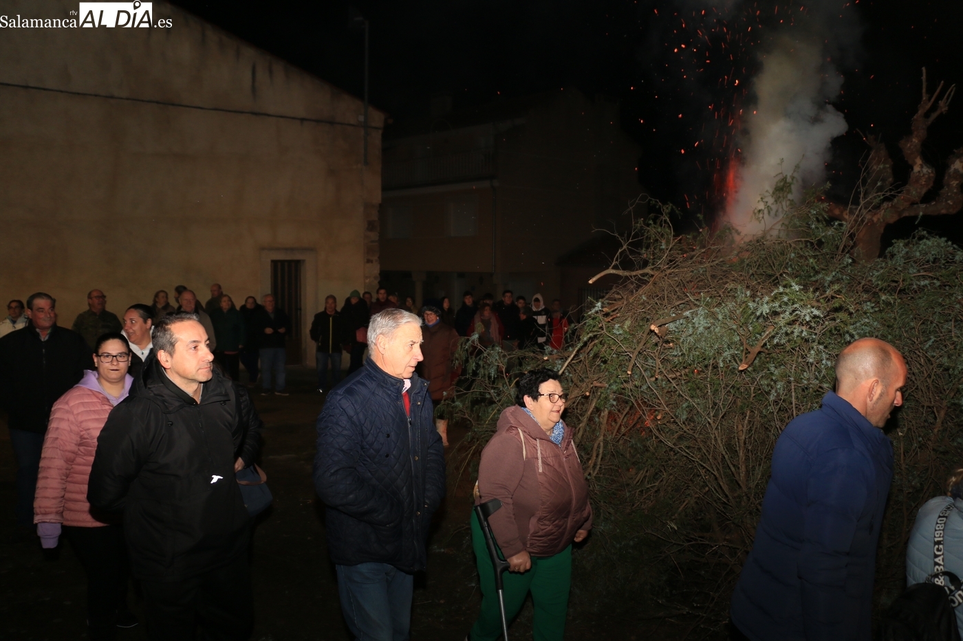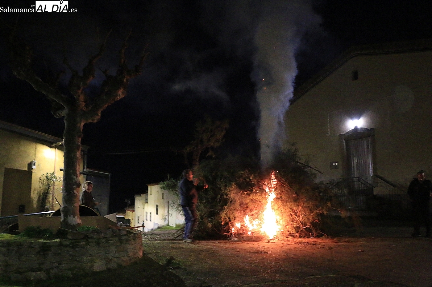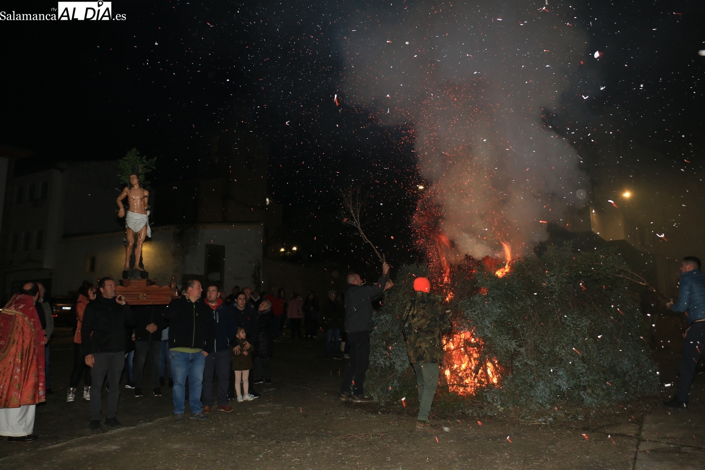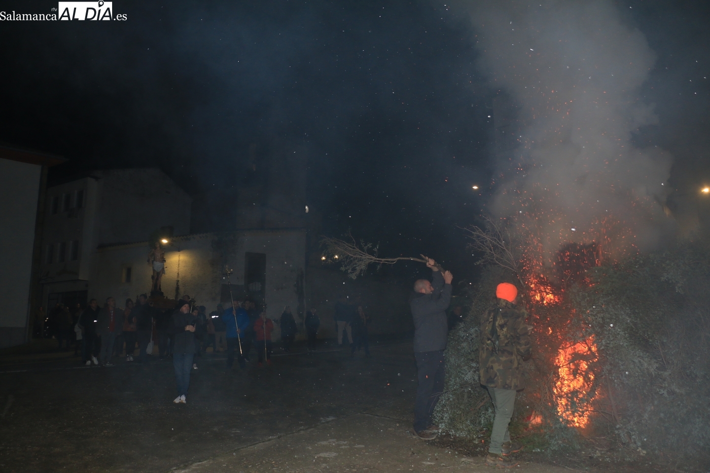 El momento cumbre de la festividad se vivió durante el recorrido por las calles de la localidad, acto pficiado por el párroco José Sánchez Arroyo, ya de regreso de las hogueras de Sobradillo. Al paso de la comitiva se prendieron hasta cinco hogueras de júmbrio. Estas fogatas, convenientemente atizadas por los participantes, provocaron grandes humaredas cumpliendo con el rito ancestral, pues según la tradición, el humo purificará de todo mal a aquel que se 'ajuma' al cruzarlo o rodearlo.