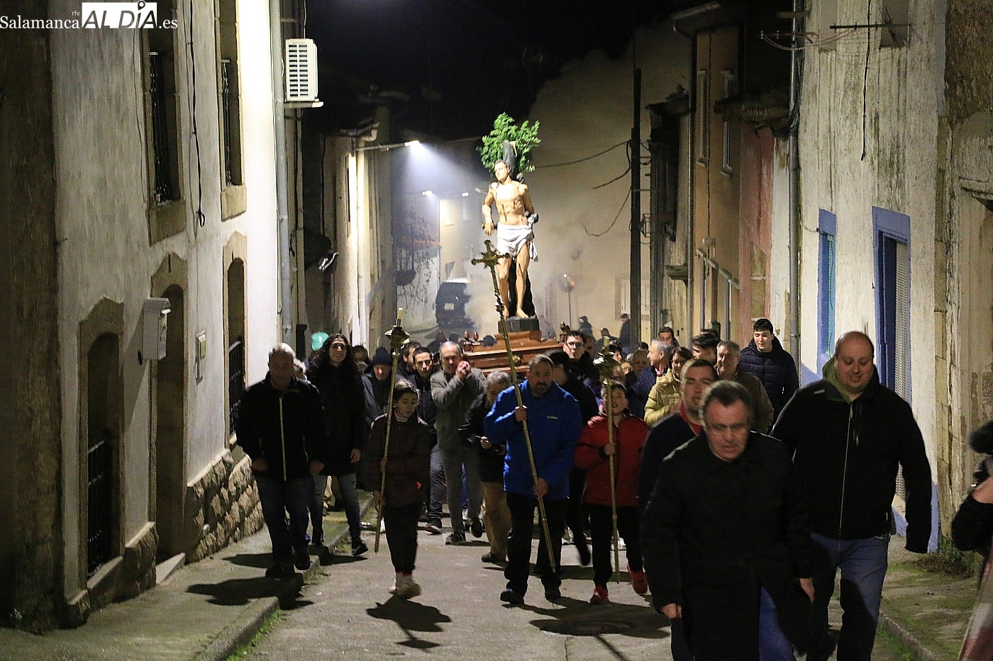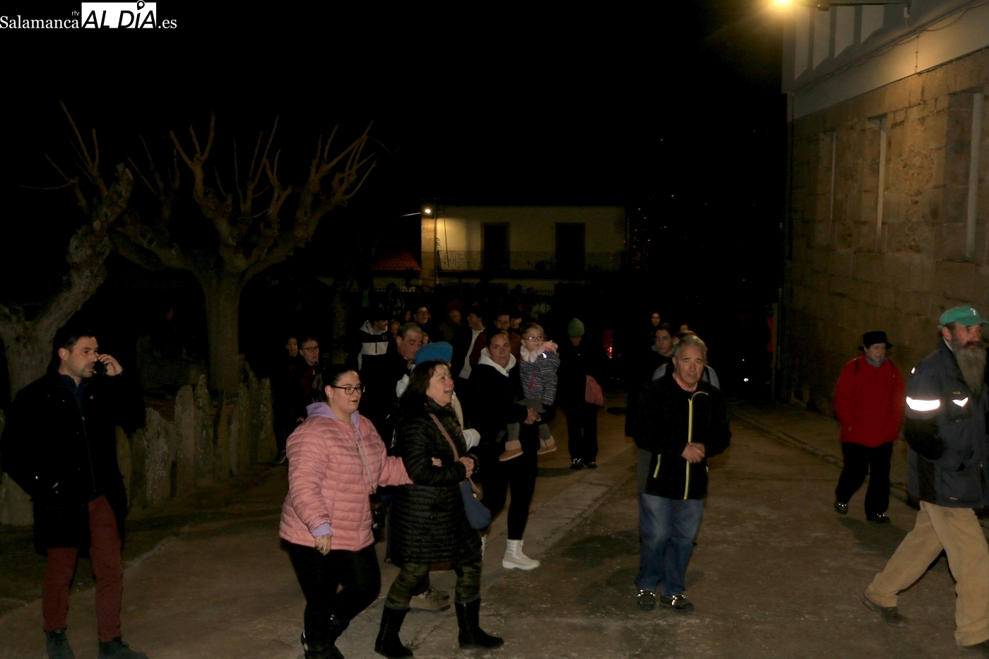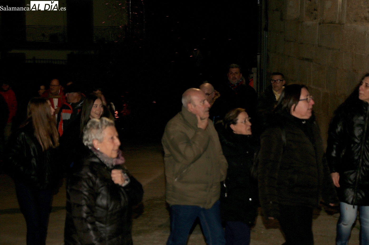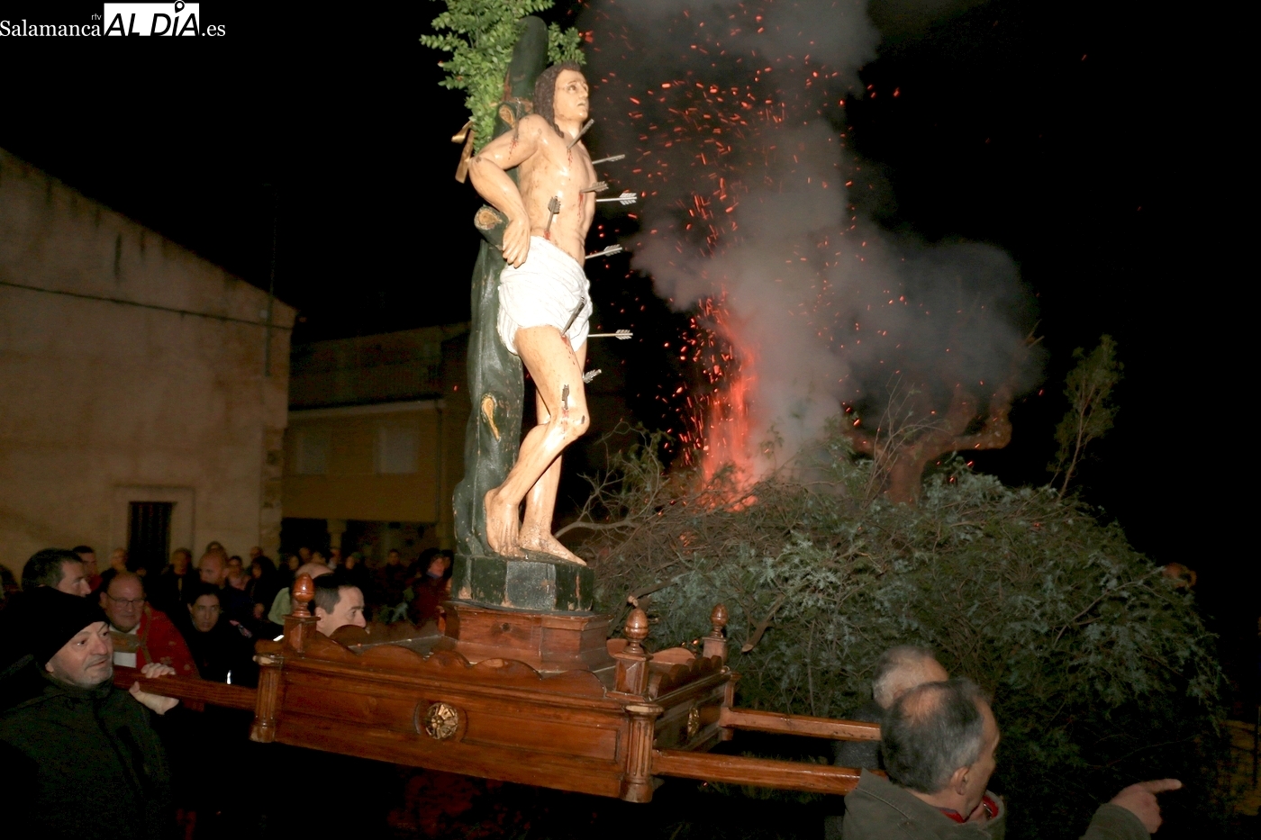 El momento cumbre de la festividad se vivió durante el recorrido por las calles de la localidad, acto pficiado por el párroco José Sánchez Arroyo, ya de regreso de las hogueras de Sobradillo. Al paso de la comitiva se prendieron hasta cinco hogueras de júmbrio. Estas fogatas, convenientemente atizadas por los participantes, provocaron grandes humaredas cumpliendo con el rito ancestral, pues según la tradición, el humo purificará de todo mal a aquel que se 'ajuma' al cruzarlo o rodearlo.