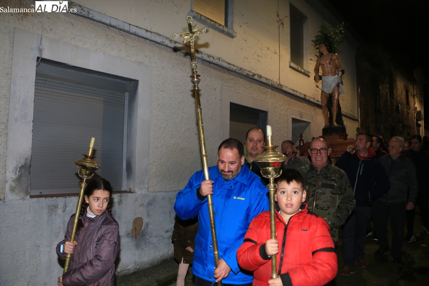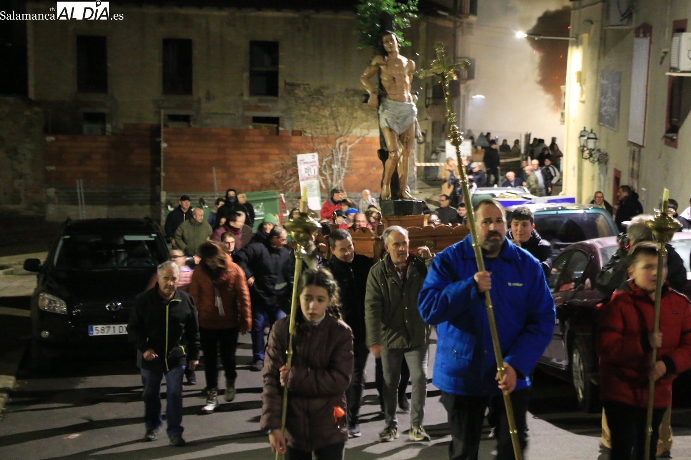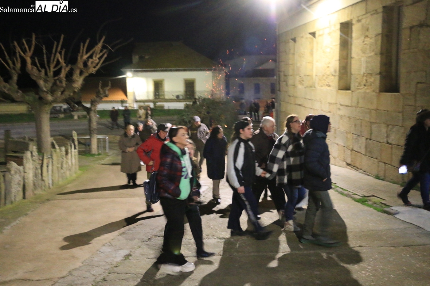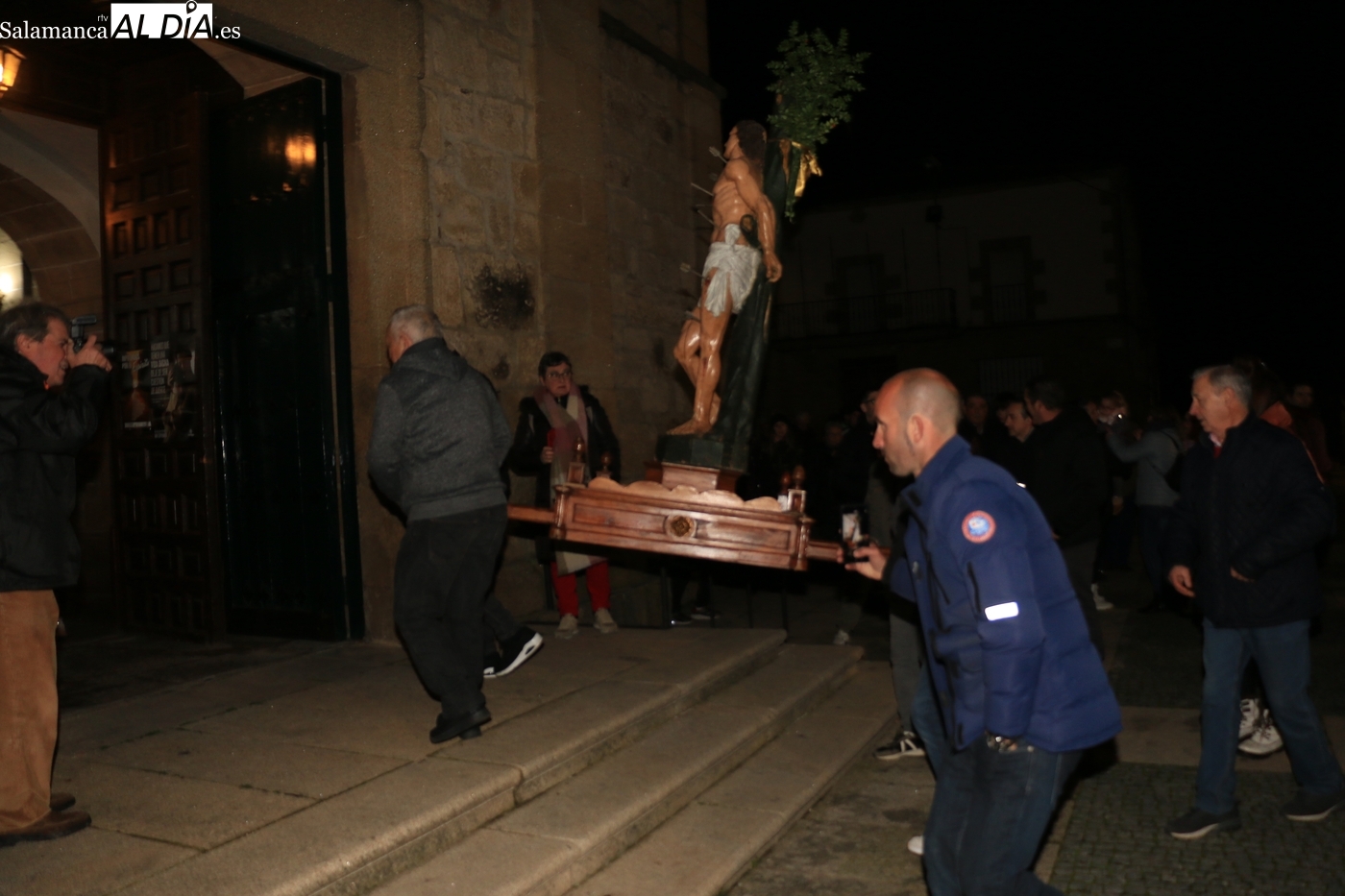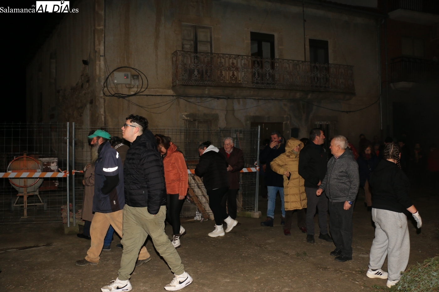 El momento cumbre de la festividad se vivió durante el recorrido por las calles de la localidad, acto pficiado por el párroco José Sánchez Arroyo, ya de regreso de las hogueras de Sobradillo. Al paso de la comitiva se prendieron hasta cinco hogueras de júmbrio. Estas fogatas, convenientemente atizadas por los participantes, provocaron grandes humaredas cumpliendo con el rito ancestral, pues según la tradición, el humo purificará de todo mal a aquel que se 'ajuma' al cruzarlo o rodearlo.