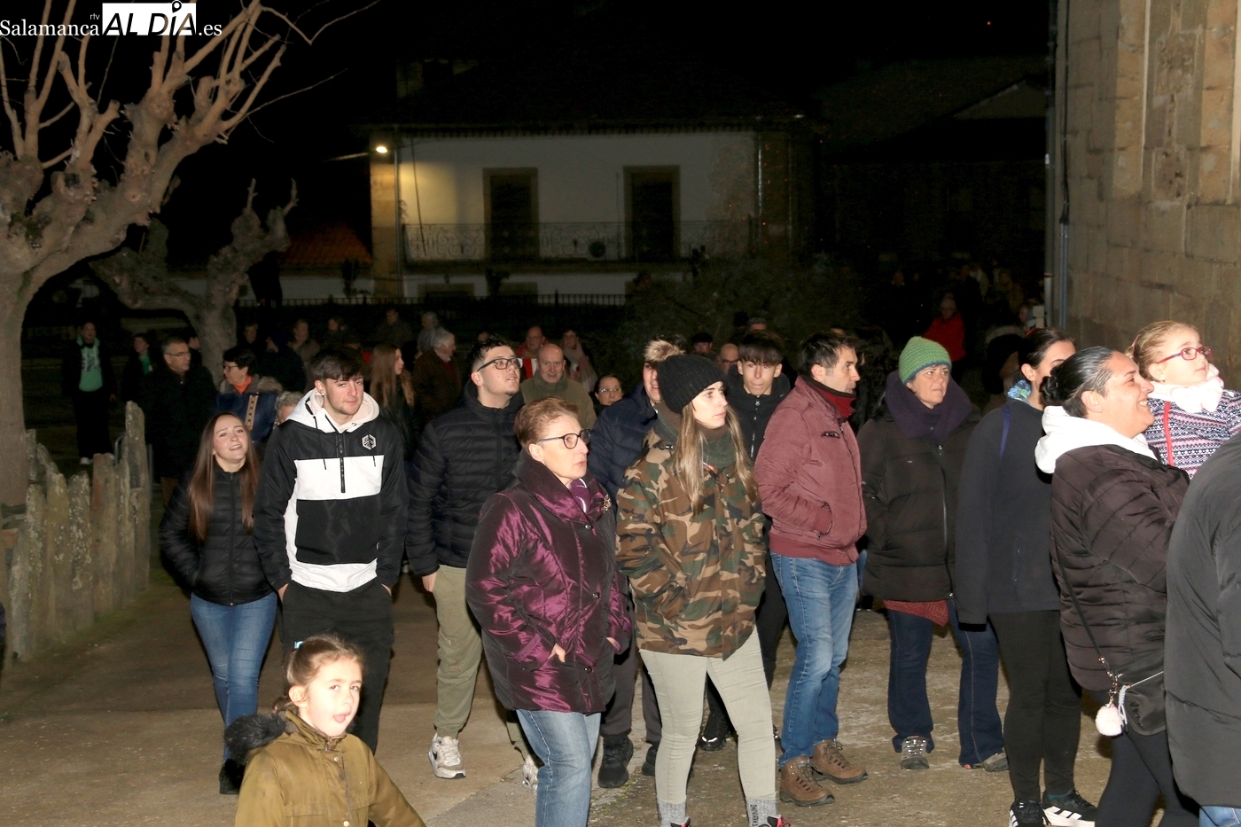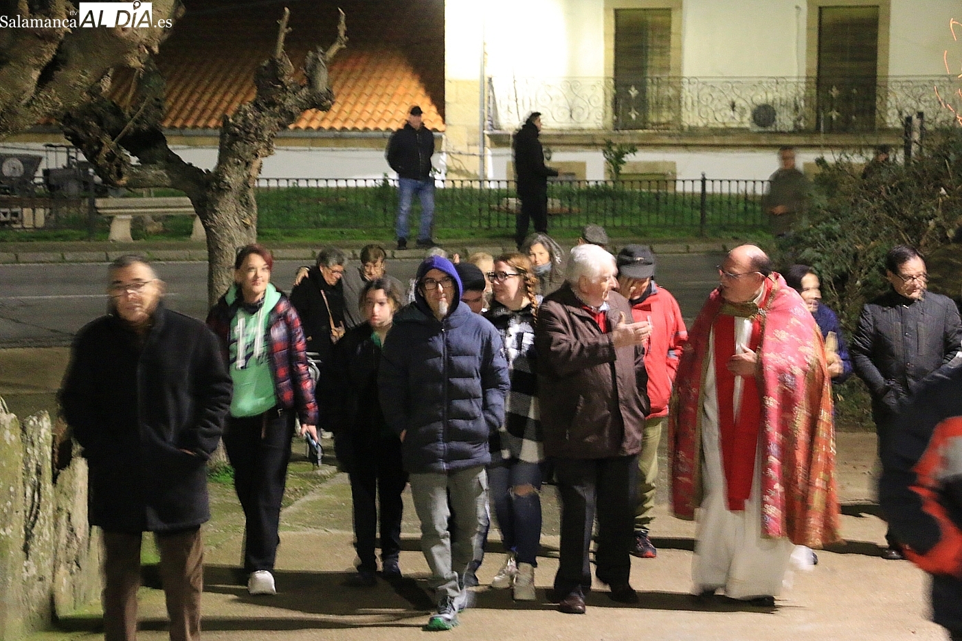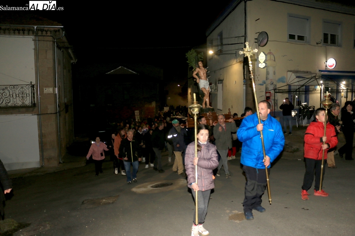 Los actos comenzaron al anocher con la celebración de la palabra en la iglesia parroquial a cargo del exalcalde Bernardo García. Posteriormente, la gran imagen del Santo fue sacada en procesión, portada a hombros por vecinos de todas las edades y arropada por gran parte del pueblo.