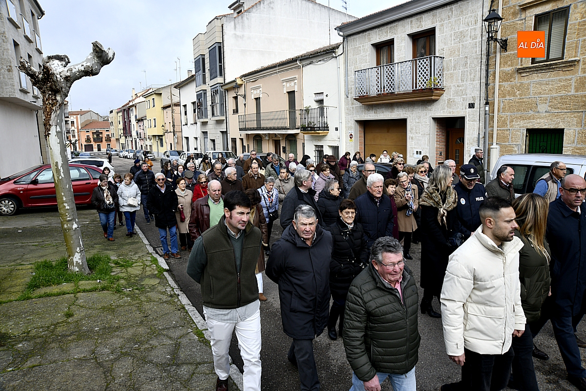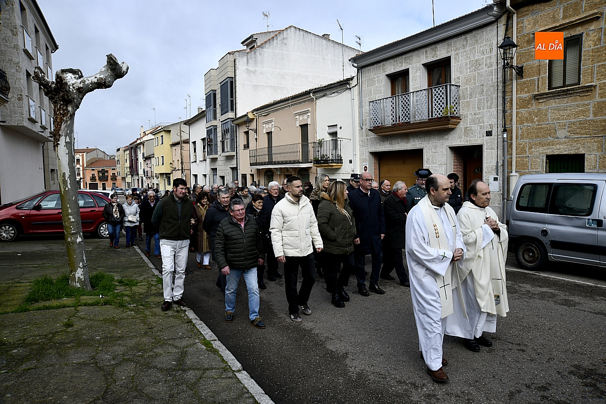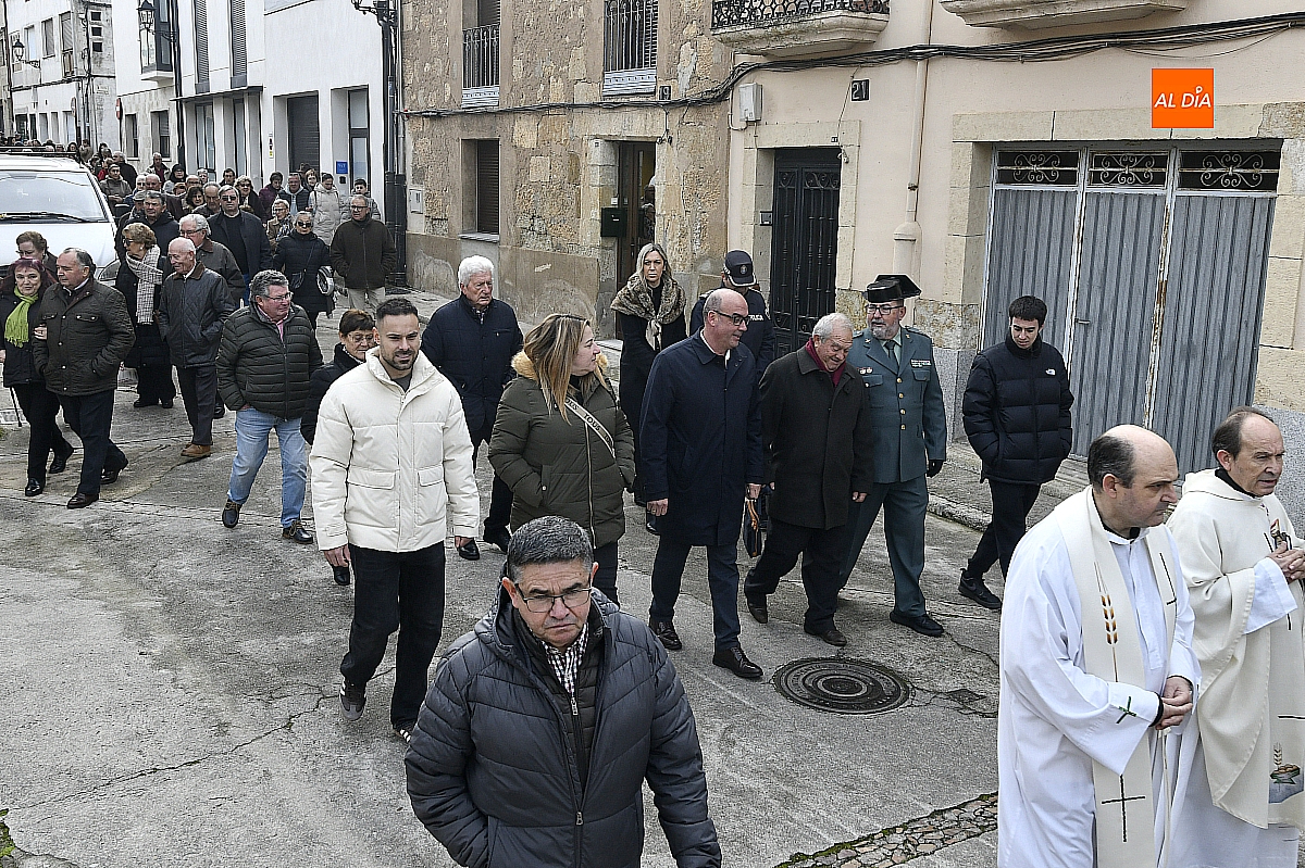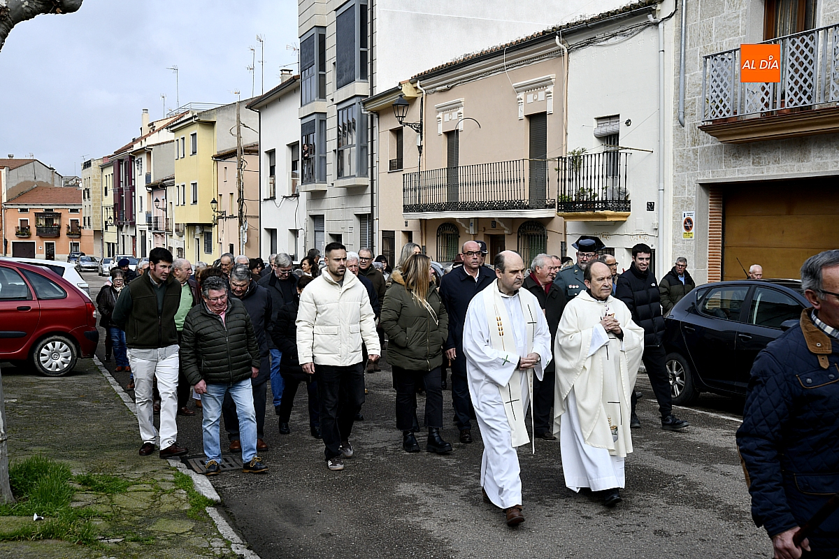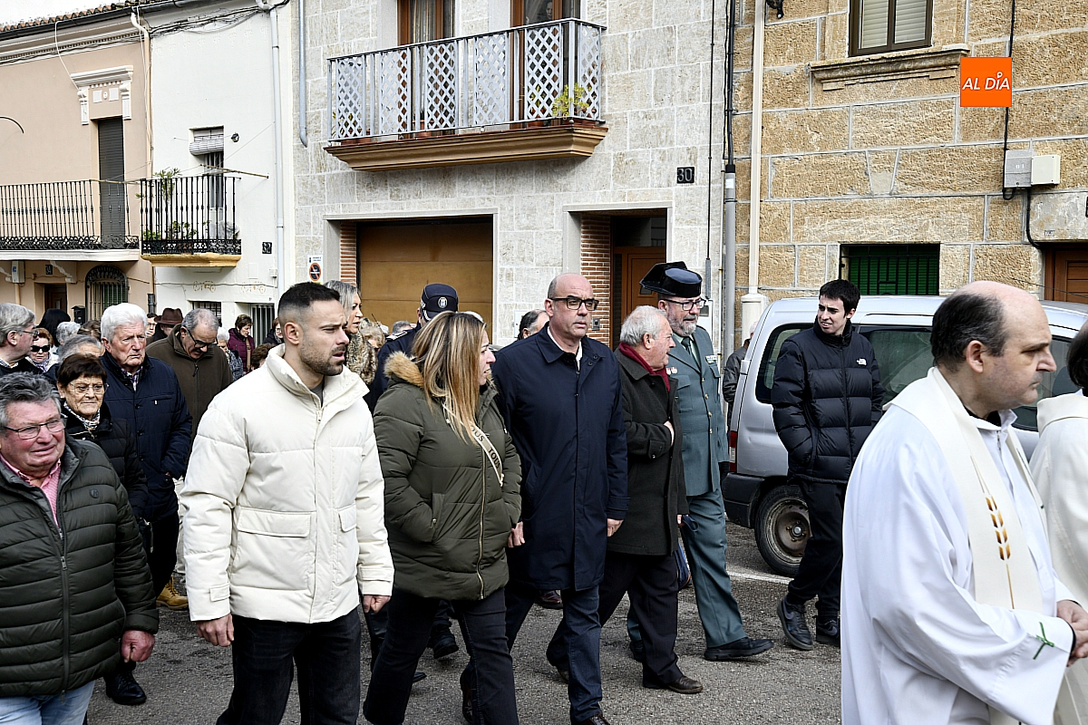A continuación acompachando al santo en esta procesión marchaban el párroco Tomás Muñoz, acompañado por otro sacerdote, así como representación política del Ayuntamiento, con la presencia del teniente de alcalde Ramón Sastre y los concejales Ana María Castaño, Víctor Gómez y José Manuel Jerez, por el Partido Popular, y María del Carmen Lorenzo, por el PSOE. También han participado representantes de las fuerzas de seguridad, con presencia de la Policía Local, Narciso Caridad y de la Guardia Civil, el capitán Pablo Gatell Ruiz de Godrdejuela, además de numerosos vecinos que se han sumado a la celebración o han seguido el paso de la procesión desde balcones y puertas.