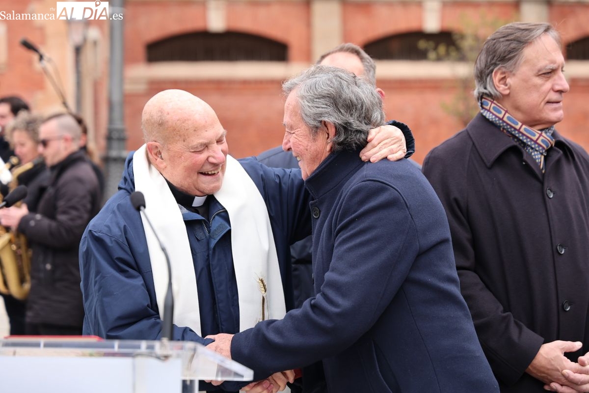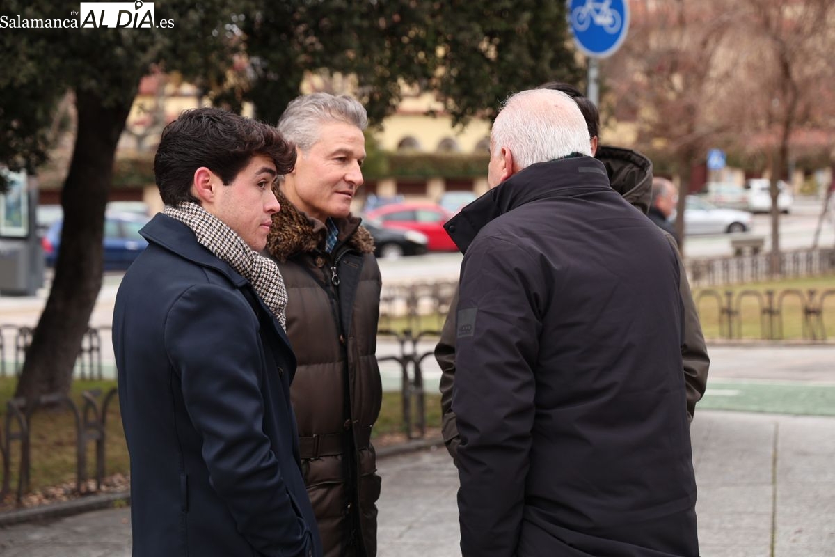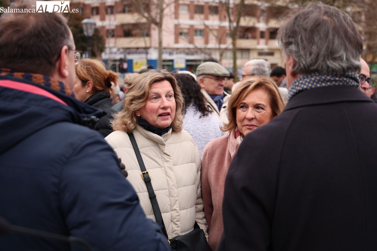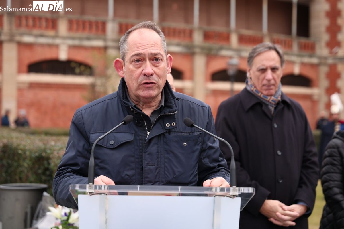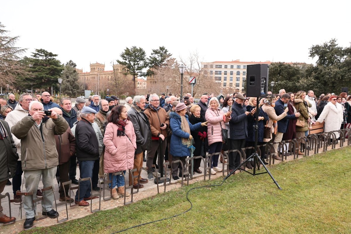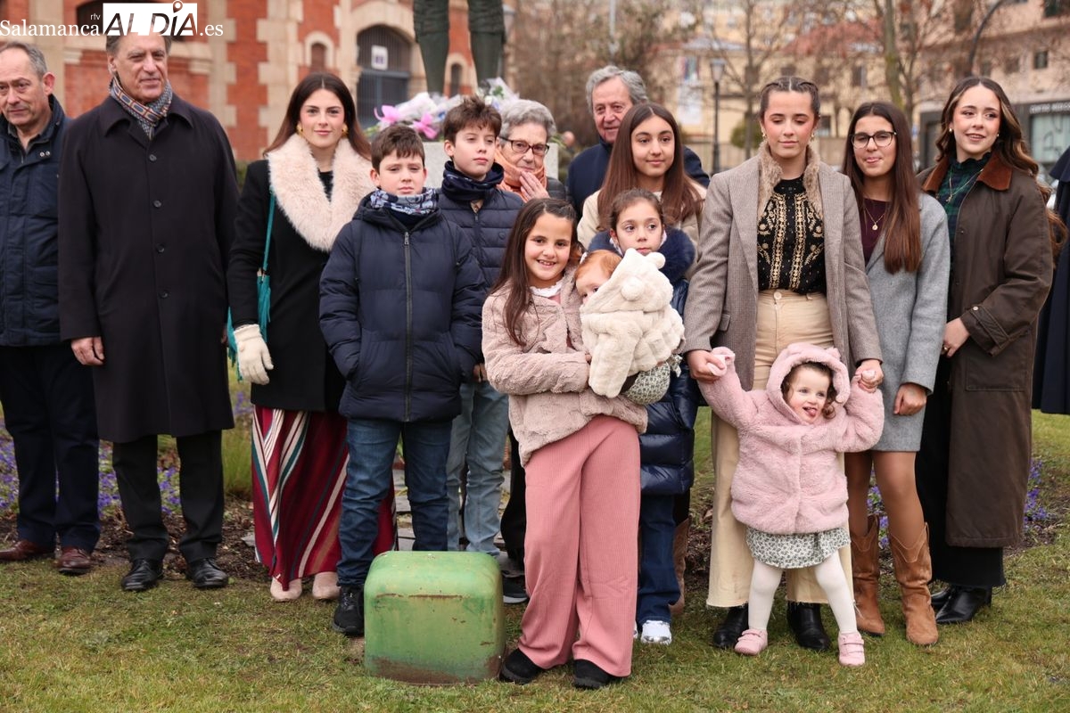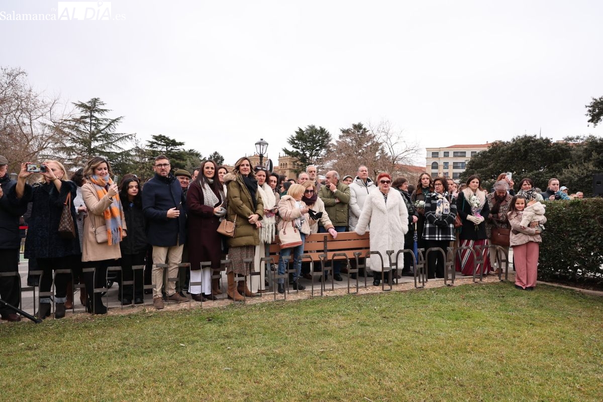 Tras la intervención musical, ha tomado la palabra el presidente de la Federación de Peñas Taurinas de Salamanca, Jorge Lurueña. Acto seguido, y acompañado por el alcalde de Salamanca, Carlos García Carbayo, y los familiares de Julio Robles, se ha procedido a depositar un centro de flores a los pies de la escultura.