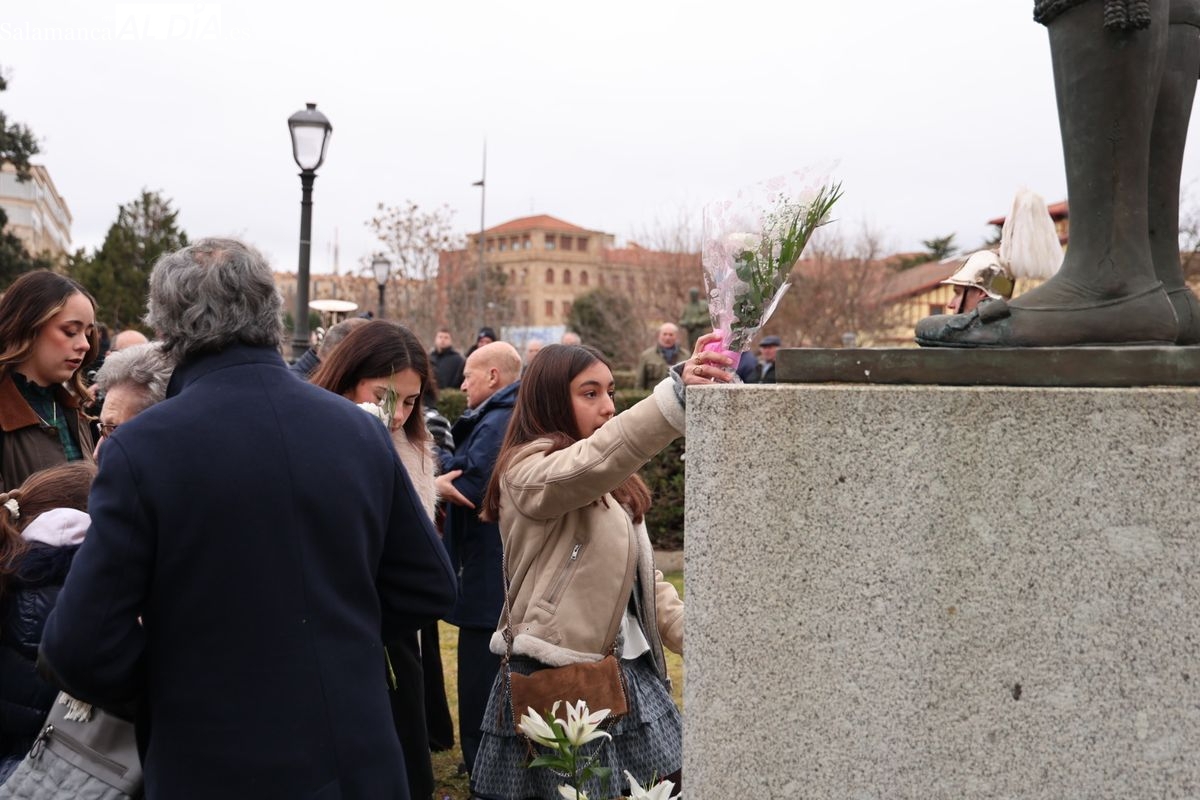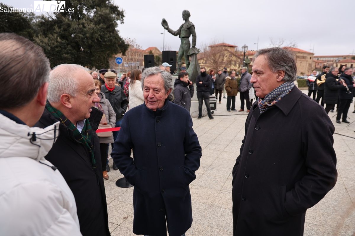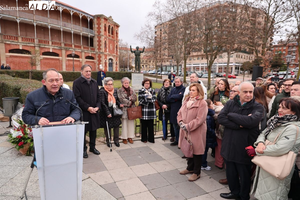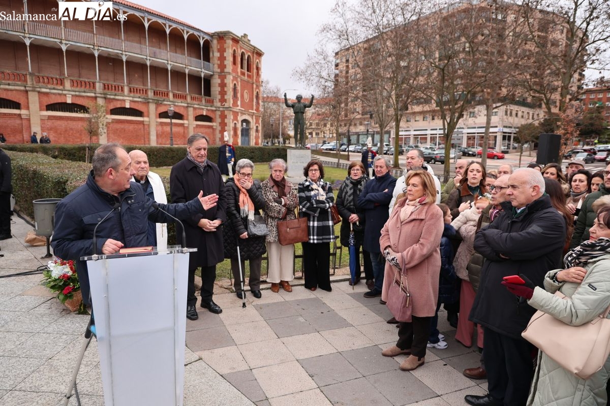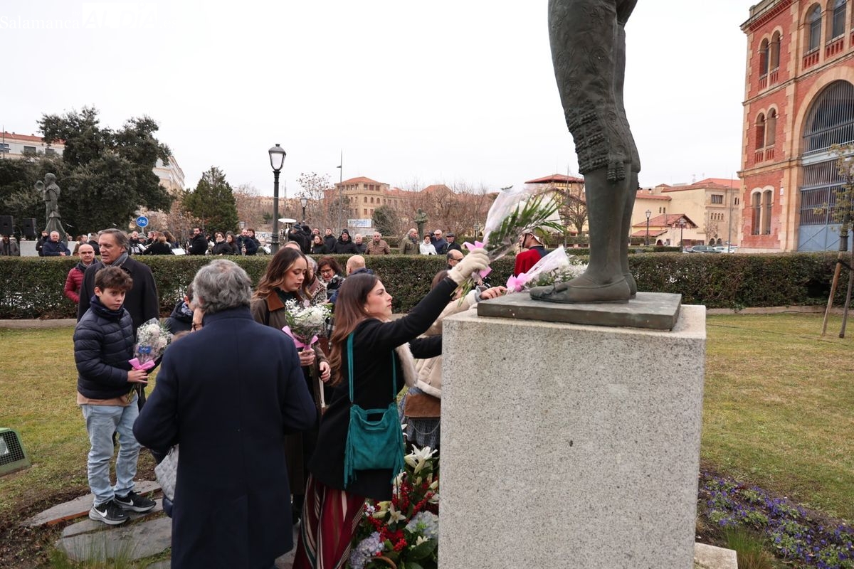 El homenaje, organizado conjuntamente por el Ayuntamiento de Salamanca y la Federación de Peñas Taurinas 'Helmántica', ha reunido a alrededor de 200 personas junto a la estatua que perpetúa la memoria del diestro, obra del artista Salvador Amaya, situada frente al coso charro y próxima a las de Pedro Gutiérrez Moya ‘El Niño de la Capea’ y Santiago Martín ‘El Viti’.