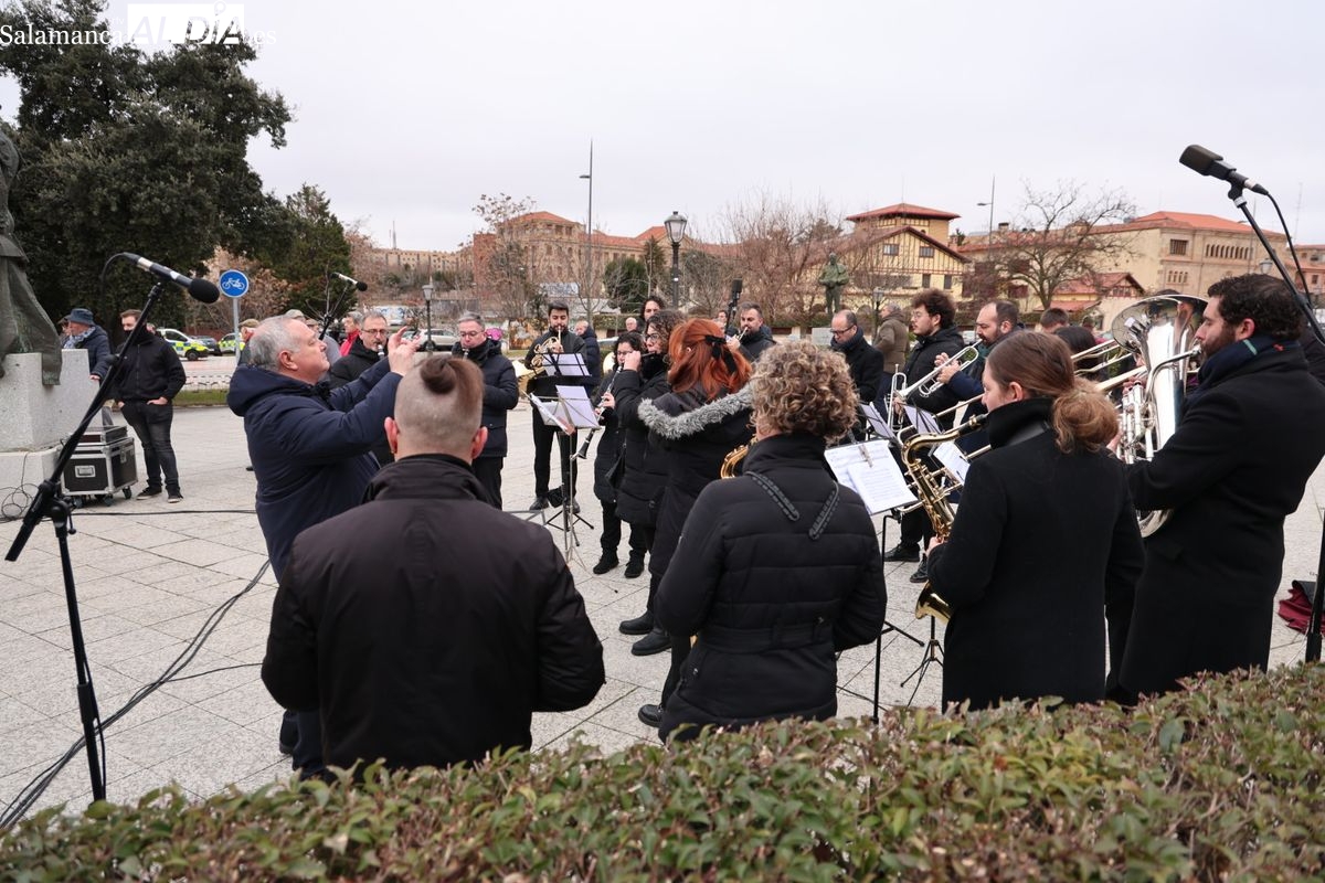 En ese instante de máximo recogimiento, la Banda ha interpretado ‘El arte en el cielo’, una balada para trompeta dedicada expresamente a Julio Robles y compuesta por Manuel Rico Gómez. El homenaje ha concluido con los acordes del himno popular ‘Mi Salamanca’, de Rafael Farina, Luis Gómez y Manuel Pinto.