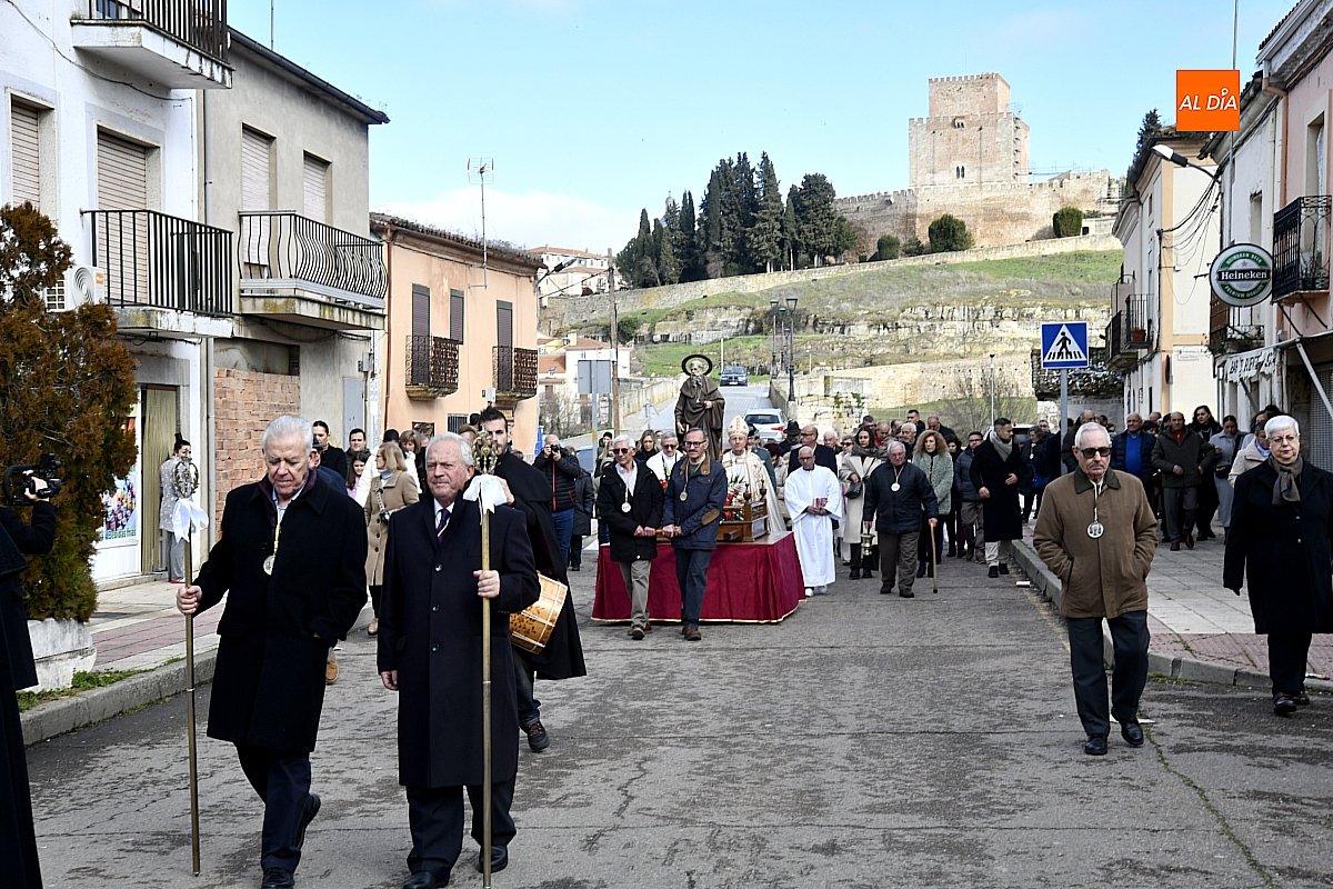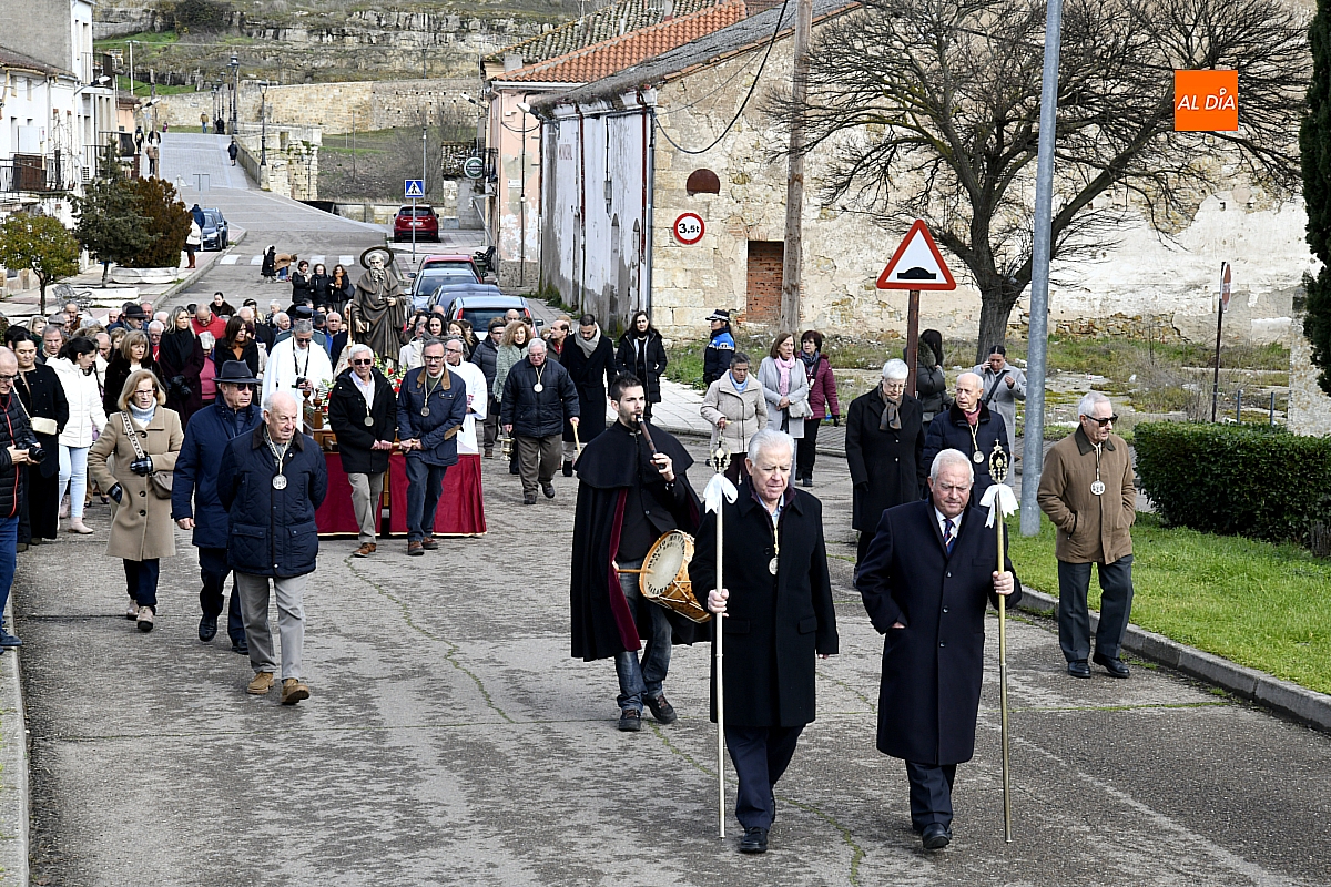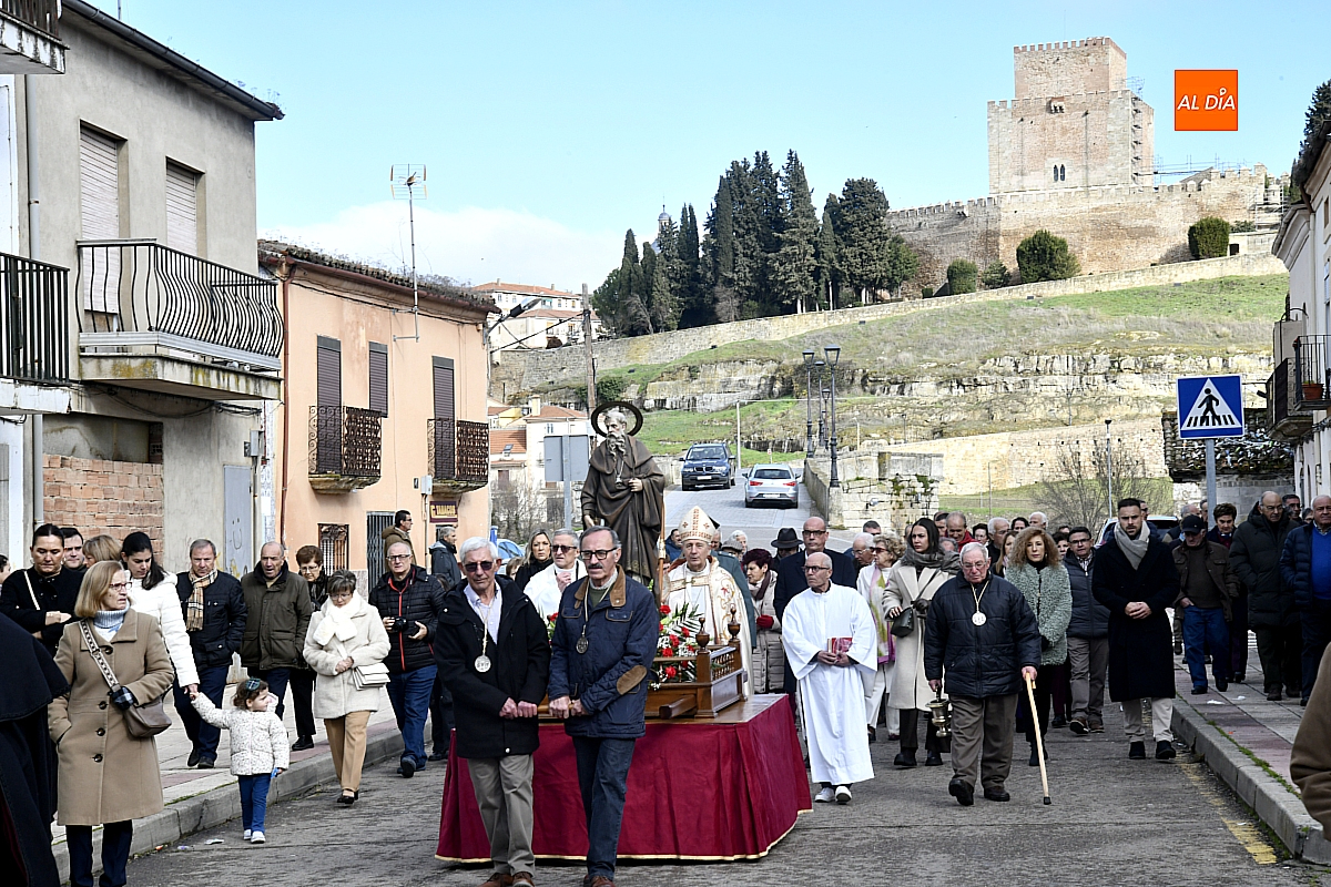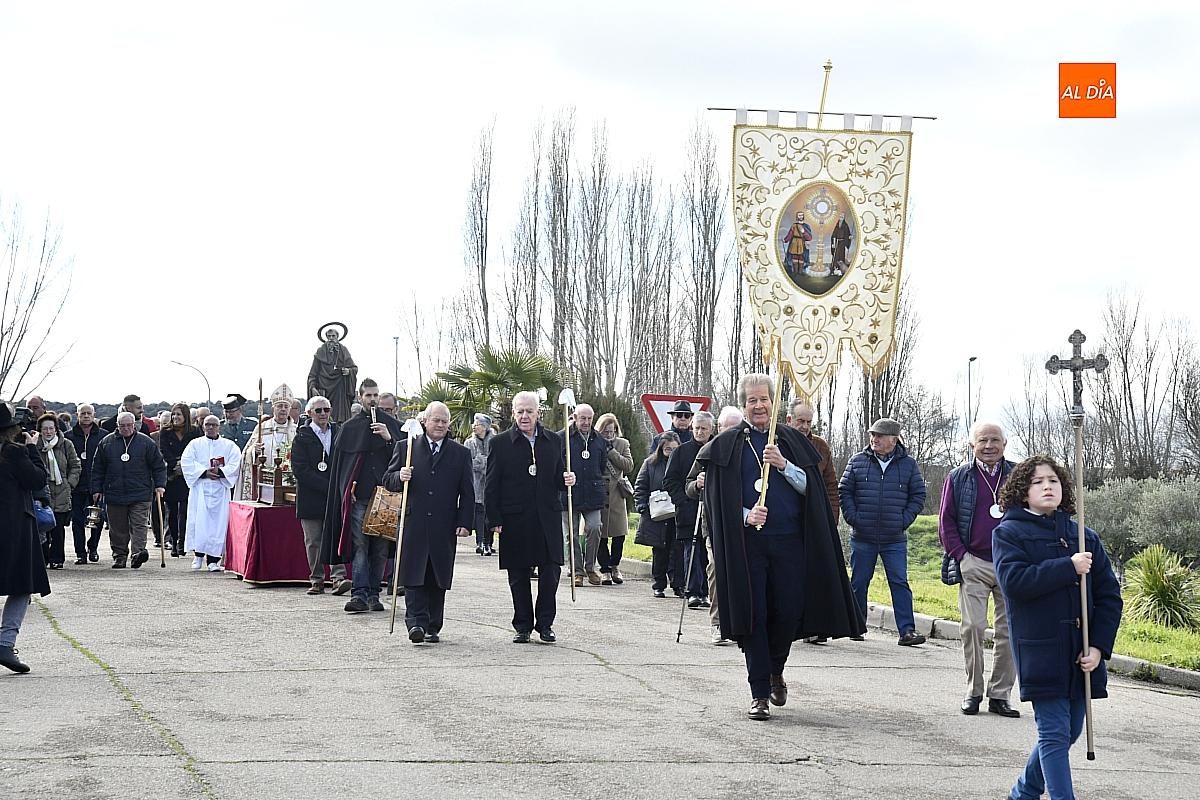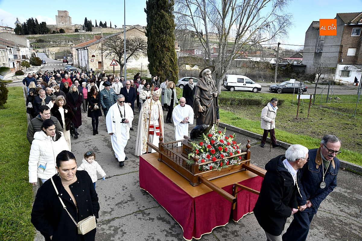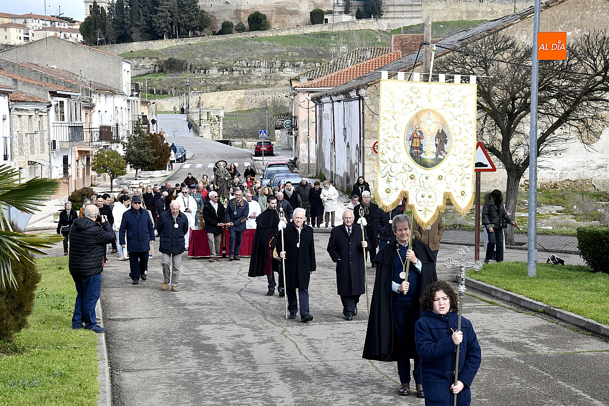 La eucaristía ha contado con la participación de los mayordomos de este año, Cristóbal López y José Manuel Jerez, así como de diversas autoridades locales y militares que han querido acompañar a los vecinos en su día grande. Tras la misa, la comitiva ha iniciado la procesión con la imagen del Santo recorriendo las calles del Arrabal del Puente, cuyo estado de conservación en cuanto a viviendas se refiere muestra signos visibles de deterioro y envejecimiento.