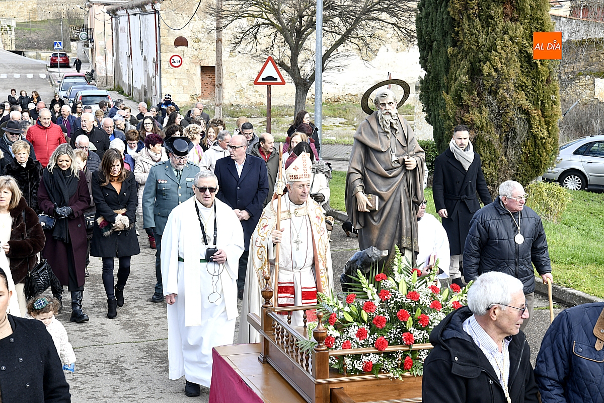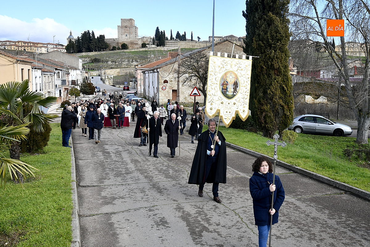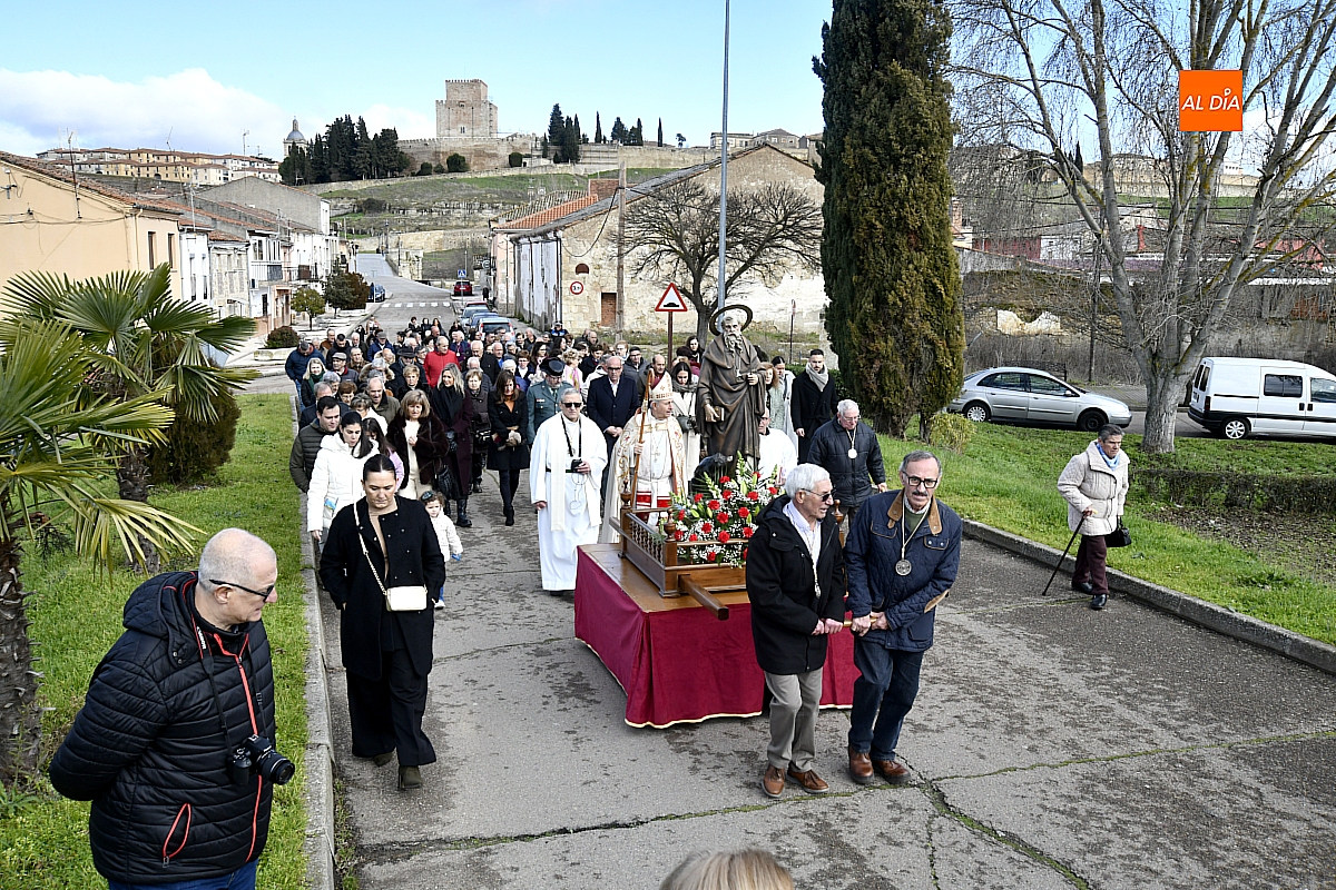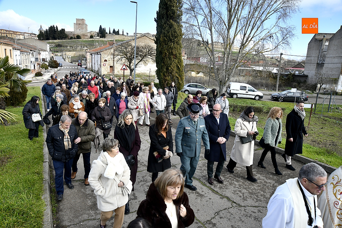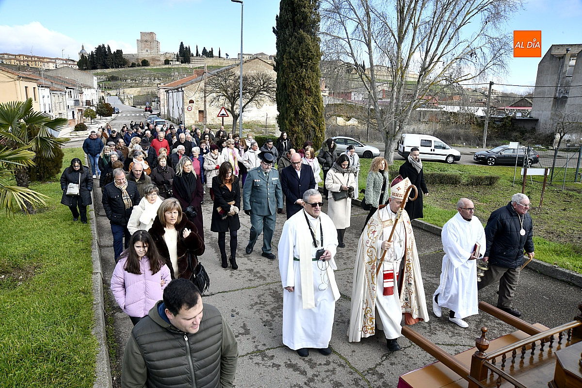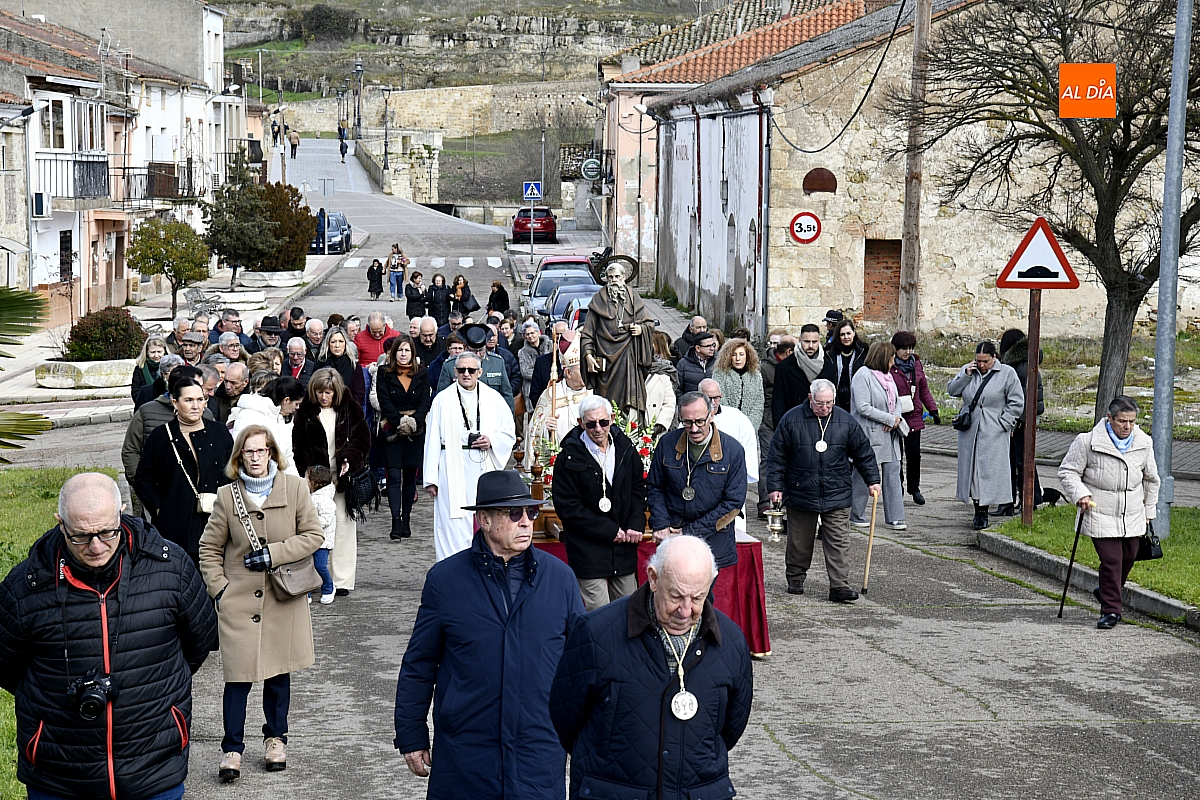La eucaristía ha contado con la participación de los mayordomos de este año, Cristóbal López y José Manuel Jerez, así como de diversas autoridades locales y militares que han querido acompañar a los vecinos en su día grande. Tras la misa, la comitiva ha iniciado la procesión con la imagen del Santo recorriendo las calles del Arrabal del Puente, cuyo estado de conservación en cuanto a viviendas se refiere muestra signos visibles de deterioro y envejecimiento.