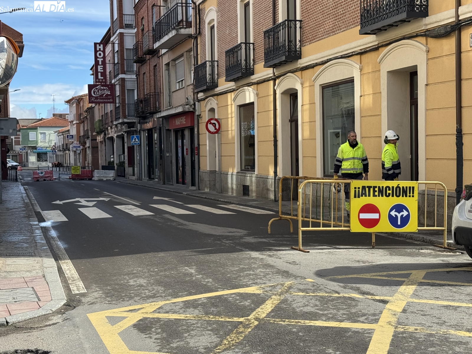 Poco antes de las diez de la mañana, tras la instalación de las casetas y la llegada de la maquinaria, han comenzado los trabajos de reforma, con la eliminación del primer tramo del pequeño acerado situado junto al cruce con el Teatro Calderón. Una excavadora y un gran dúmper han iniciado los trabajos, mientras los operarios han comenzado a situar en la zona las nuevas canalizaciones que se instalarán con la obra.