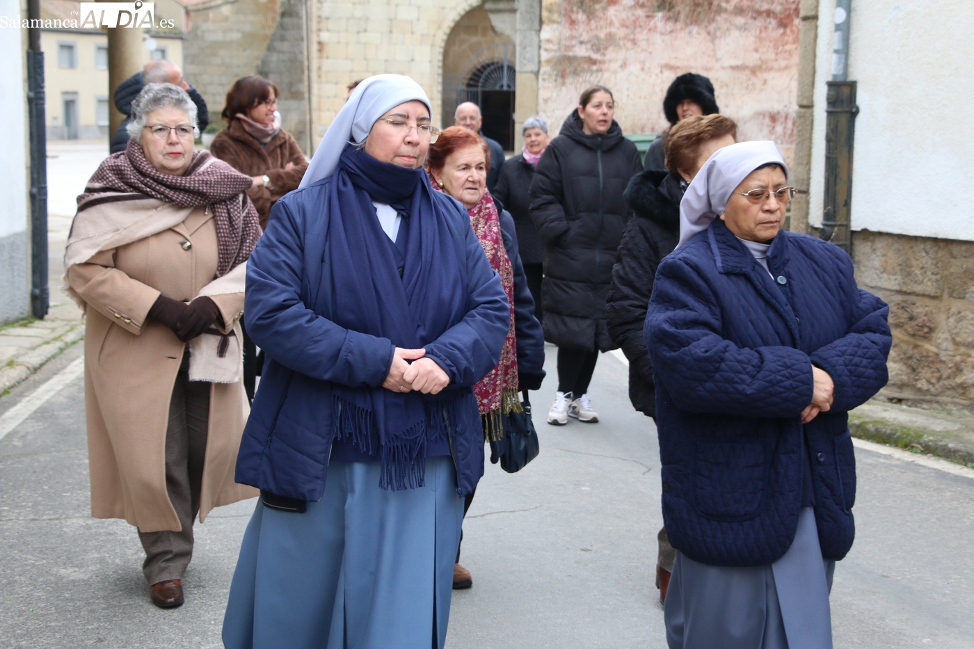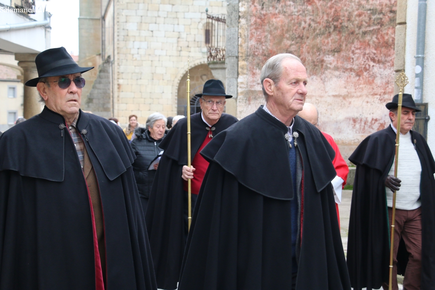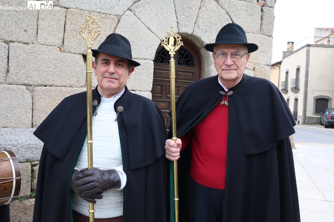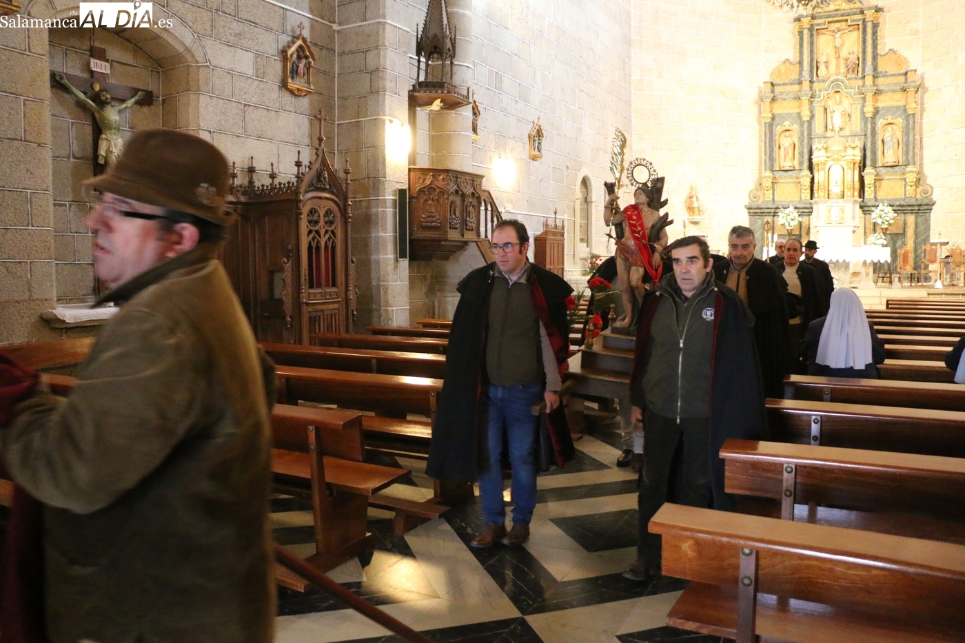 Los actos centrales han comenzado pasadas las 12:00 horas. Antes de la celebración eucarística, la comitiva ha acompañado a la imagen del Santo en procesión por las calles de Villavieja de Yeltes. El recorrido ha estado encabezado por los mayordomos de este último año, Francisco Hernández Hernández y Antonio García Paulos, quienes han portado las varas de mando.