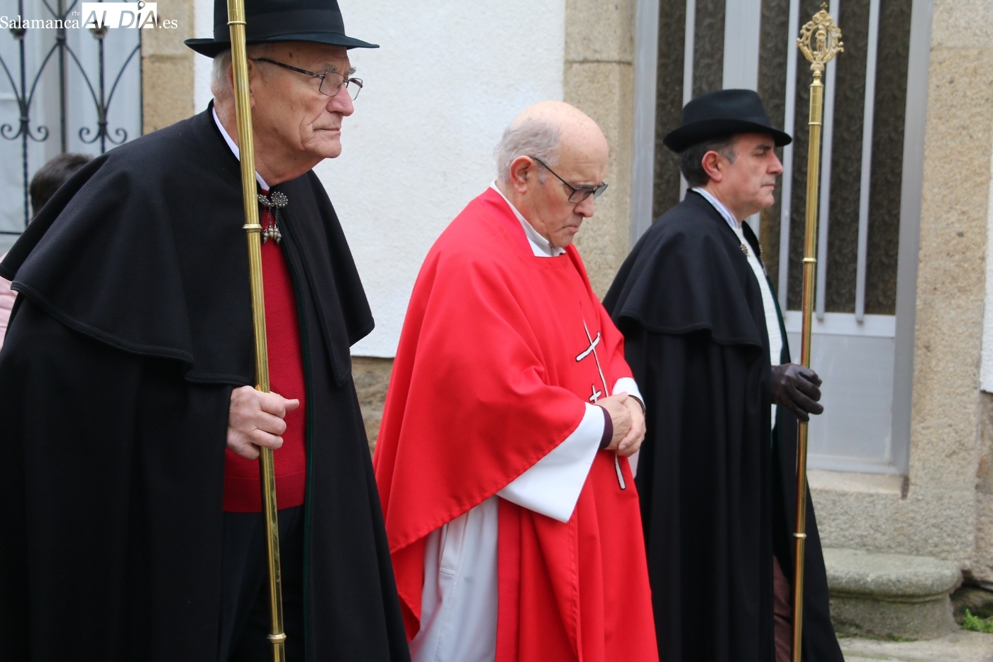 Esta hermandad, que fue fundada en el año 1812 y cuenta actualmente con una veintena de miembros, ha vuelto a teñir de luto y respeto las calles del municipio. Los cofrades han lucido sus características capas negras y sombreros de media ala, un distintivo histórico que dota a esta celebración de una identidad visual única en la provincia de Salamanca.