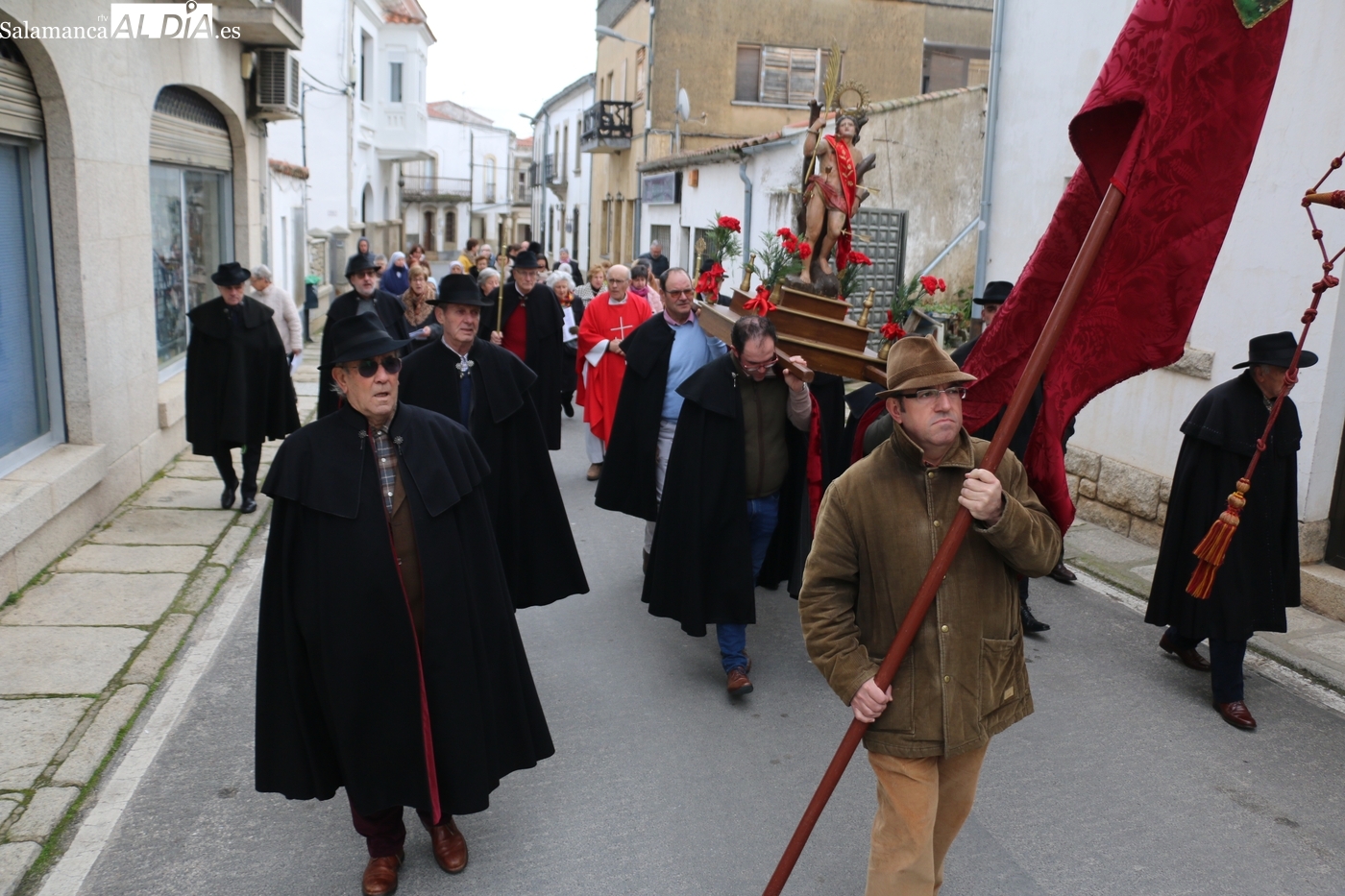 La tradición se ha impuesto una vez más en la comarca del Yeltes. Los integrantes de la Cofradía de 'Nuestro Glorioso Santo San Sebastián' han cumplido fielmente con los ritos que marcan la festividad de su patrón, manteniendo vivo un legado que se remonta a principios del siglo XIX. La jornada ha estado protagonizada por la solemnidad de la indumentaria charra y la gastronomía típica de estas fechas.