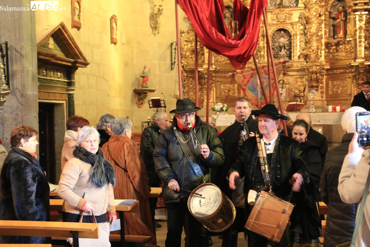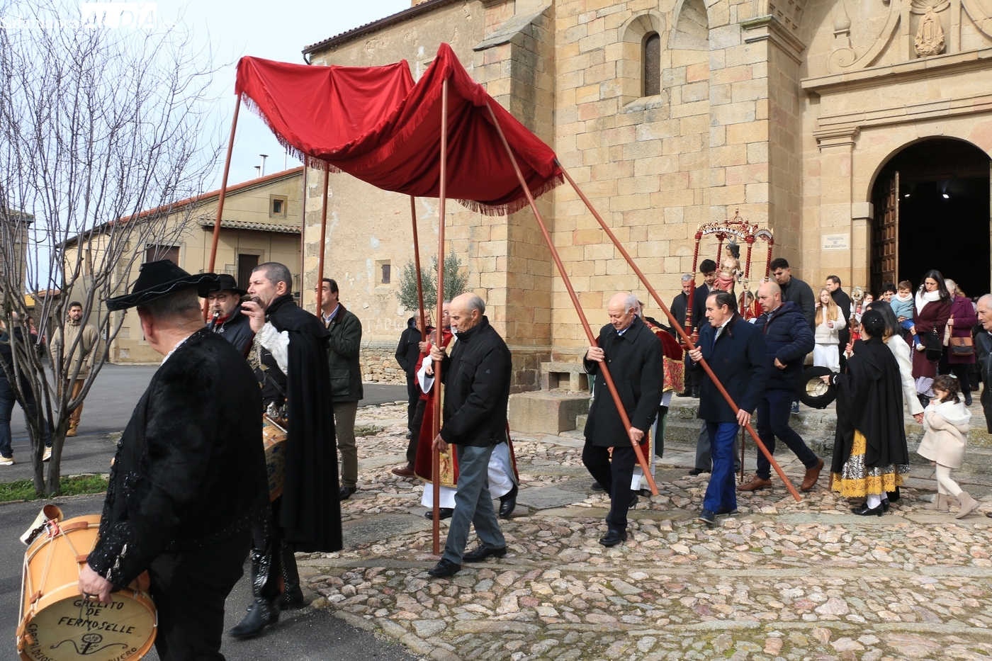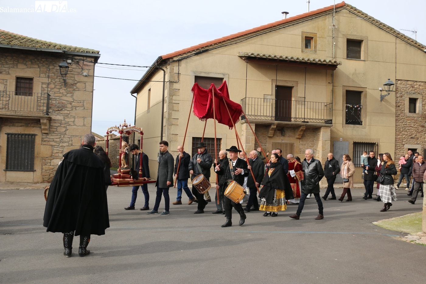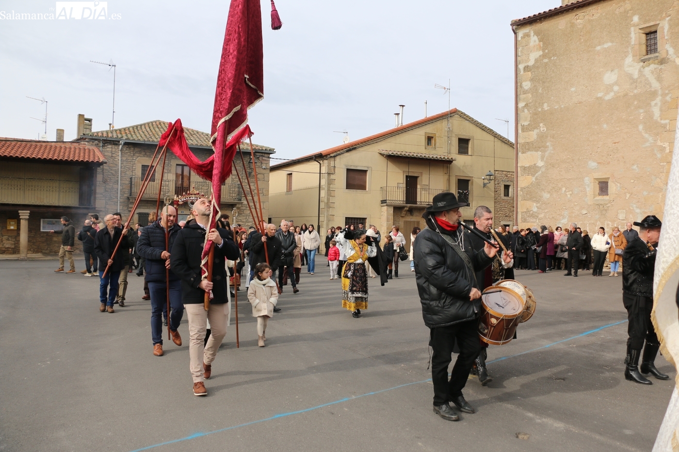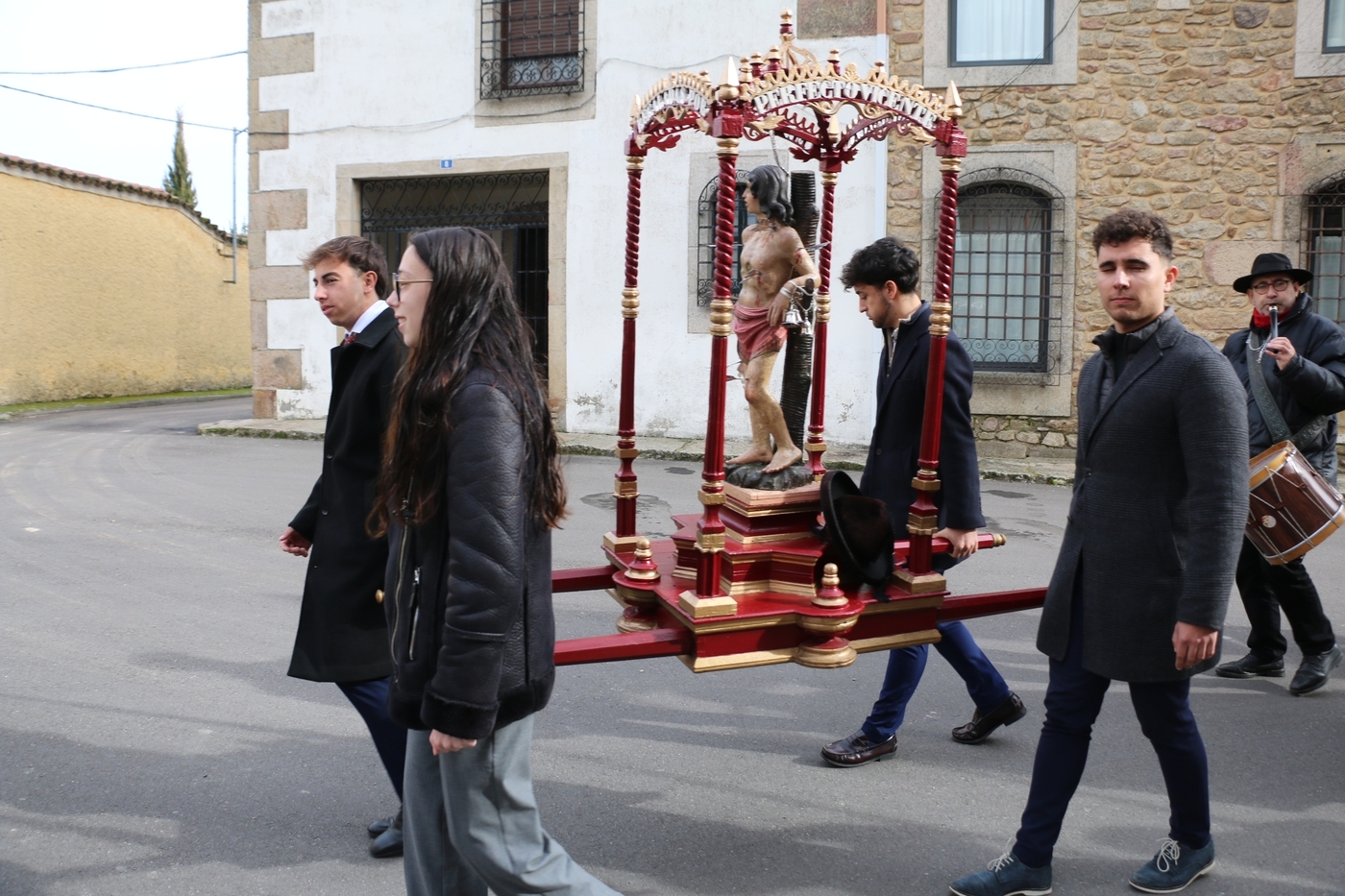 Tras la misa, se ha llevado a cabo la procesión con la imagen de San Sebastián alrededor de la iglesia parroquial y el posterior ofertorio. Todo ello ha estado amenizado por los sones de la gaita y el tamboril de El Mariquelo, quien junto a su grupo de charros ha puesto la nota musical tanto en los actos religiosos como en el posterior convite celebrado en el edificio de usos múltiples.