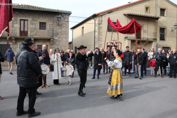 Tras la misa, se ha llevado a cabo la procesión con la imagen de San Sebastián alrededor de la iglesia parroquial y el posterior ofertorio. Todo ello ha estado amenizado por los sones de la gaita y el tamboril de El Mariquelo, quien junto a su grupo de charros ha puesto la nota musical tanto en los actos religiosos como en el posterior convite celebrado en el edificio de usos múltiples.