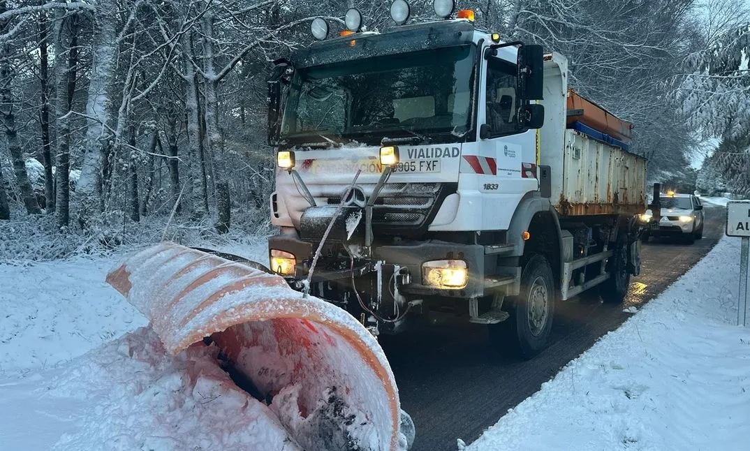 La meteorología adversa también está golpeando con fuerza las zonas de montaña de la provincia, donde la nieve ha obligado a cortar vías o a imponer el uso obligatorio de cadenas.