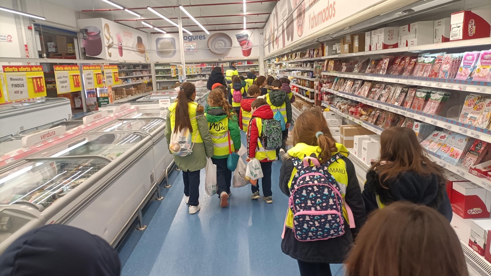 En el pabellón de frutas y hortalizas, la actividad adquirió un carácter analítico, ya que los escolares examinaron las etiquetas de los productos para verificar su procedencia. La jornada también tuvo un fuerte componente de concienciación sobre la salud; durante el recorrido, cada alumno recibió una bolsa con piezas de fruta, una bandeja de carne e información sobre los beneficios de una dieta sana y variada. Tras visitar el supermercado, los estudiantes finalizaron la experiencia con los obsequios entregados por los trabajadores de MercaSalamanca.