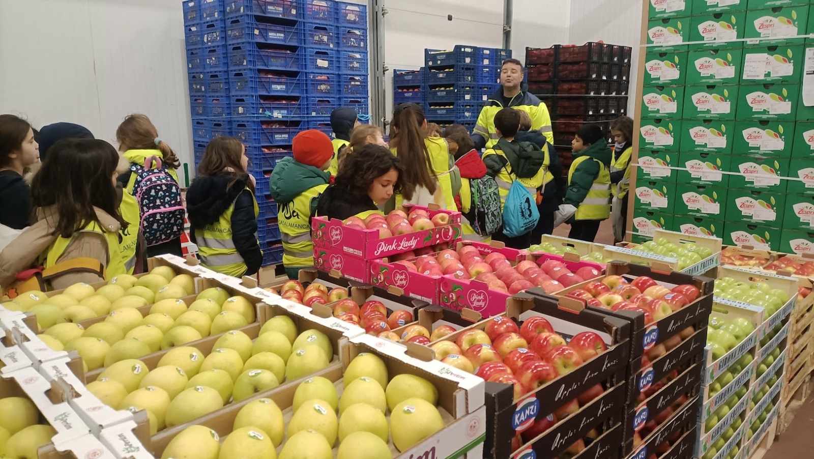 Estudiantes de Primaria del centro educativo salmantino recorren las instalaciones de la unidad alimentaria para comprender la cadena de distribución y la importancia de una dieta saludable