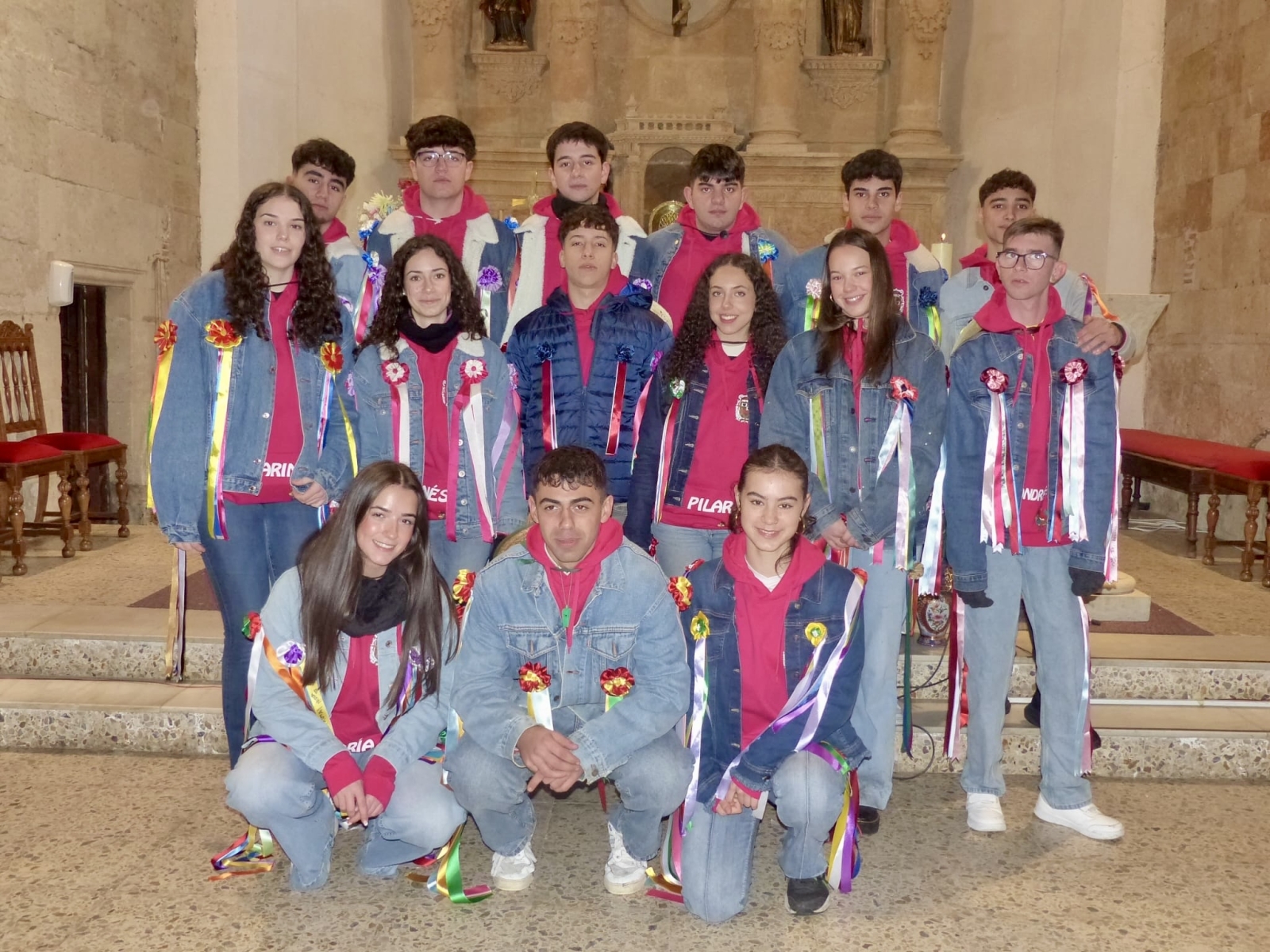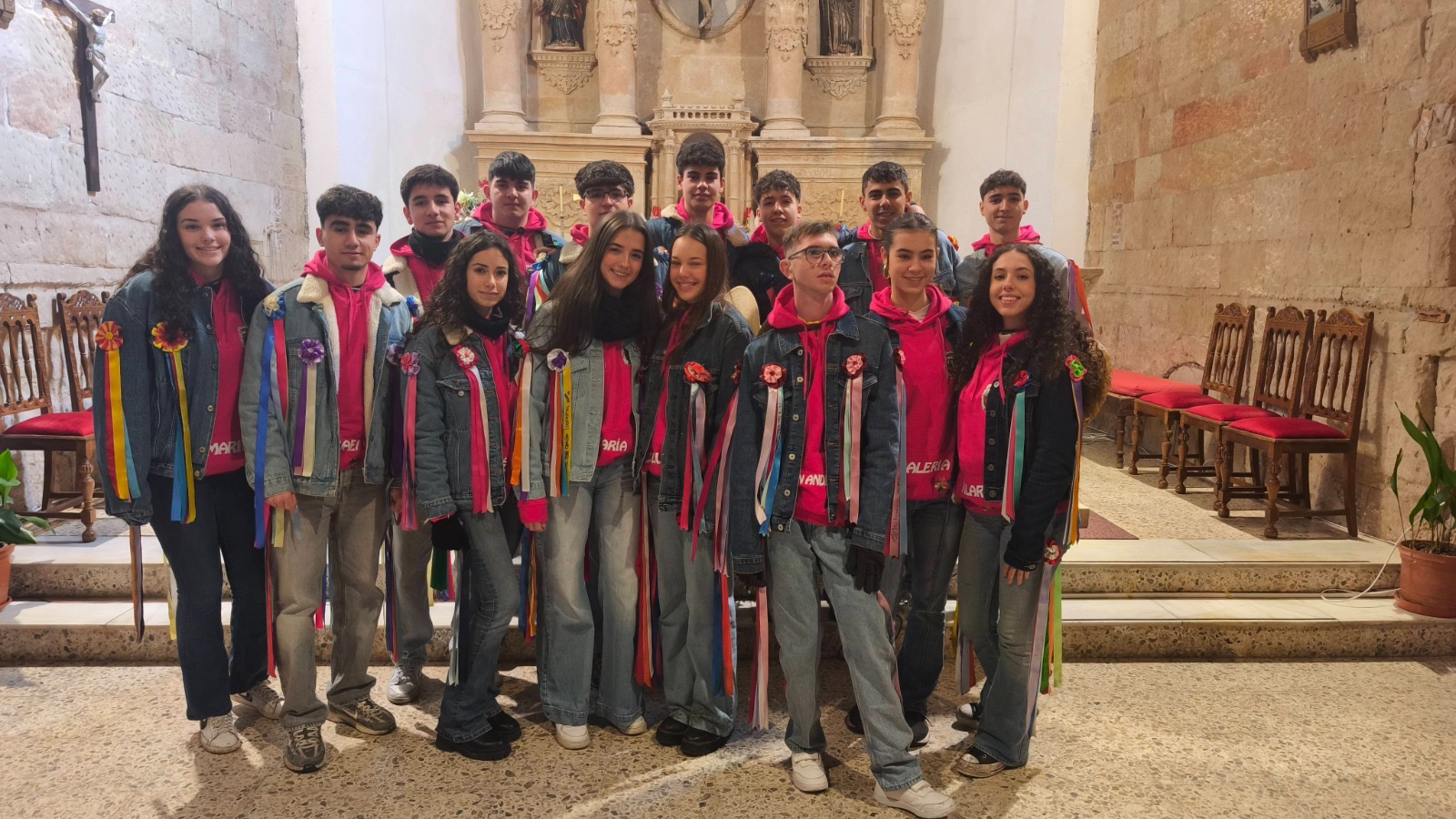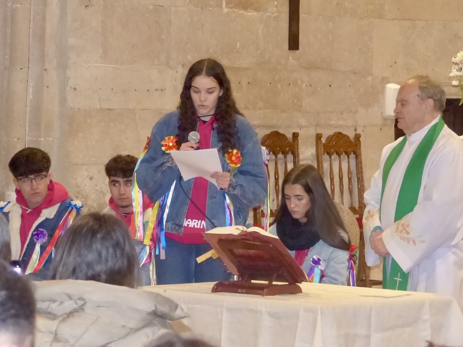 Una intensa jornada que arrancaba de manera oficial a las doce y media de la mañana, en la iglesia parroquial, donde tenía lugar la solemne eucaristía en honor a los Quintos, acto al que además de los protagonistas y sus familias, se sumaban numerosos villorejos.