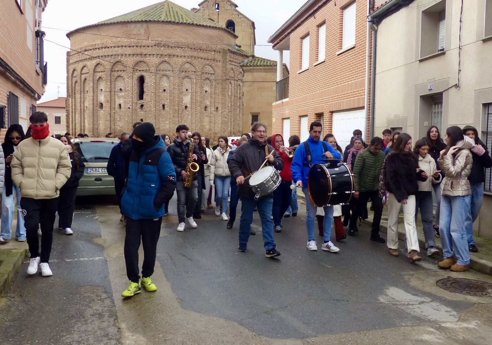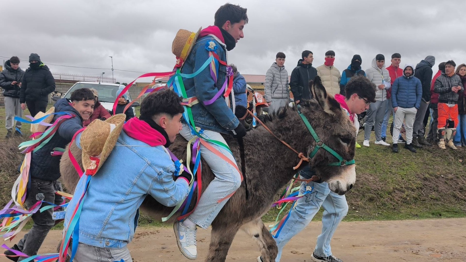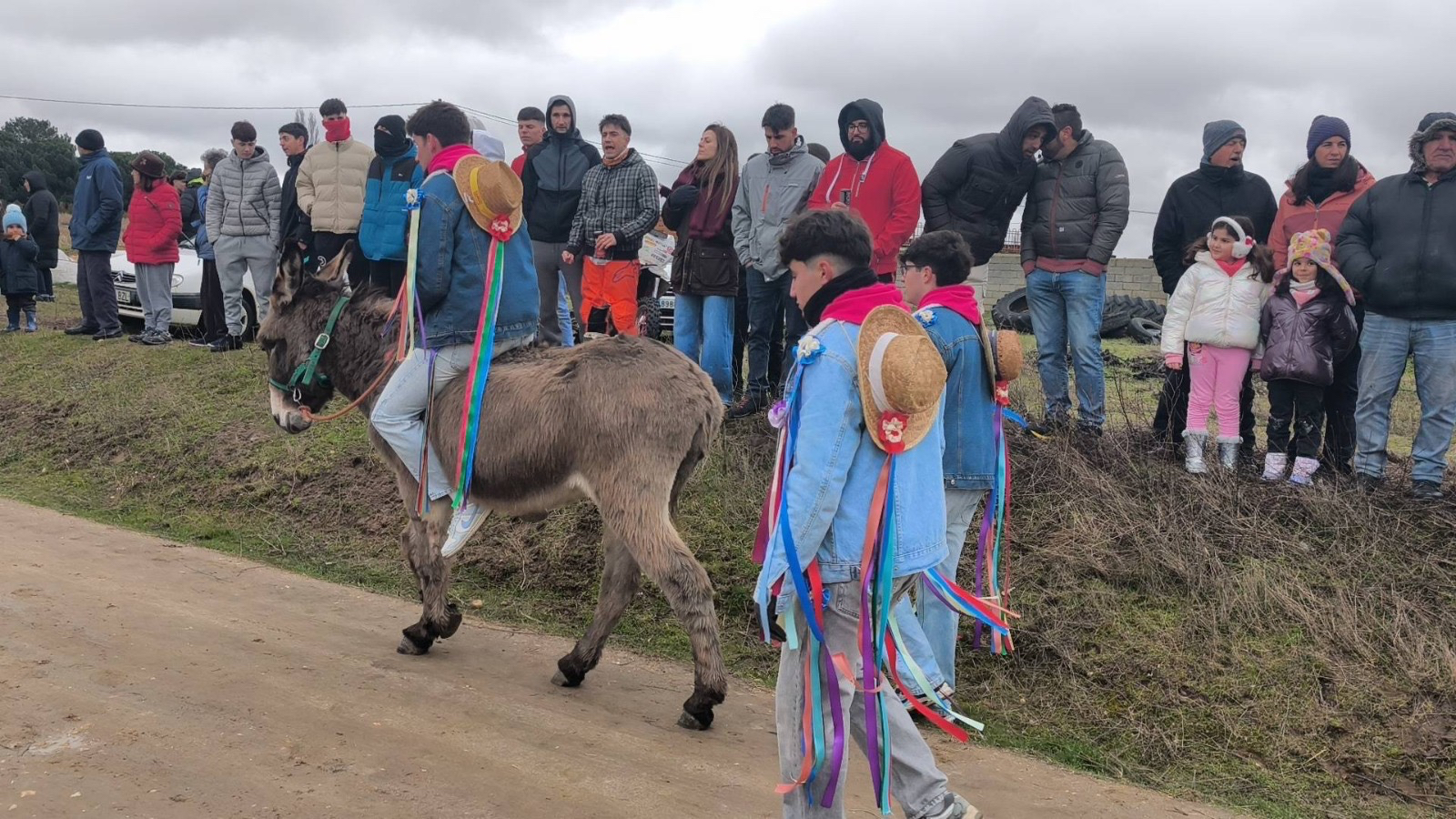 Tras ella, y acompañados por la Charanga 'El Tinglao', comenzaba el recorrido festivo desde la parroquia hasta el camino de San Benito, donde realizaban uno de los actos más tradicionales y esperados como ha sido el correr las cintas, algo que realizaban entre un gran ambiente y no poco frío, algo que no impedía la diversión entre todos los presentes.