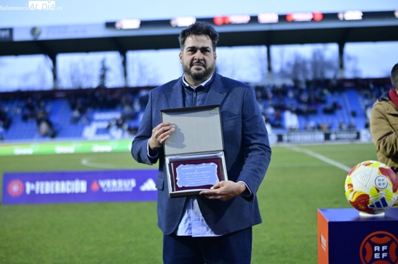 La afición de Unionistas ha mostrado su cariño a Sando en su vuelta al Reina Sofía con un sentido homenaje. El expresidente del club se encuentra ahora en el Talavera, puesto que ostenta el cargo de director general y ha sentido el calor de la gente.