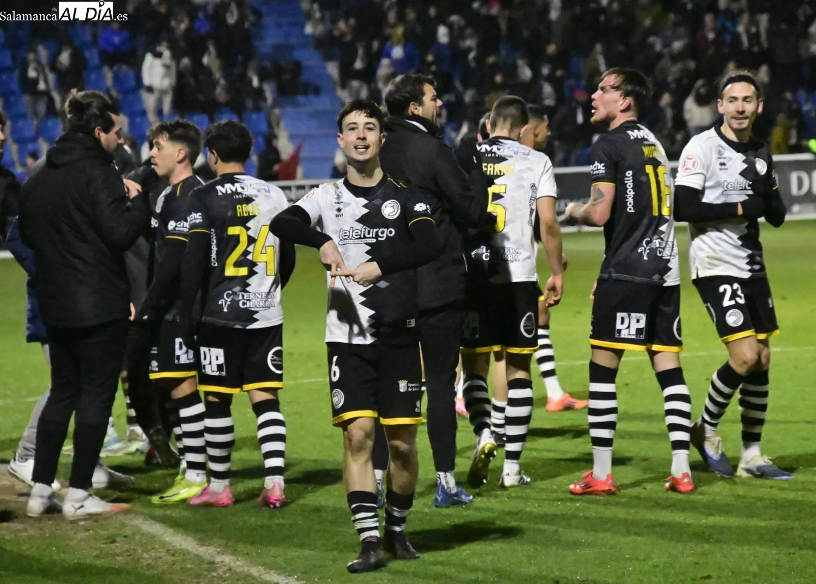 Asimismo, el choque ha comenzado con susto para los charros, dado que Farru ha sacado una ocasión bajo palos que se paseaba por el área pequeña tras un centro de Ferni y la dejada de Di Renzo. Sin embargo, después de la media hora se ha desatacado el huracán blanquinegro con tres goles en menos de 10 minutos.