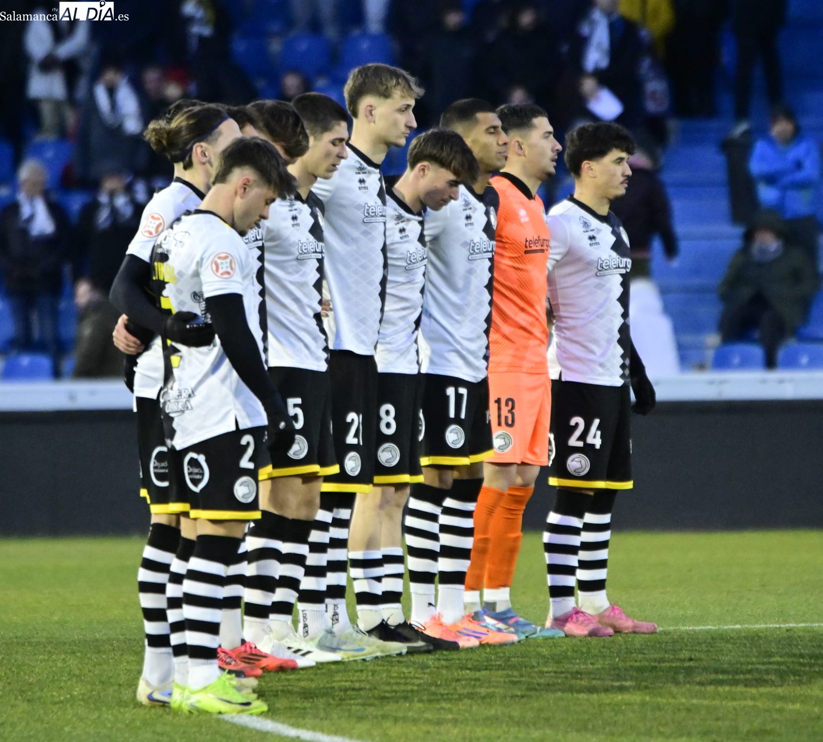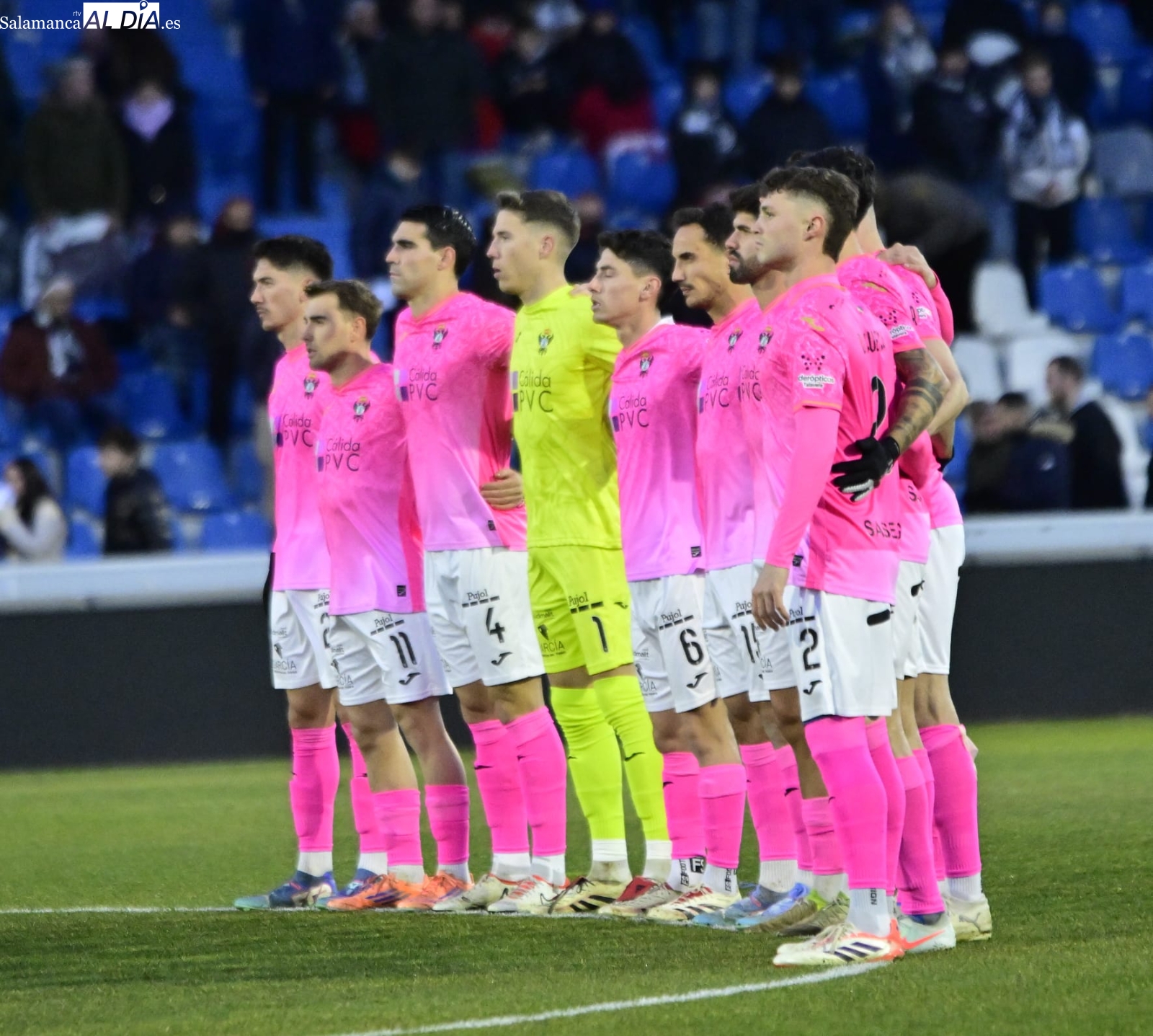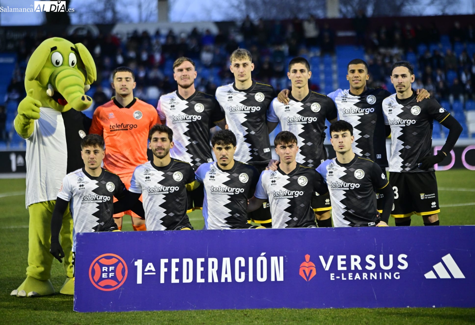 En el once inicial, Mario Simón ha vuelto a confiar en Marco Coronas y el futuro de Unai Marino en el club podría peligrar si se decide firmar a otro meta; en defensa, Vadik ha relevado al sancionado Gorjón -tal y como habíamos avanzado esta semana- y Olmedo, Farru y Mounir han estado junto a él; en el doble pivote, Jota y Juanje; las alas para Álvaro Gómez y Abde, que aún no se sabe si se irá al Zamora en el desenlace del mercado invernal; Piñán ha formado por detrás de Pere Marco. Chibozo, sin licencia aún, baja.