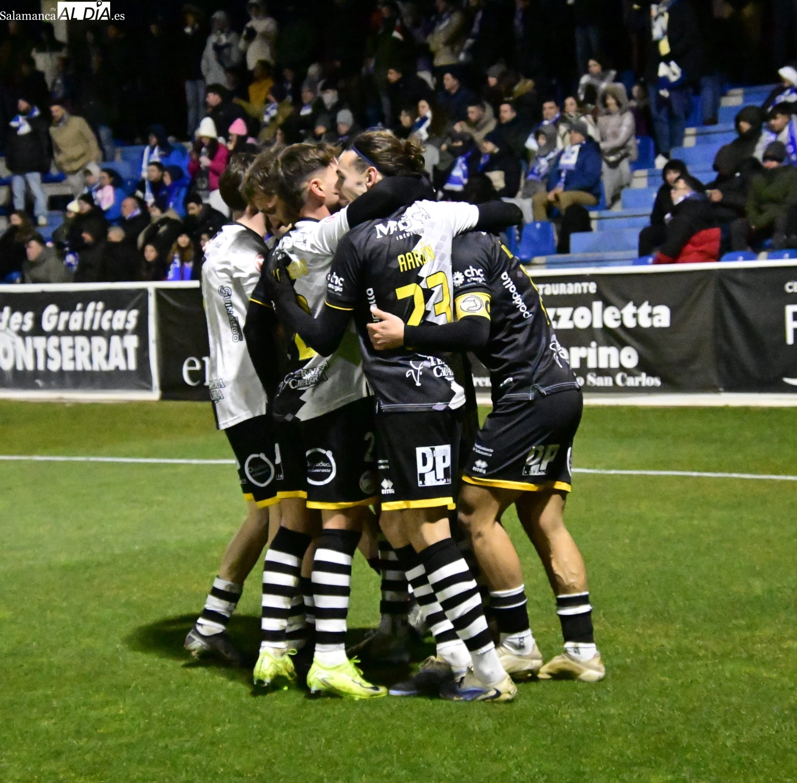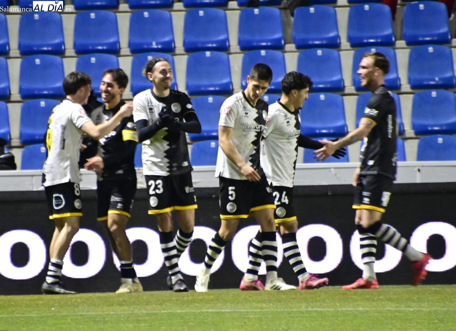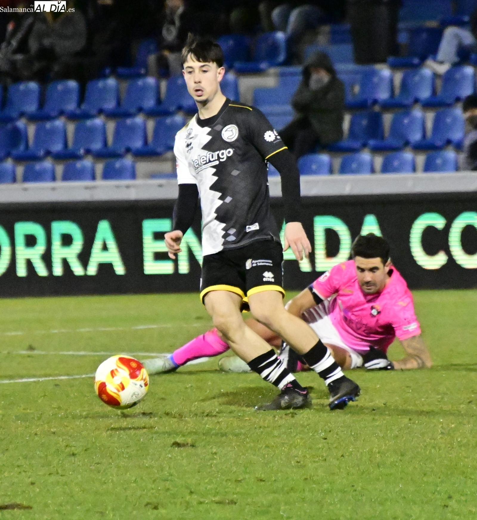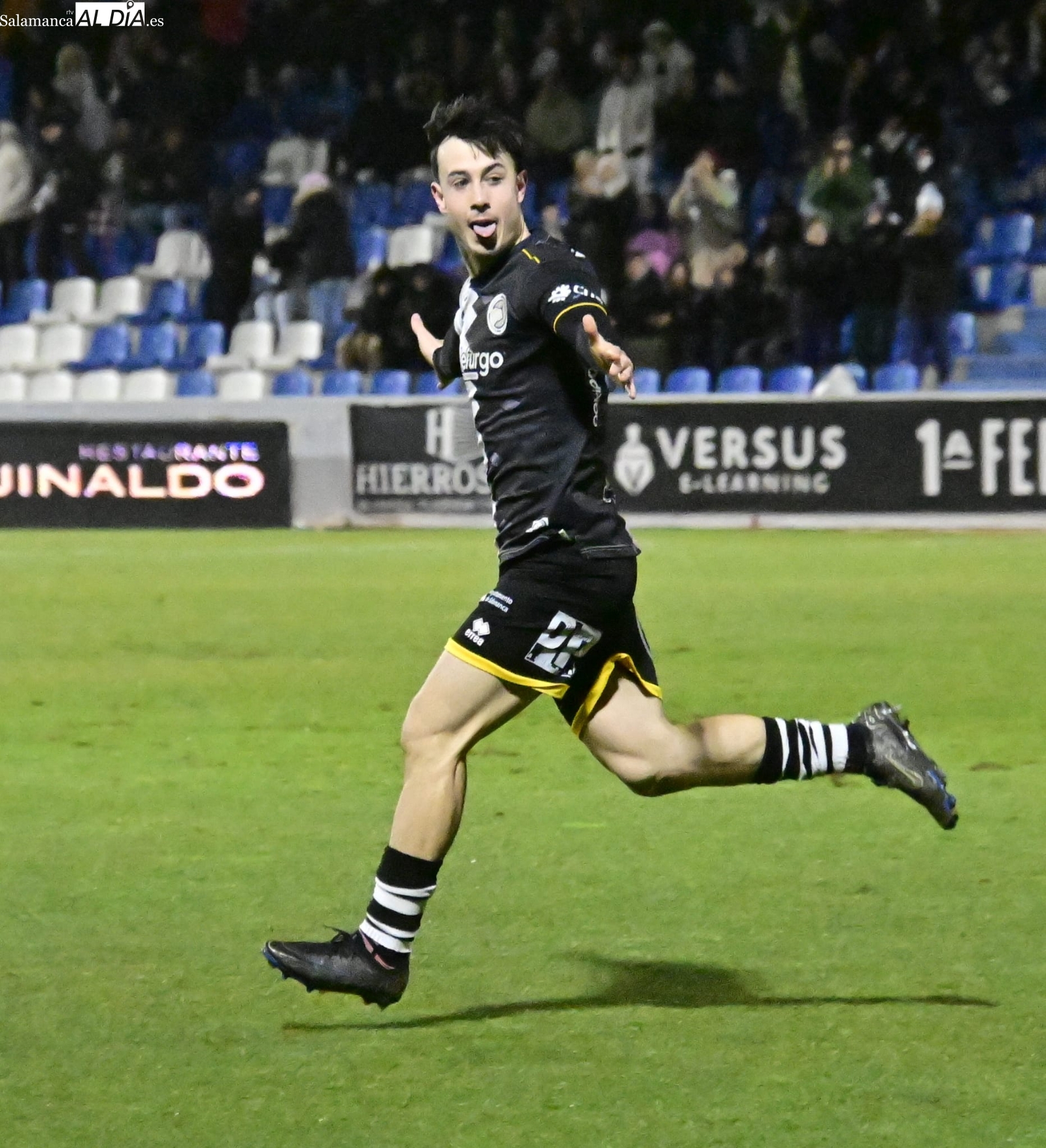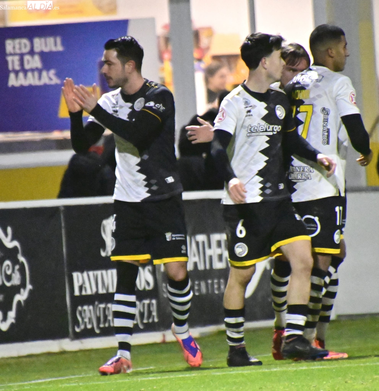 Asimismo, el choque ha comenzado con susto para los charros, dado que Farru ha sacado una ocasión bajo palos que se paseaba por el área pequeña tras un centro de Ferni y la dejada de Di Renzo. Sin embargo, después de la media hora se ha desatacado el huracán blanquinegro con tres goles en menos de 10 minutos.