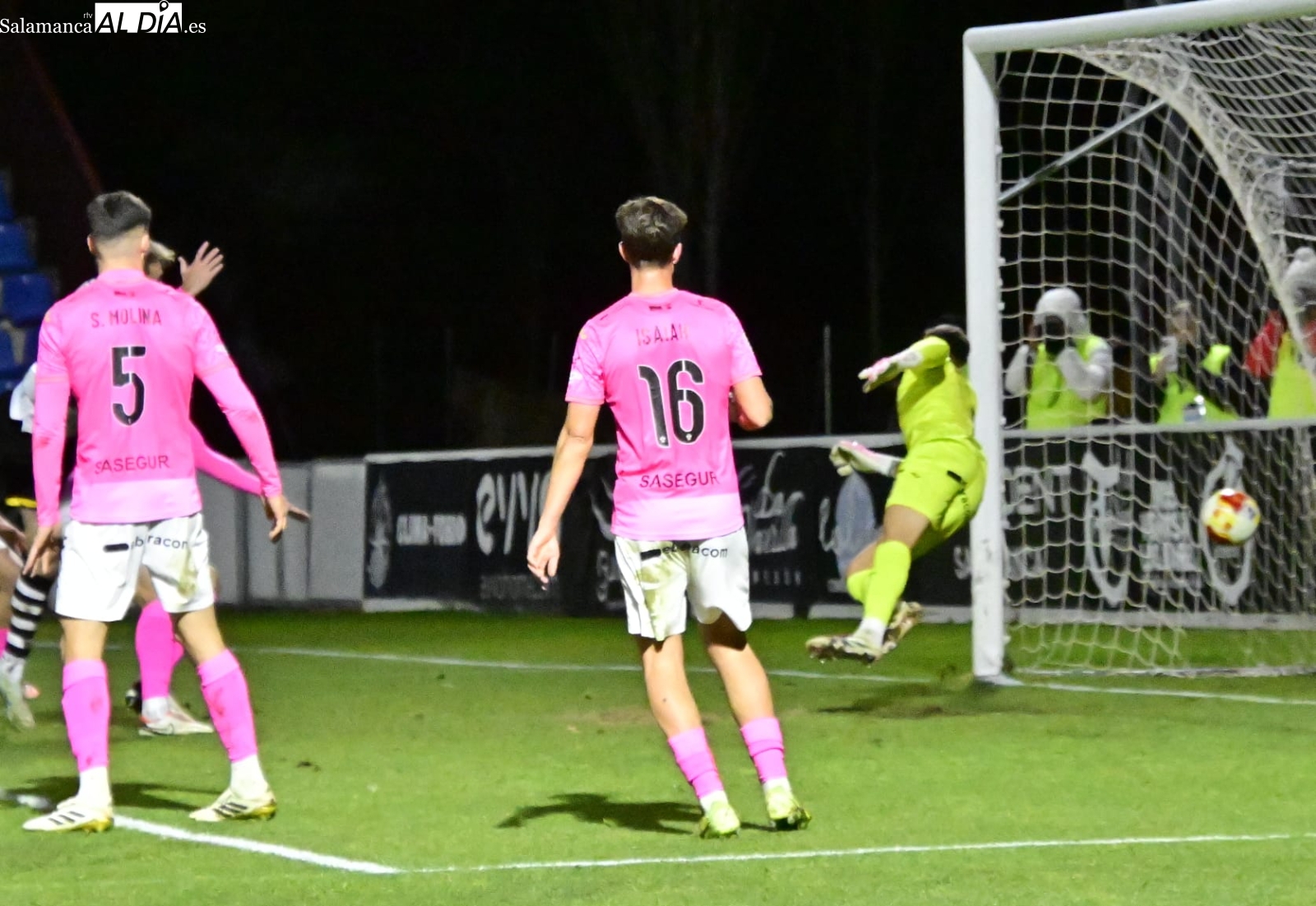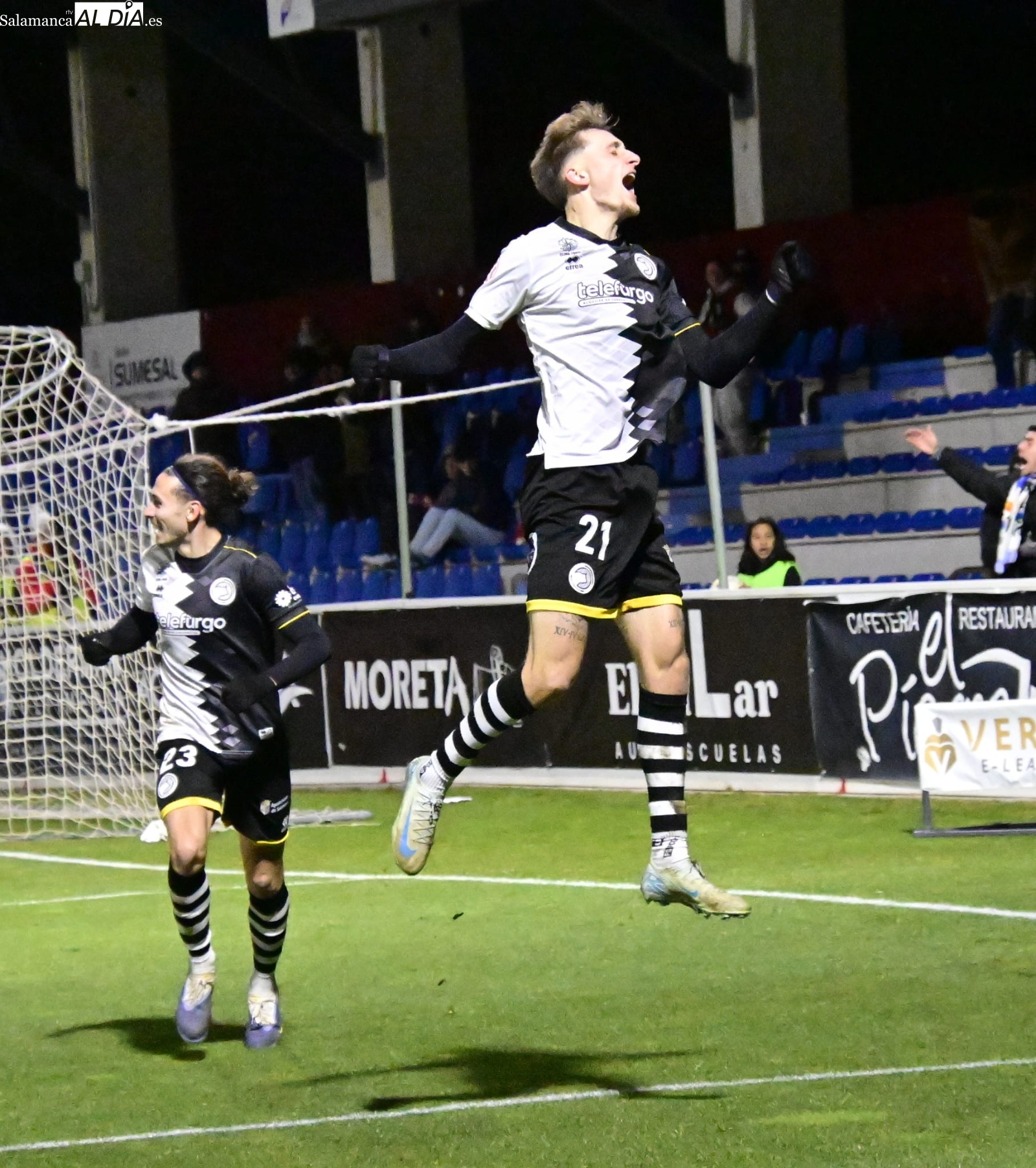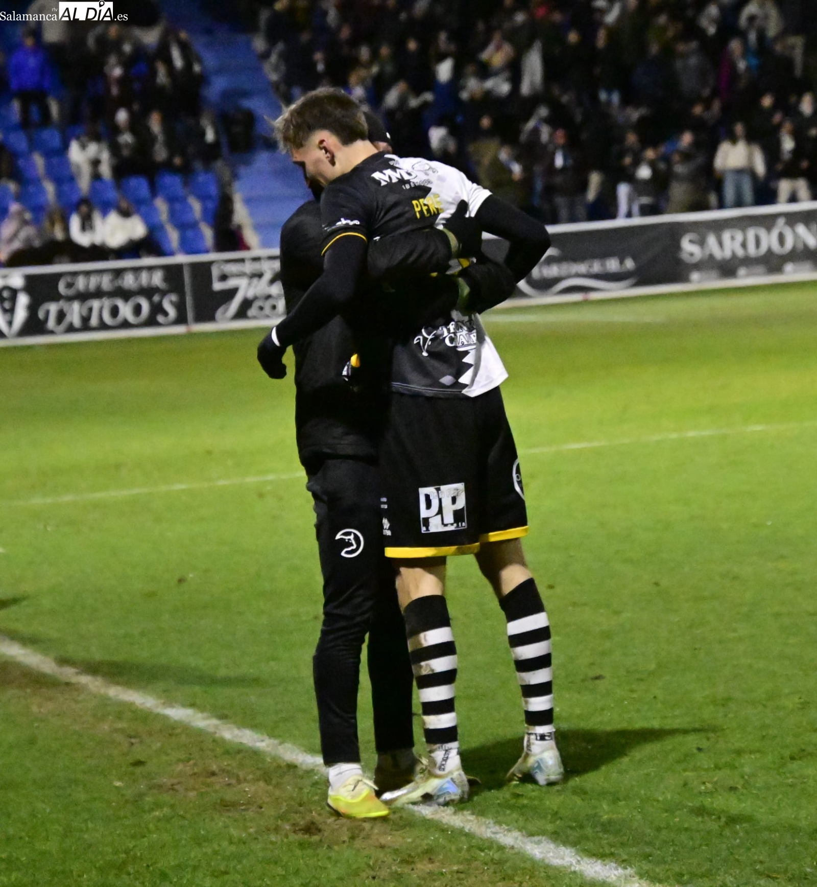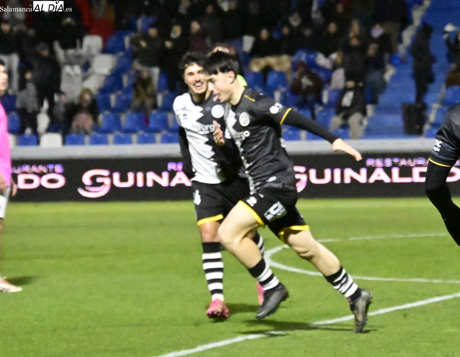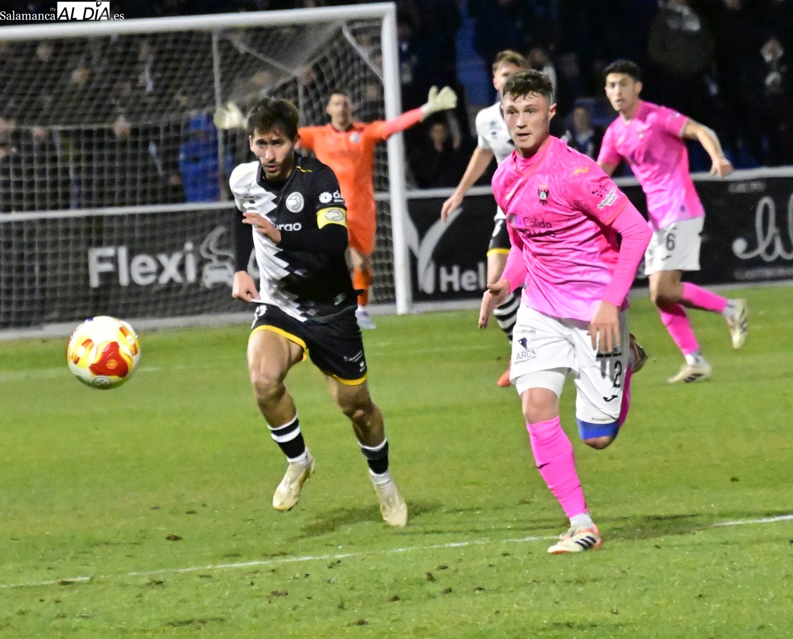 Asimismo, el choque ha comenzado con susto para los charros, dado que Farru ha sacado una ocasión bajo palos que se paseaba por el área pequeña tras un centro de Ferni y la dejada de Di Renzo. Sin embargo, después de la media hora se ha desatacado el huracán blanquinegro con tres goles en menos de 10 minutos.