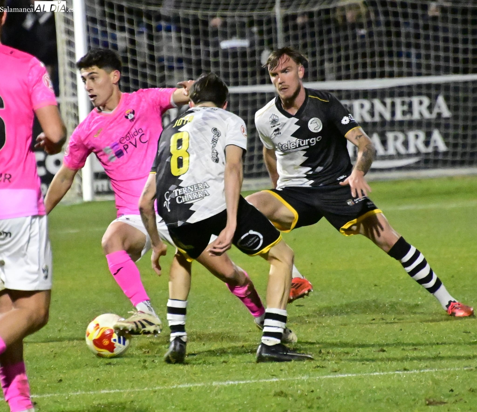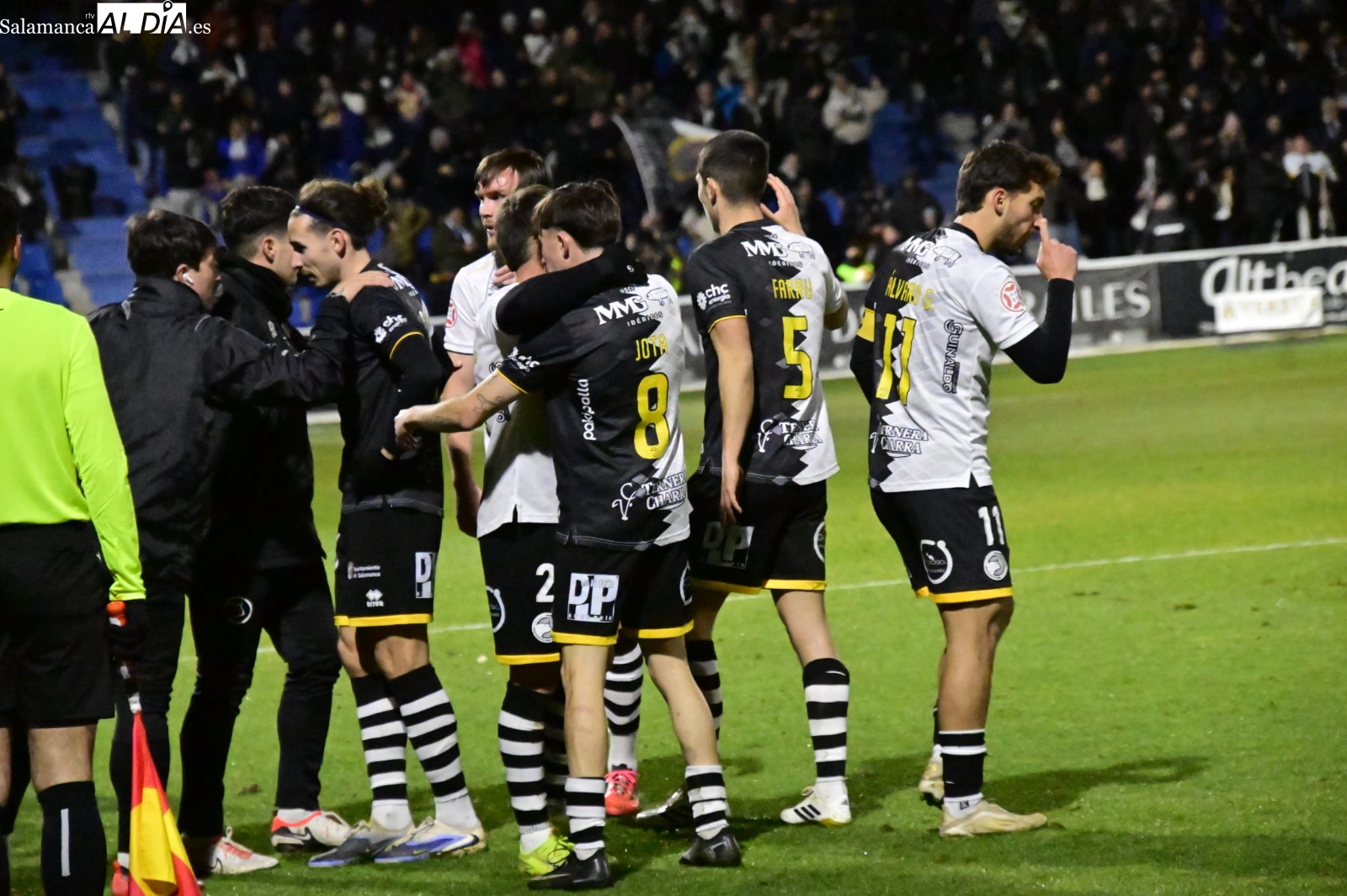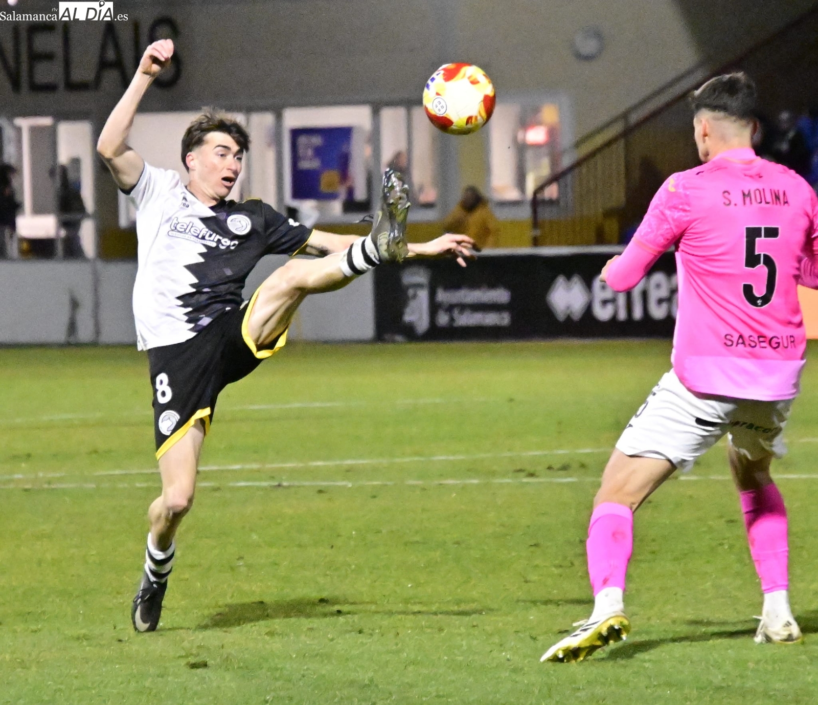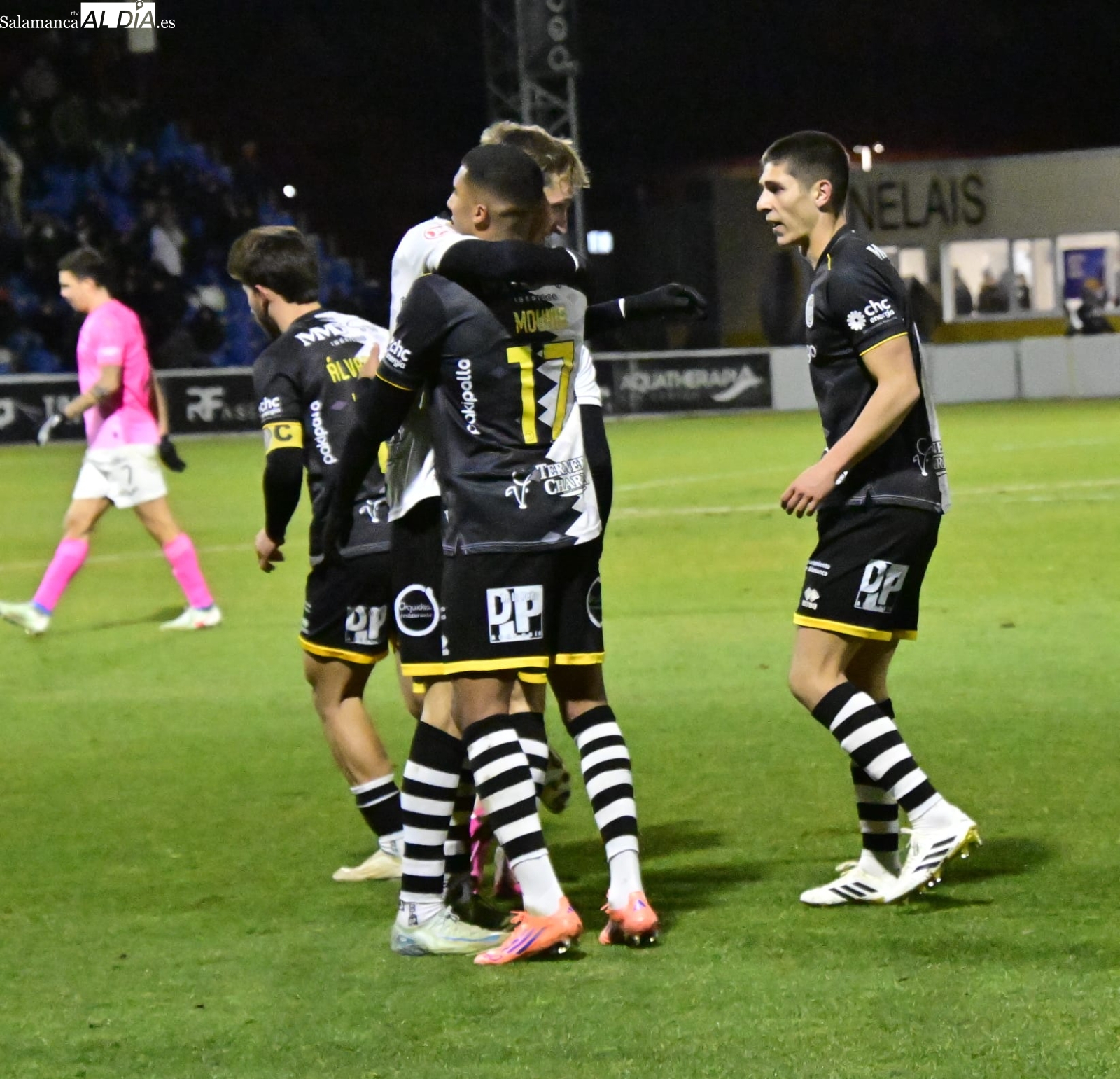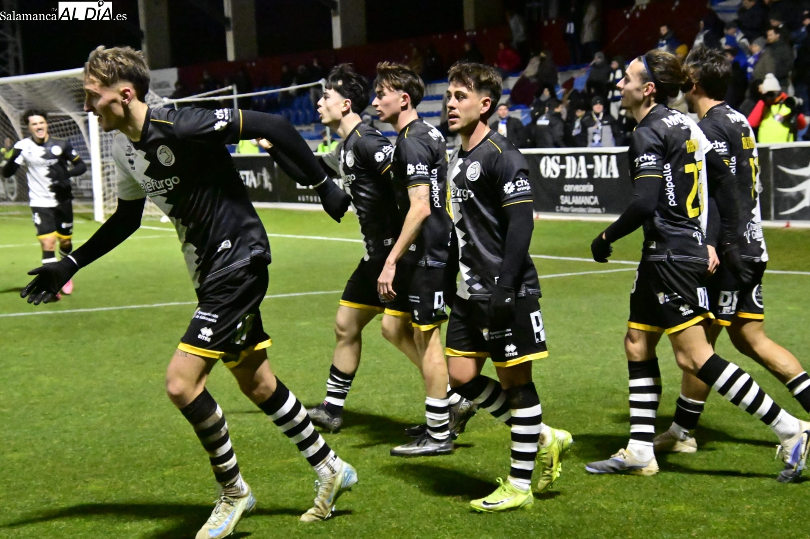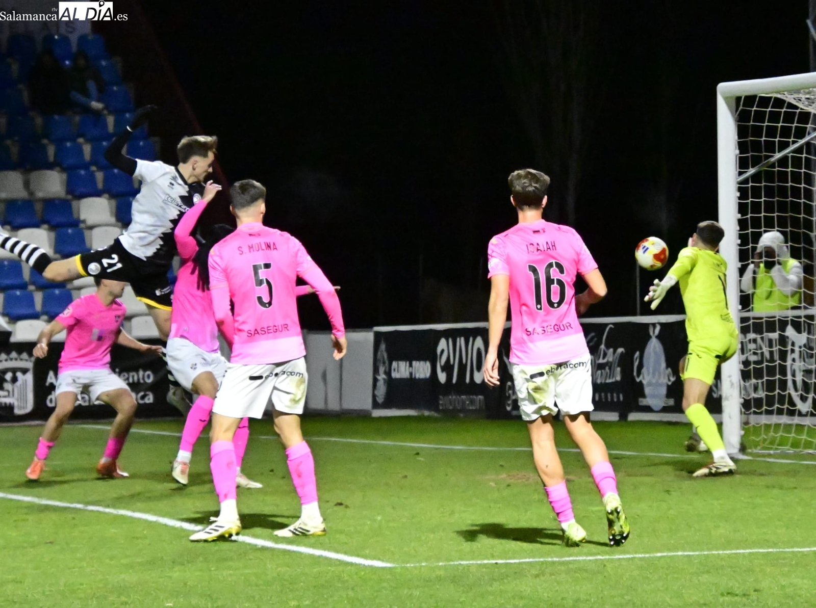 Asimismo, el choque ha comenzado con susto para los charros, dado que Farru ha sacado una ocasión bajo palos que se paseaba por el área pequeña tras un centro de Ferni y la dejada de Di Renzo. Sin embargo, después de la media hora se ha desatacado el huracán blanquinegro con tres goles en menos de 10 minutos.