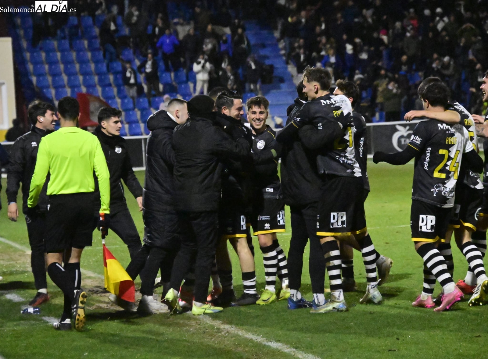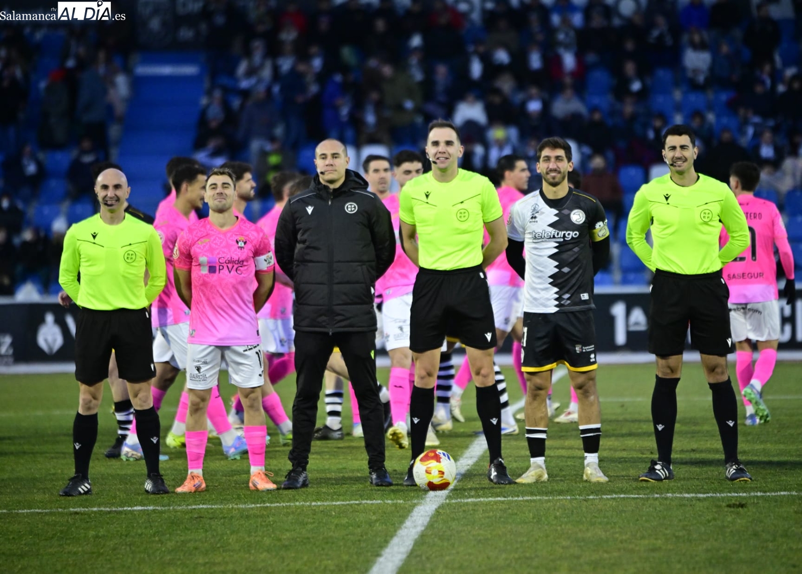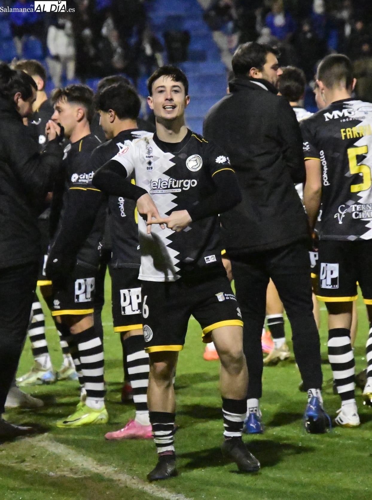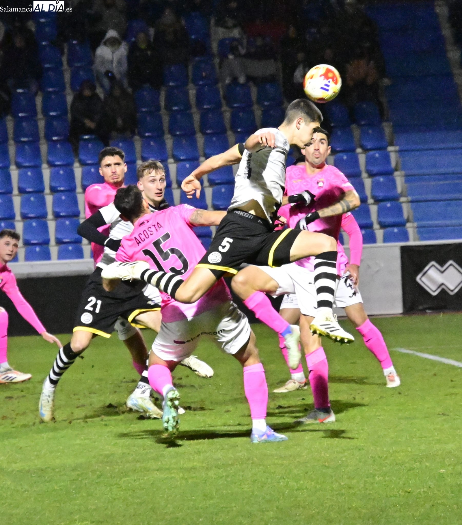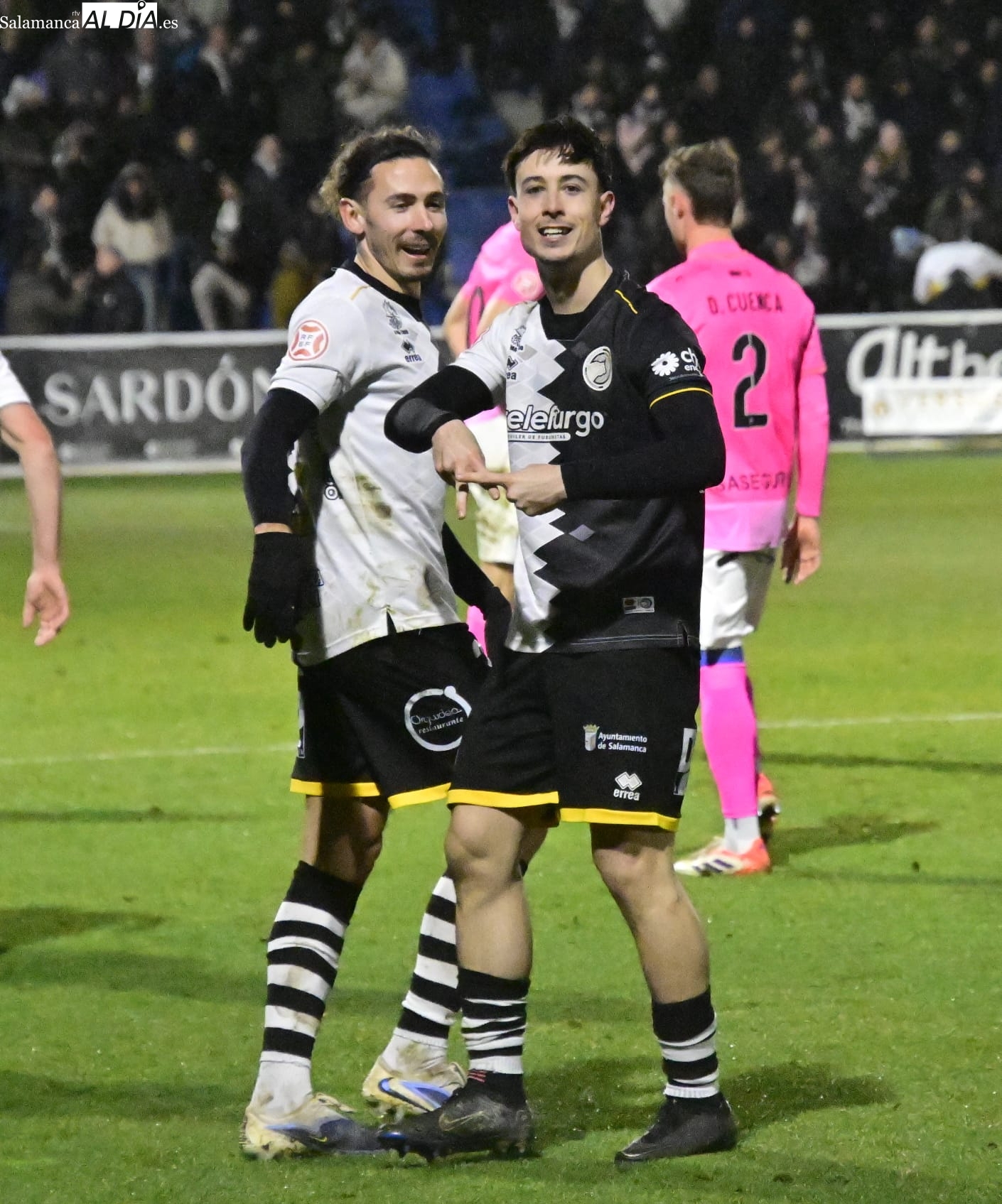 Asimismo, el choque ha comenzado con susto para los charros, dado que Farru ha sacado una ocasión bajo palos que se paseaba por el área pequeña tras un centro de Ferni y la dejada de Di Renzo. Sin embargo, después de la media hora se ha desatacado el huracán blanquinegro con tres goles en menos de 10 minutos.