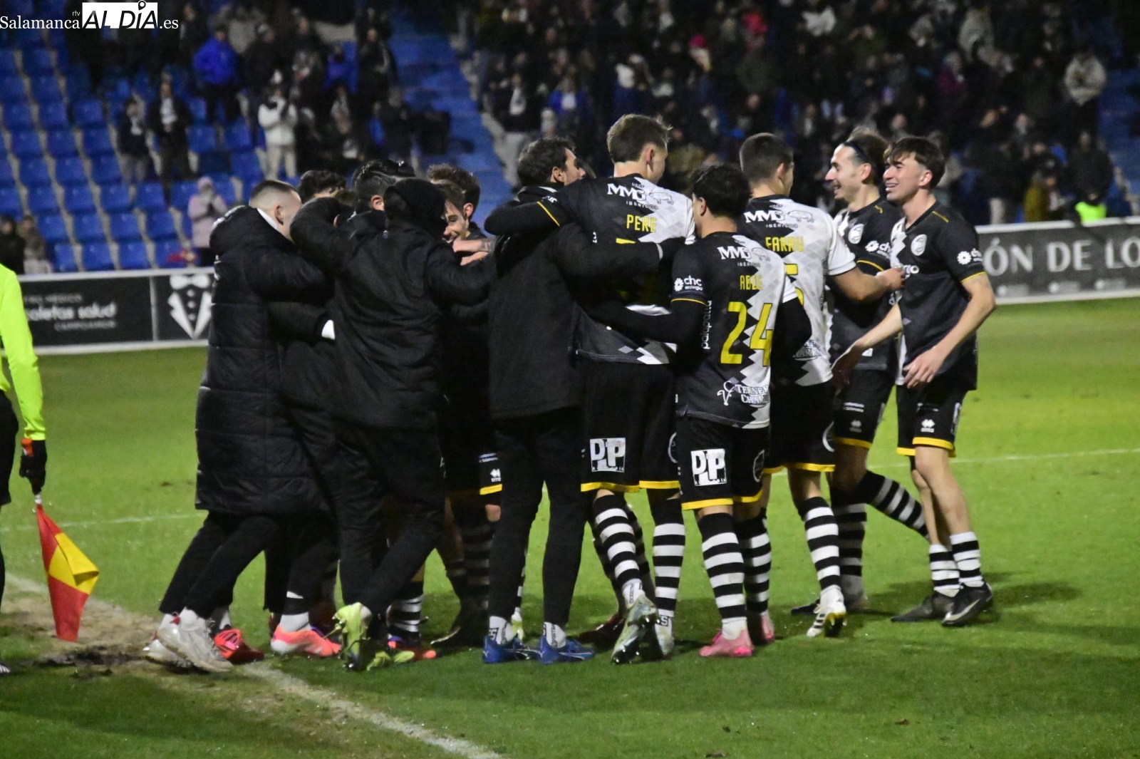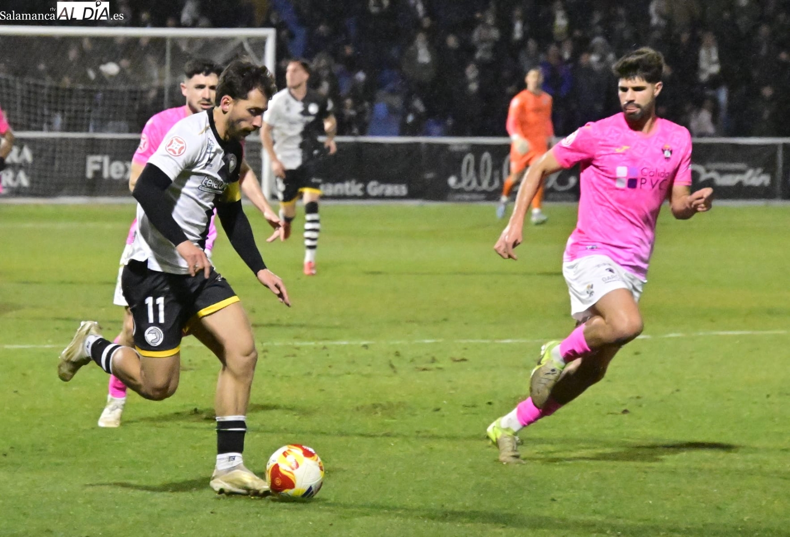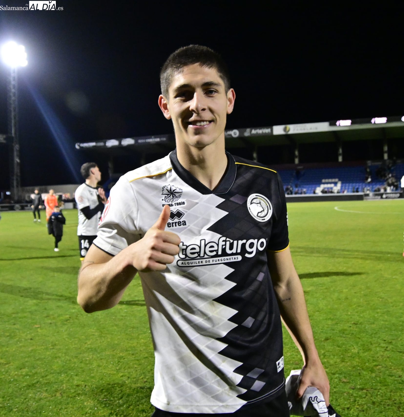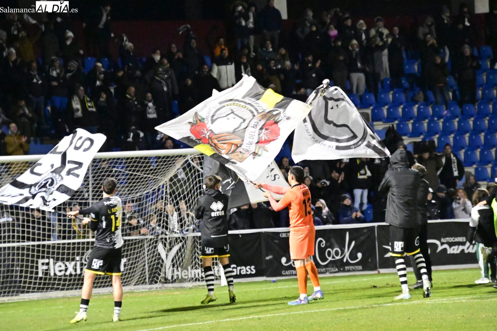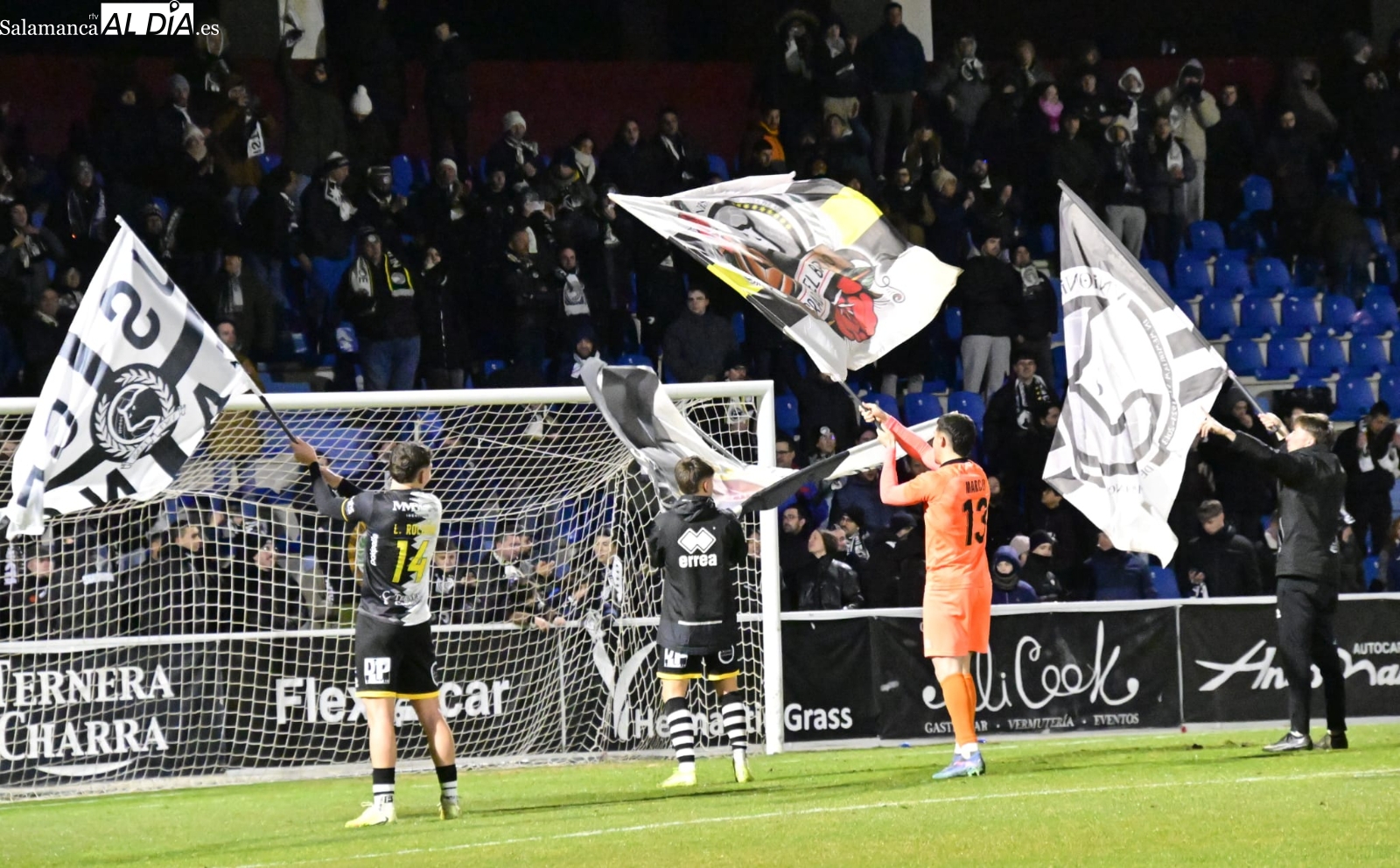 Asimismo, el choque ha comenzado con susto para los charros, dado que Farru ha sacado una ocasión bajo palos que se paseaba por el área pequeña tras un centro de Ferni y la dejada de Di Renzo. Sin embargo, después de la media hora se ha desatacado el huracán blanquinegro con tres goles en menos de 10 minutos.
